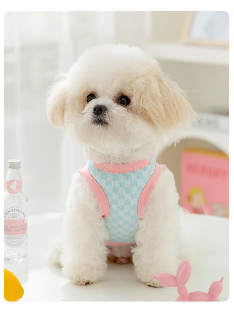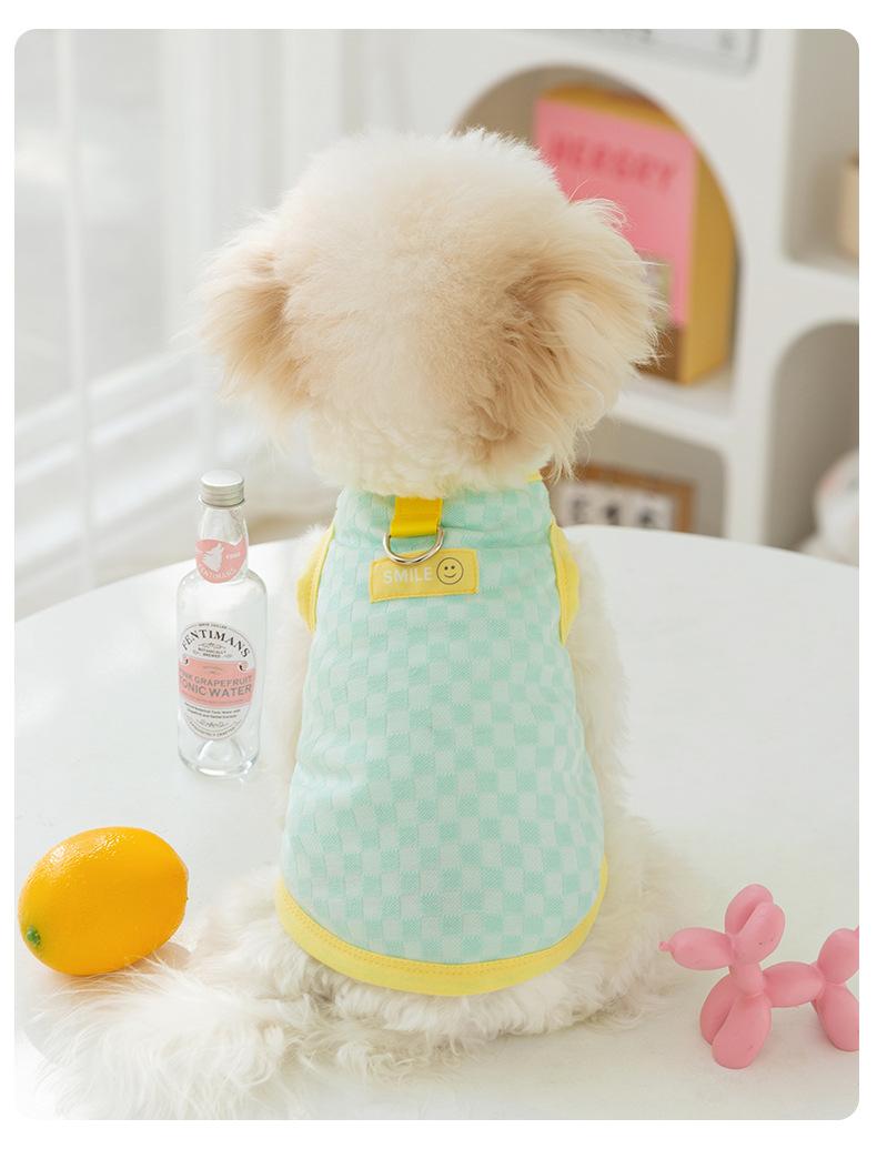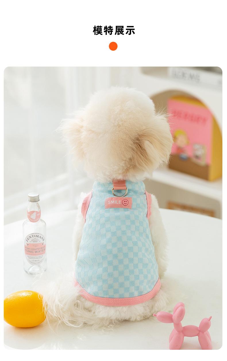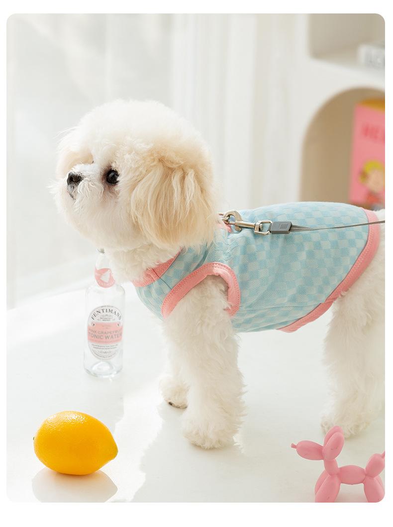 Chaleco de cuerda de tracción para perros, primavera y verano, fino, de dos patas, para gatos, tablero de ajedrez, perro pequeño, oso de peluche, ropa para mascotas
