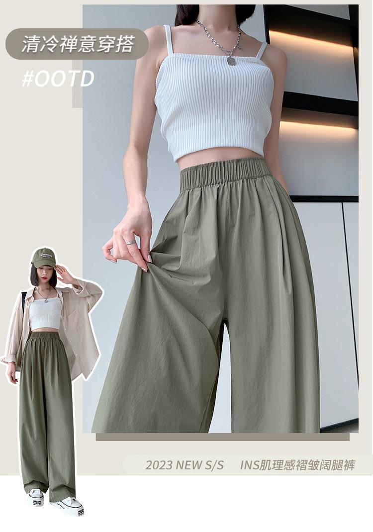 Pantalones de Pierna Ancha para Mujer 2025 Verano Delgados Nuevo Estilo Plisados Estilo Relajado Pantalones Casuales Pantalones Delgados hasta el Piso Pantalones Yamamoto para Mujer