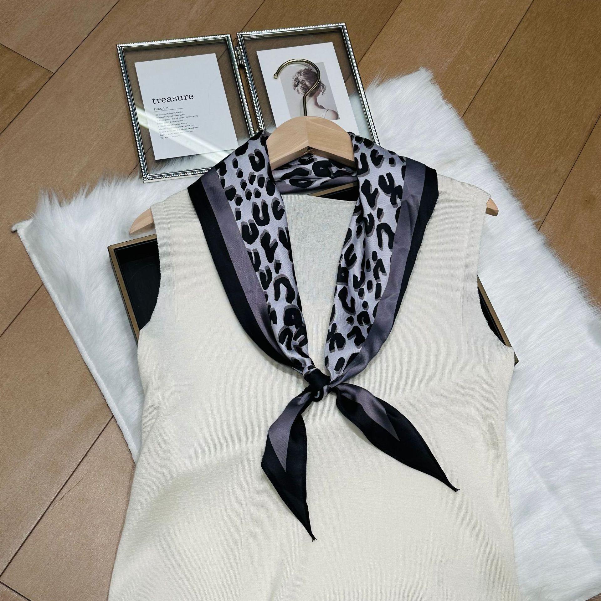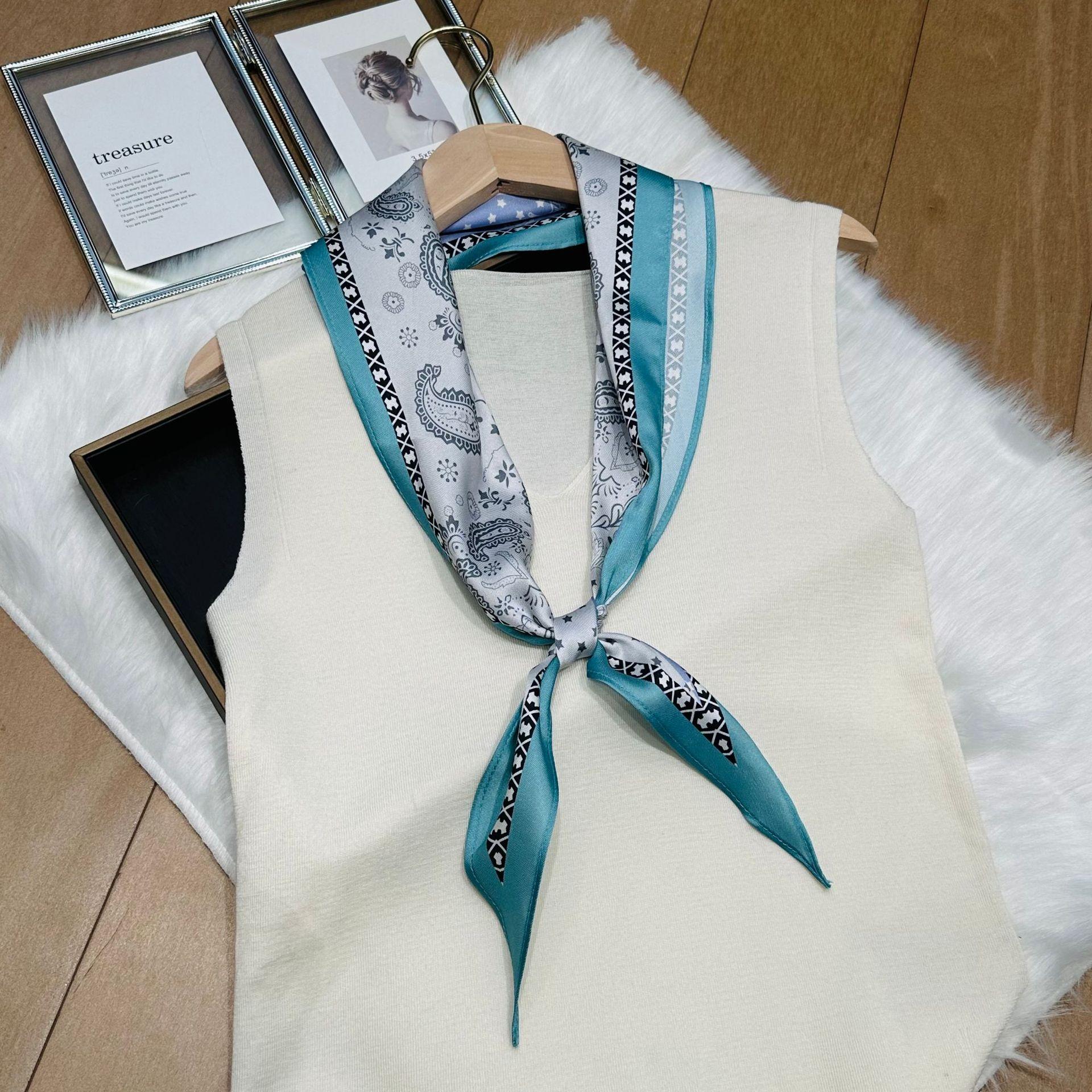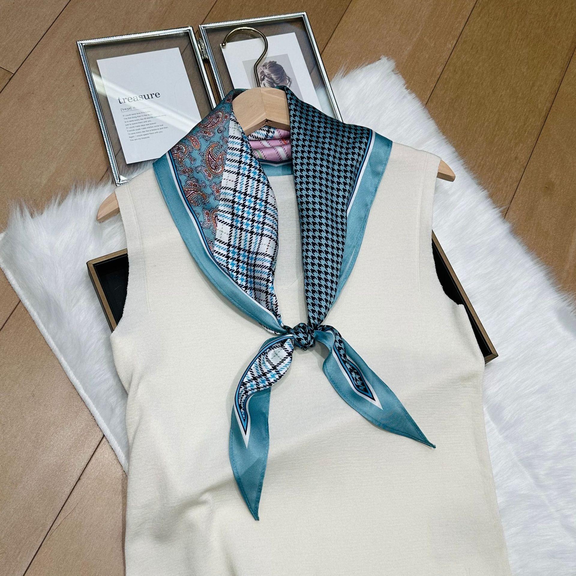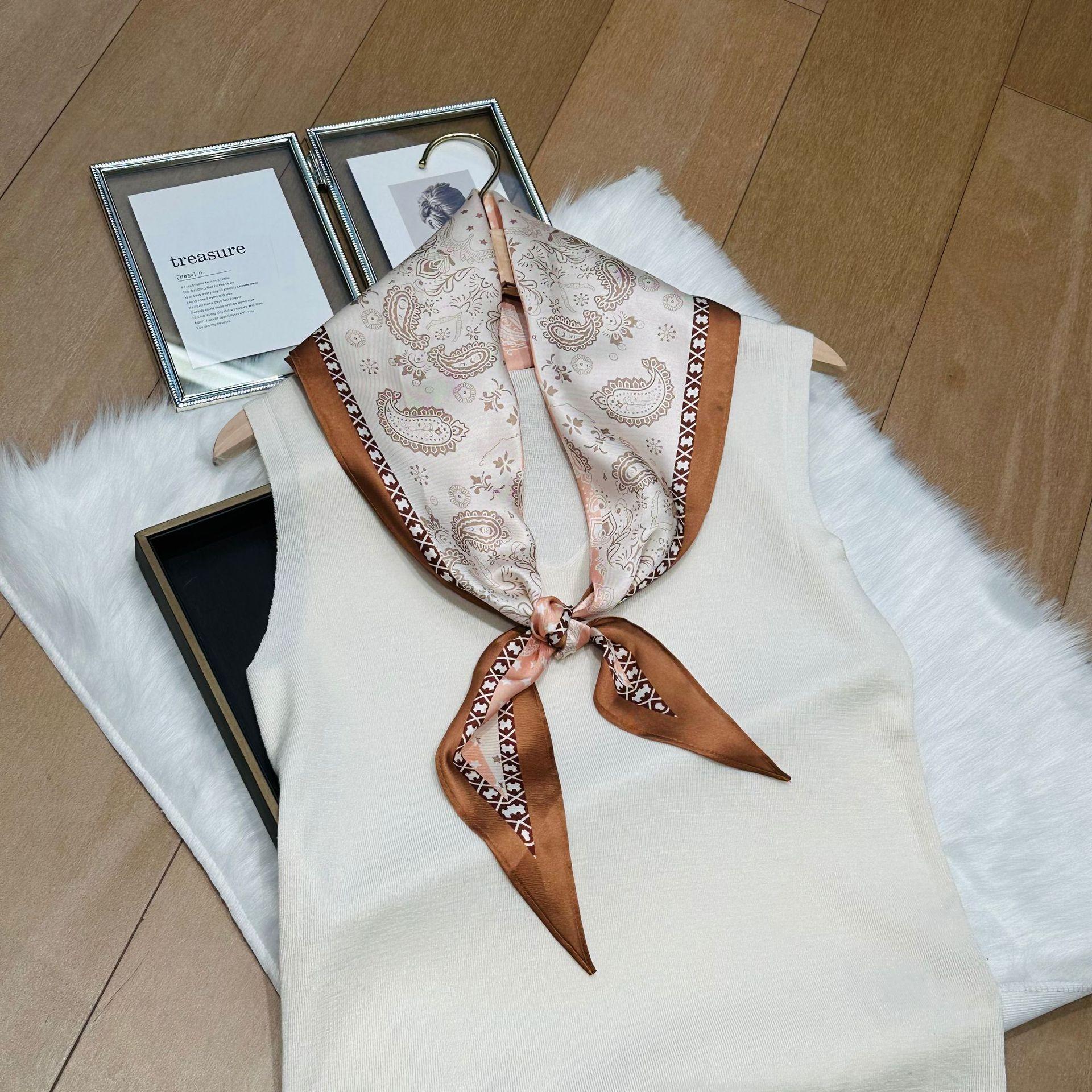 Bufanda de Seda Simulada de Primavera para Mujer Estampada Nueva Bufanda Pequeña Moda de Alta Gama Versátil para Viajar Bufanda de Seda al Por Mayor