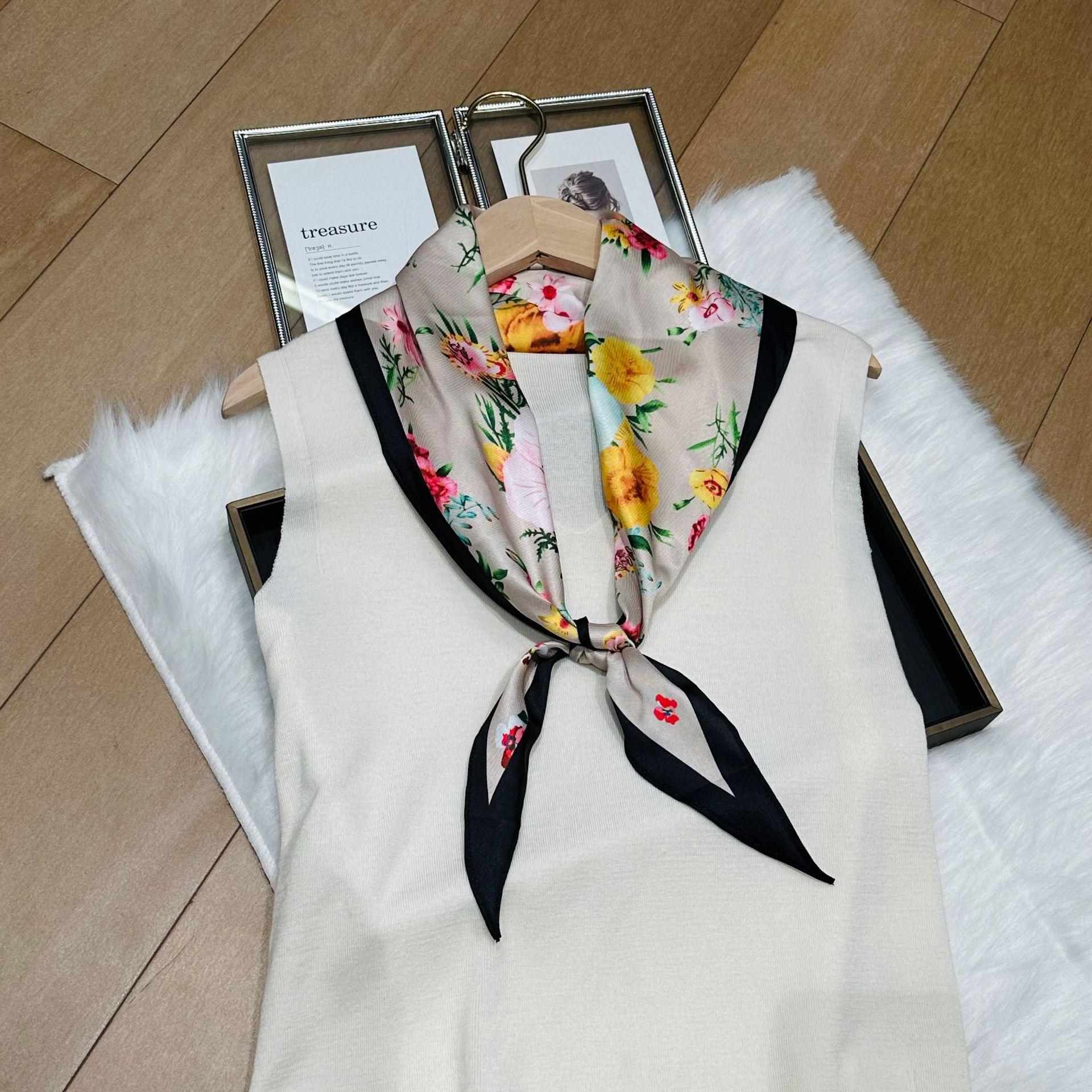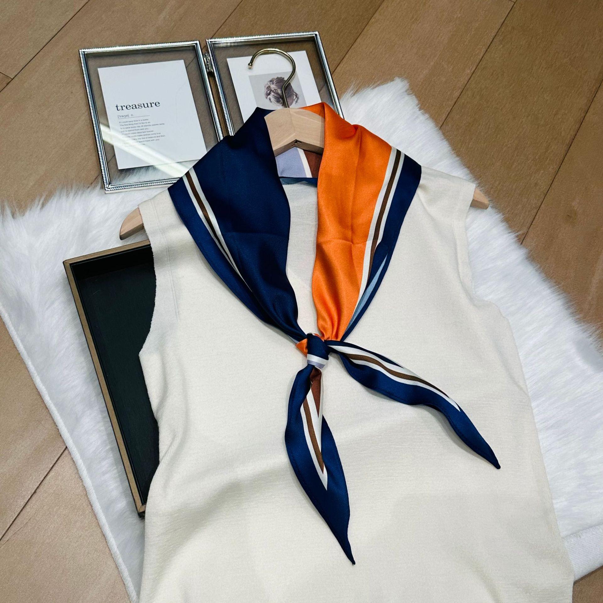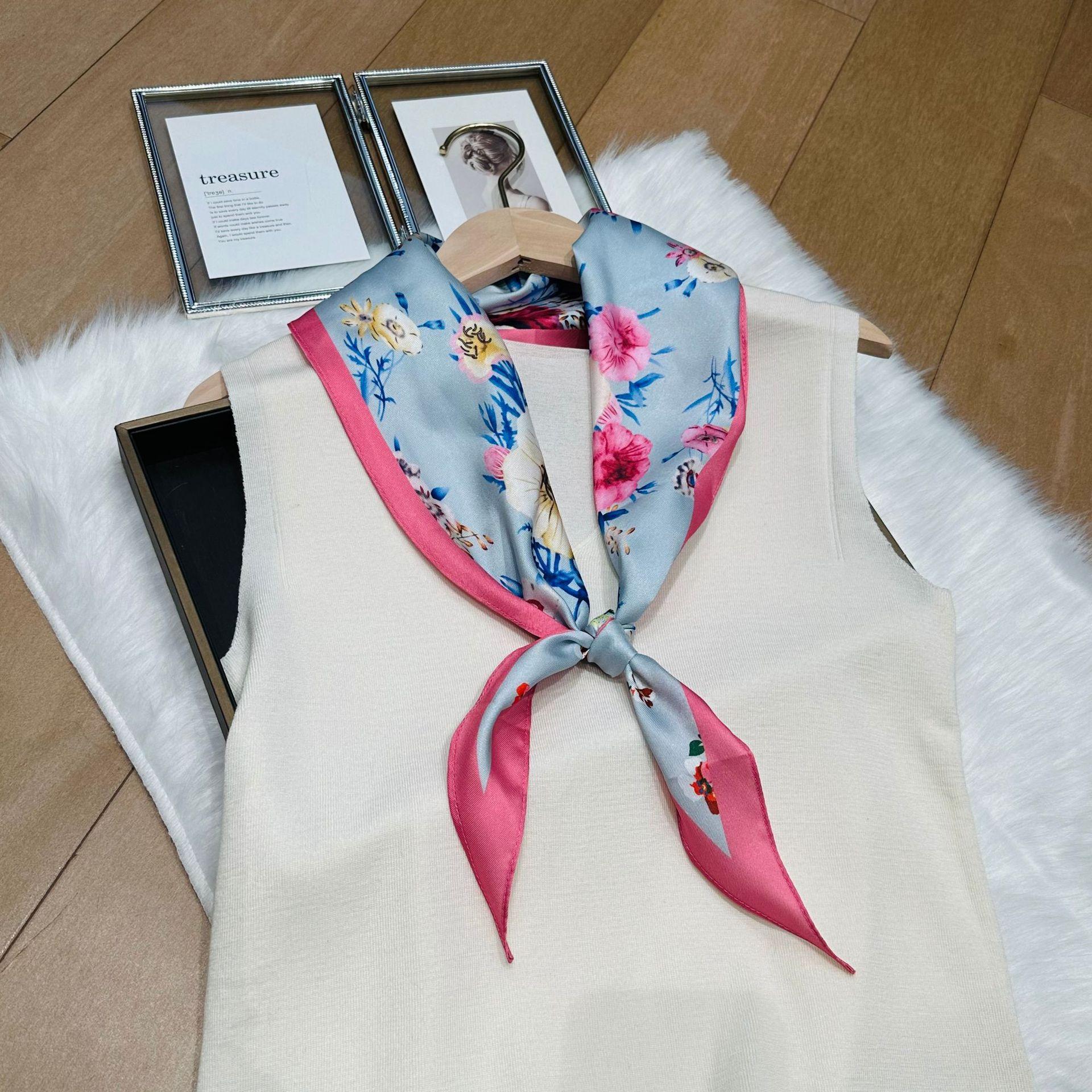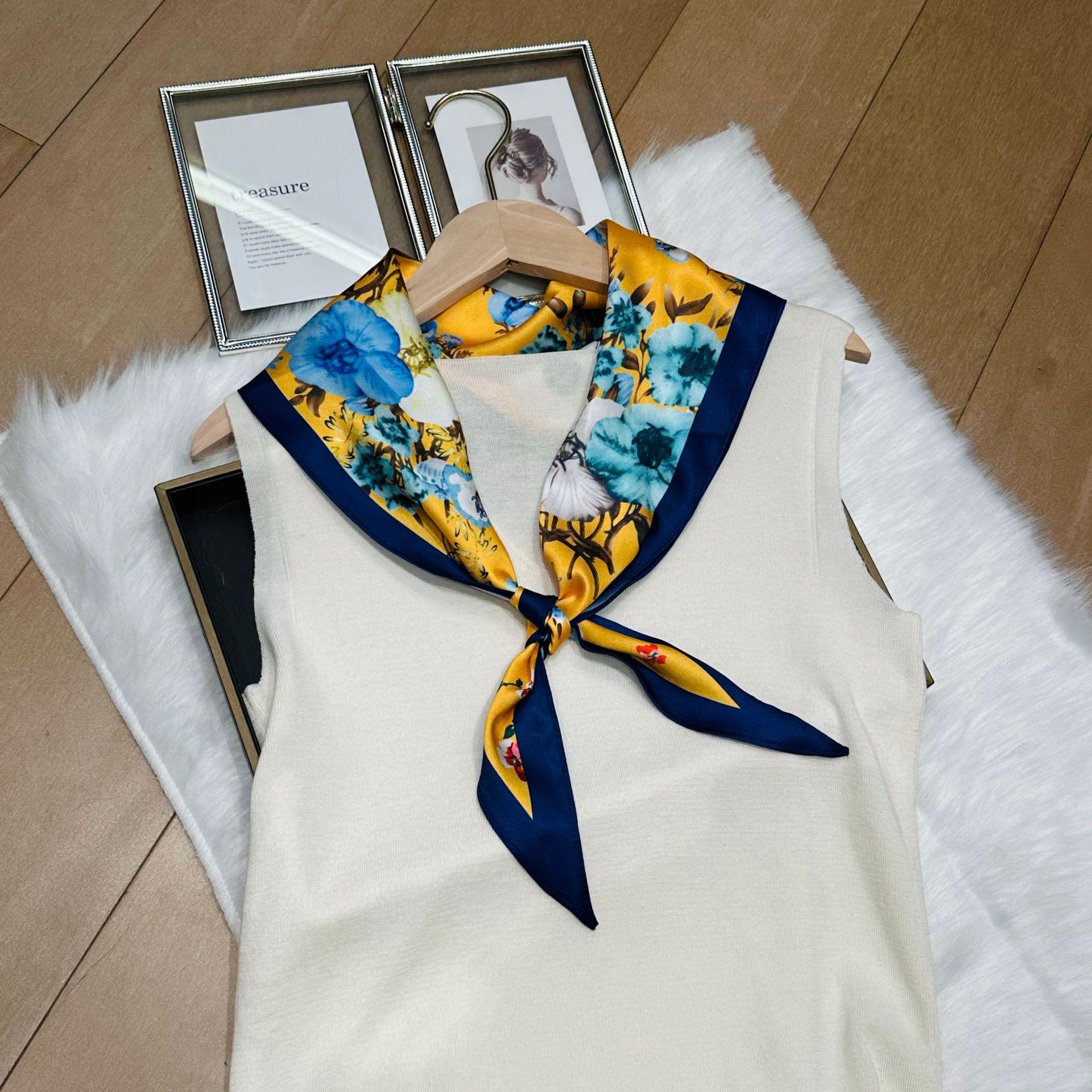 Bufanda de Seda Simulada de Primavera para Mujer Estampada Nueva Bufanda Pequeña Moda de Alta Gama Versátil para Viajar Bufanda de Seda al Por Mayor