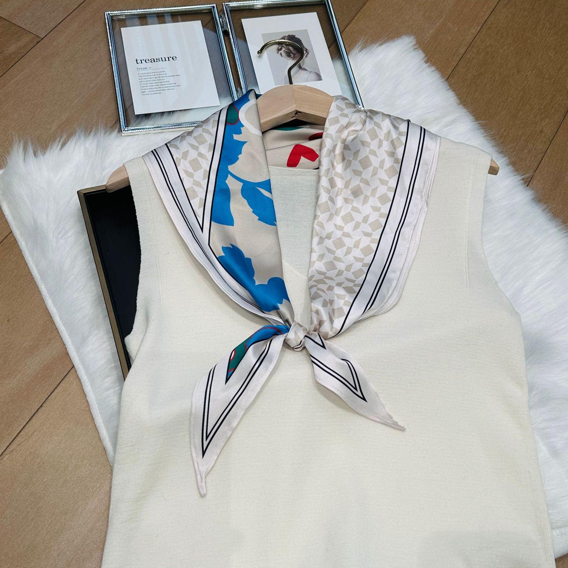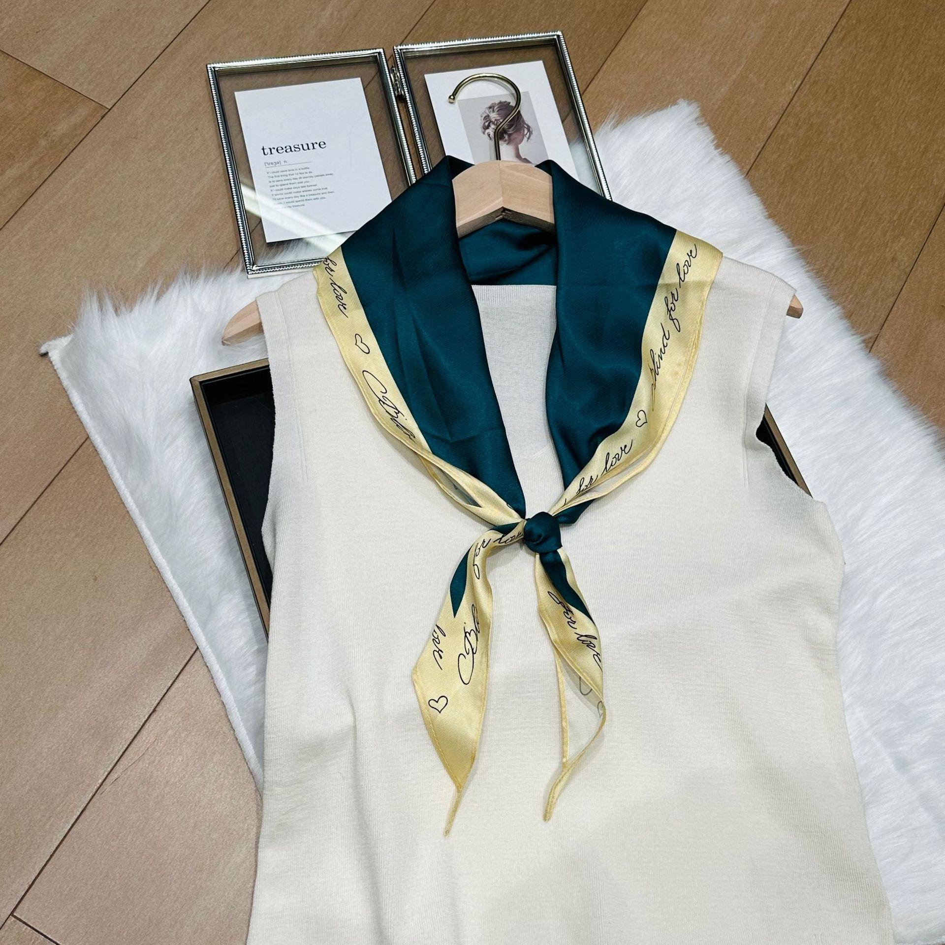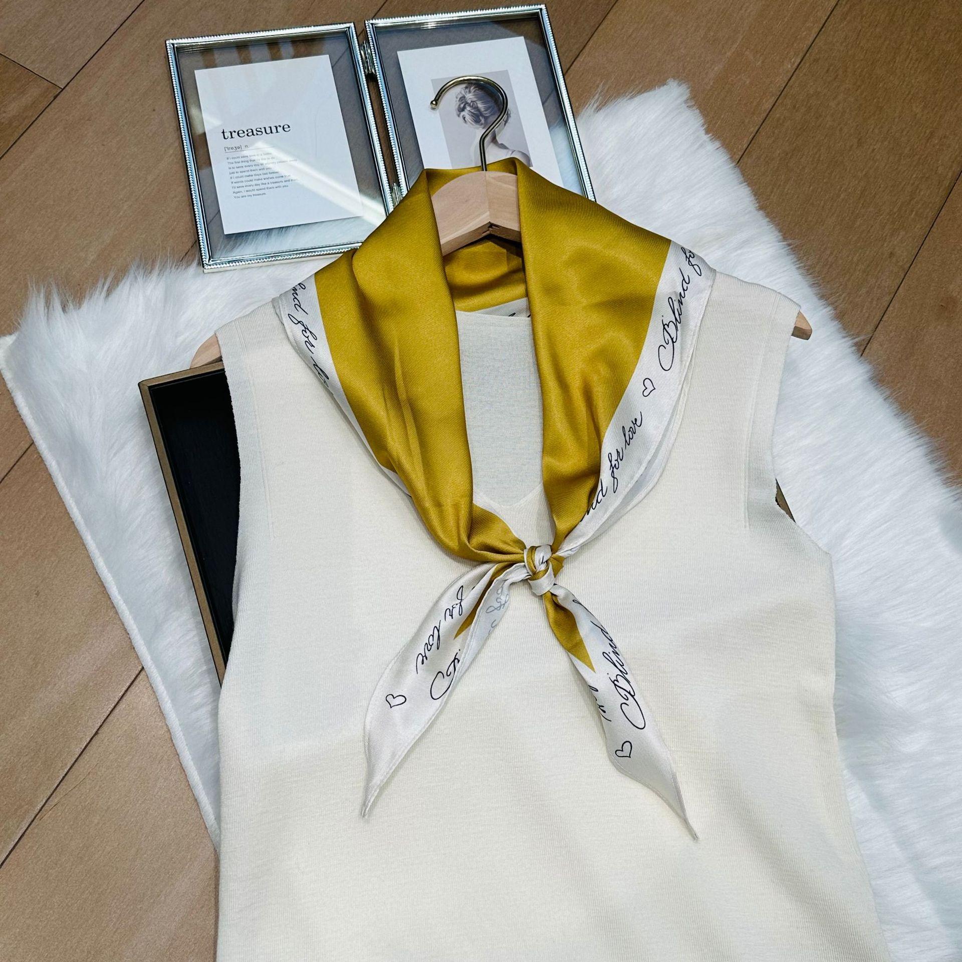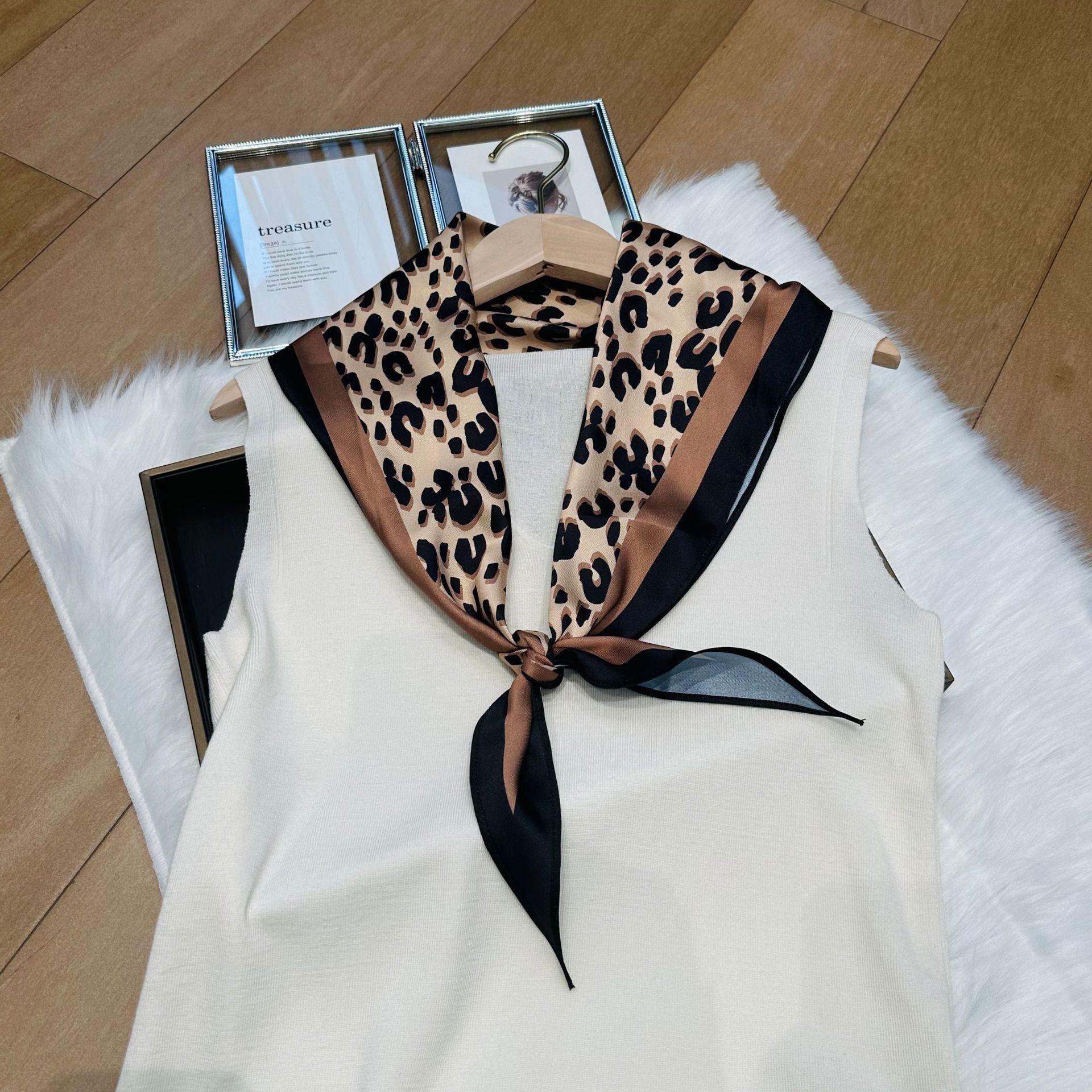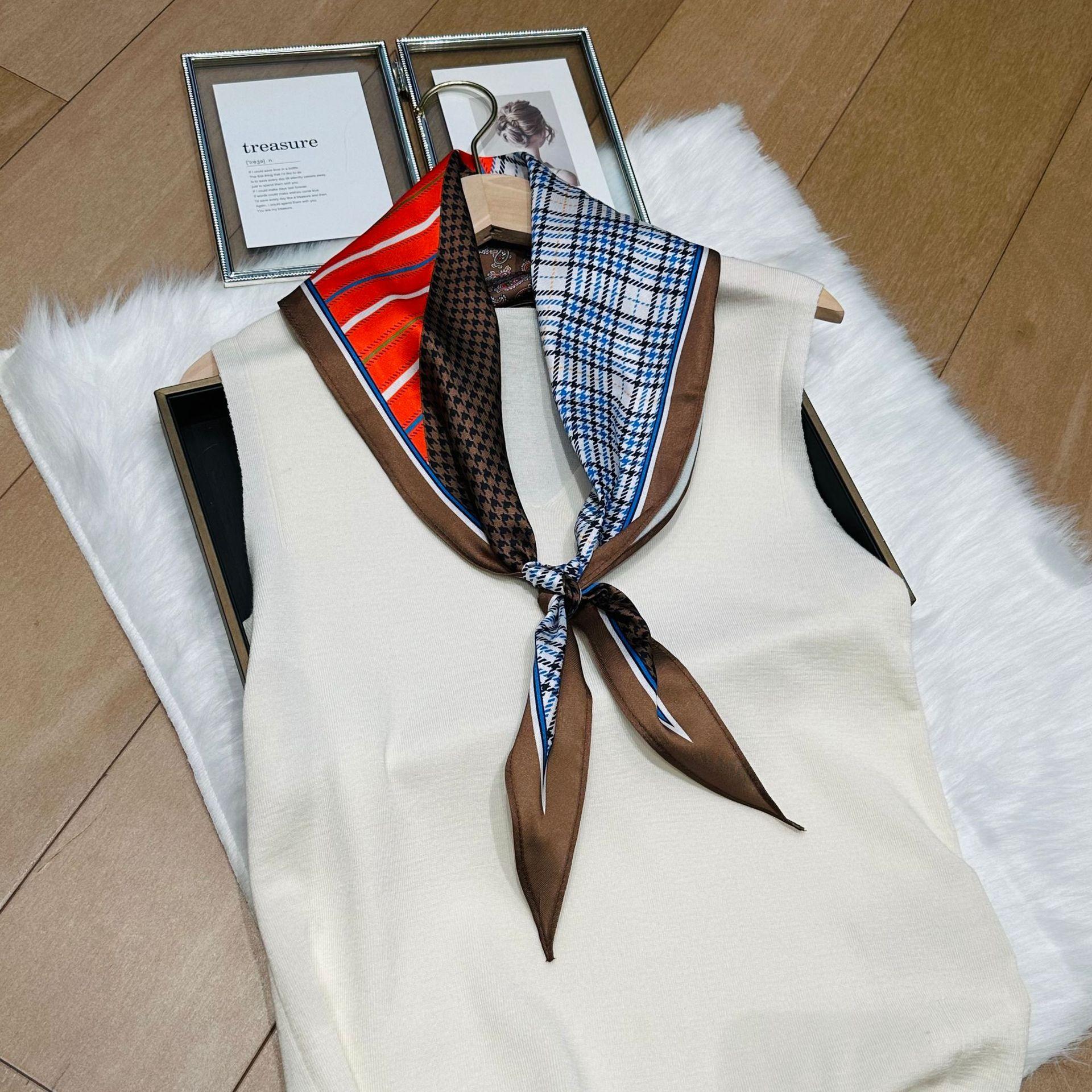 Bufanda de Seda Simulada de Primavera para Mujer Estampada Nueva Bufanda Pequeña Moda de Alta Gama Versátil para Viajar Bufanda de Seda al Por Mayor