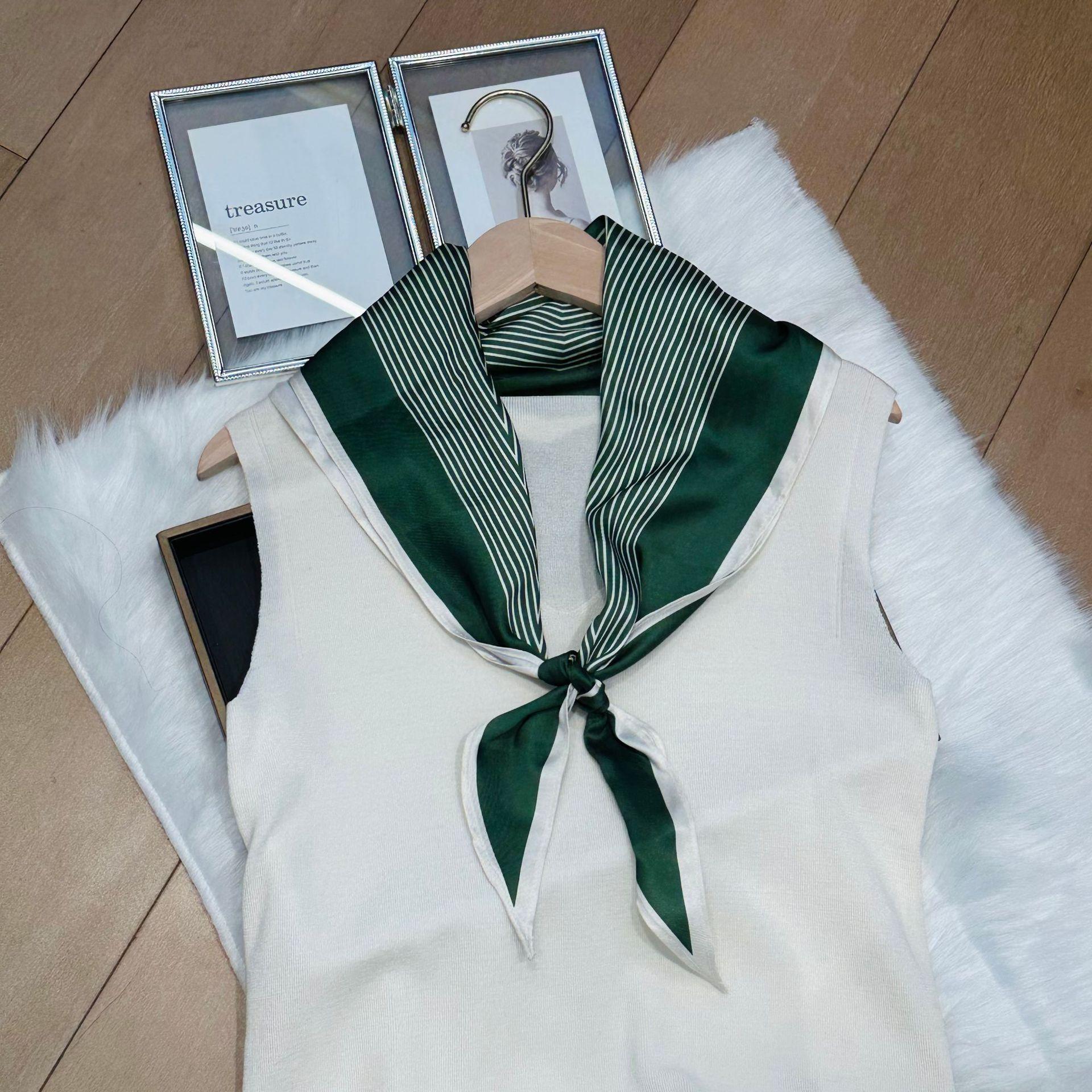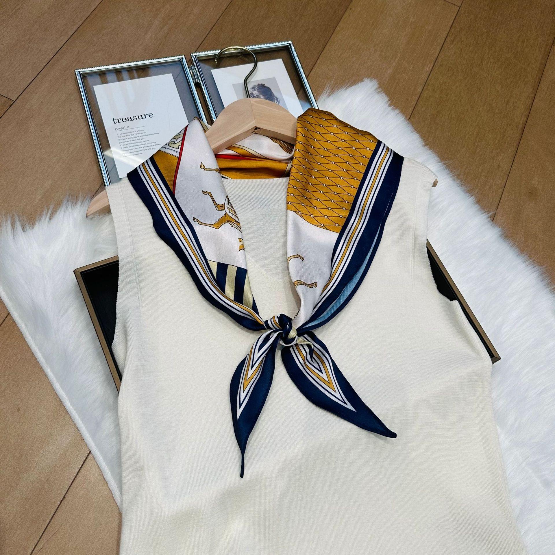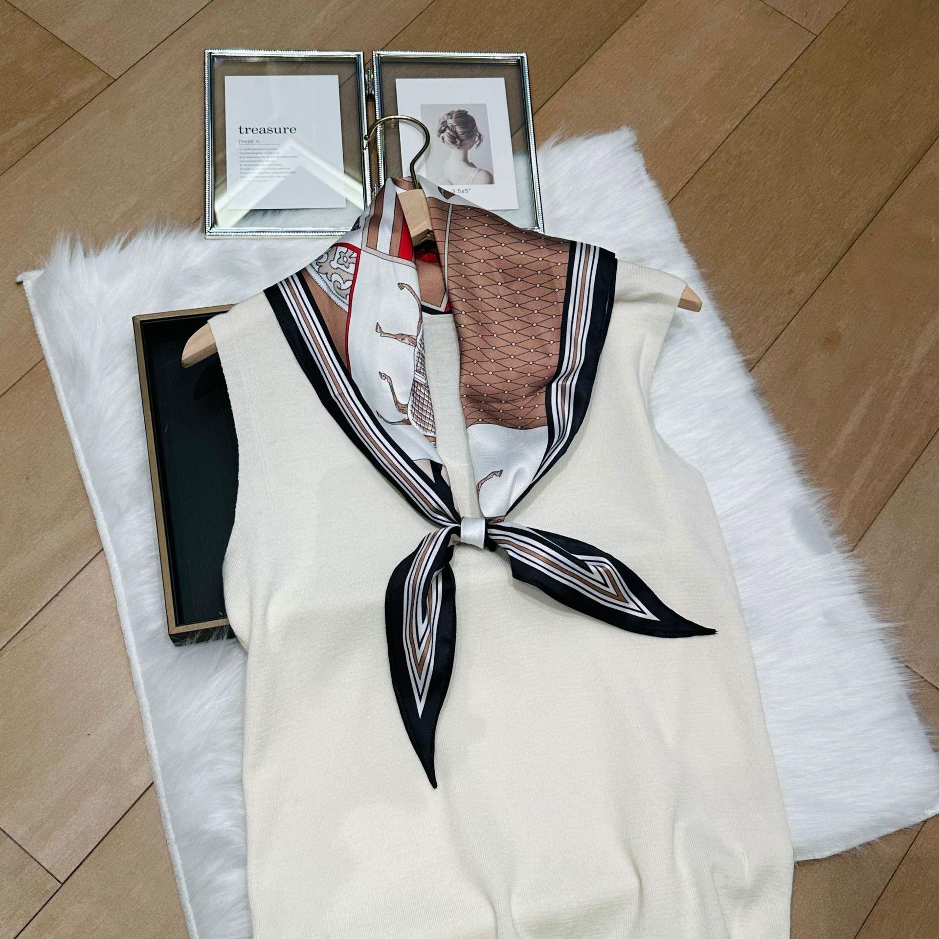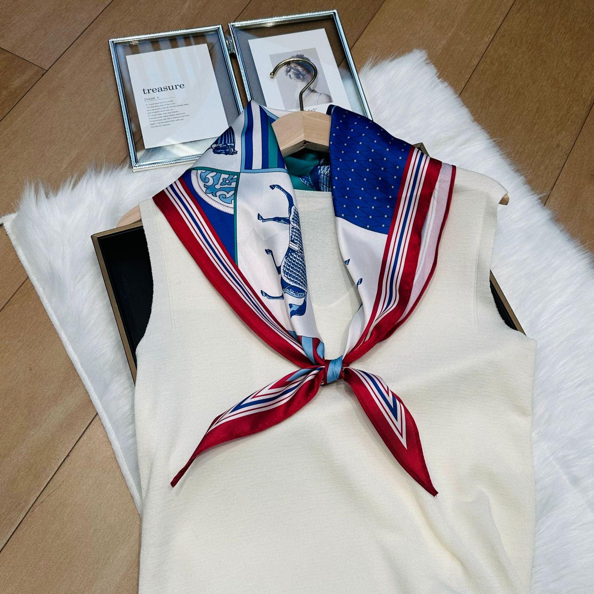 Bufanda de Seda Simulada de Primavera para Mujer Estampada Nueva Bufanda Pequeña Moda de Alta Gama Versátil para Viajar Bufanda de Seda al Por Mayor