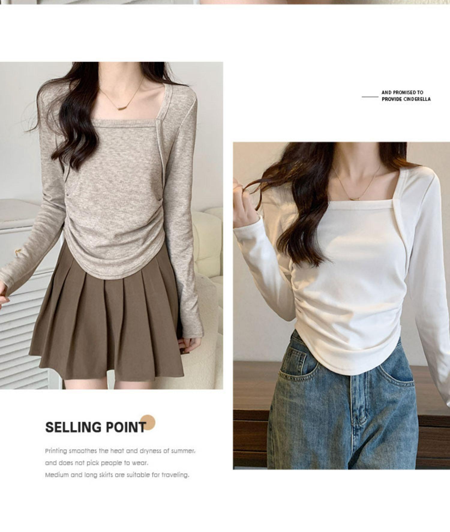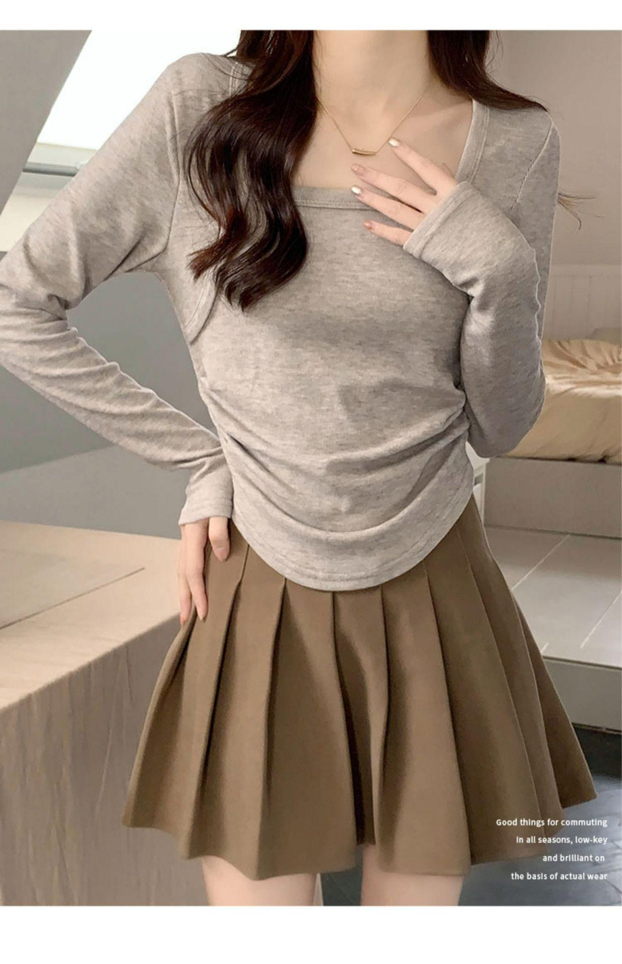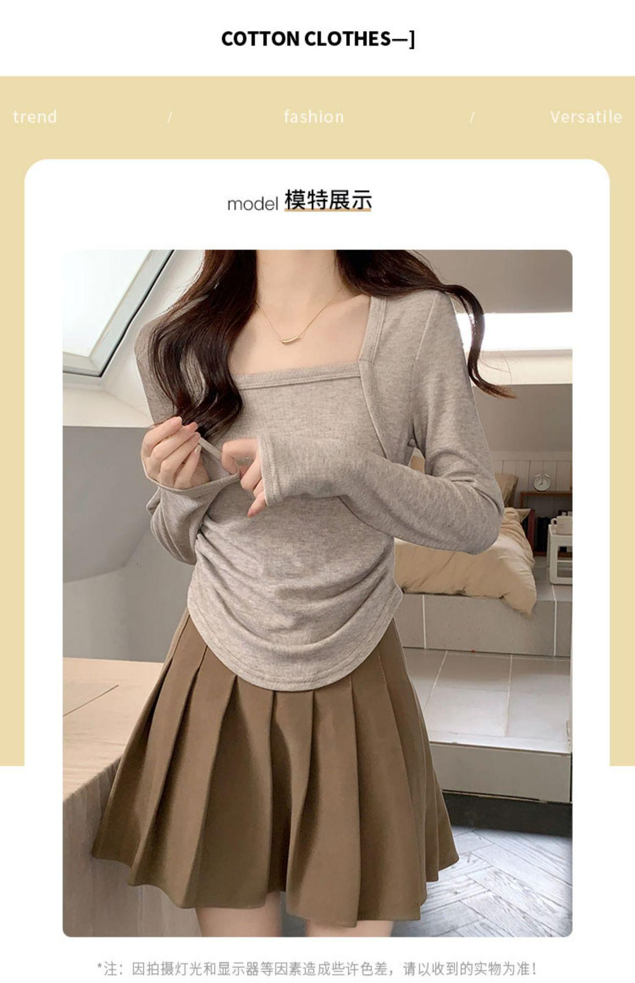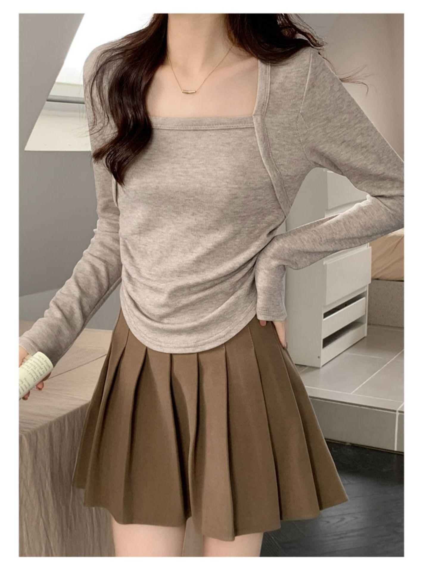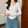 Top ajustado con cuello cuadrado y clavícula estilo Pure Desire para mujer, primavera y otoño, nuevo, falso, de dos piezas, nicho irregular, sexy, Spice Girl, manga larga