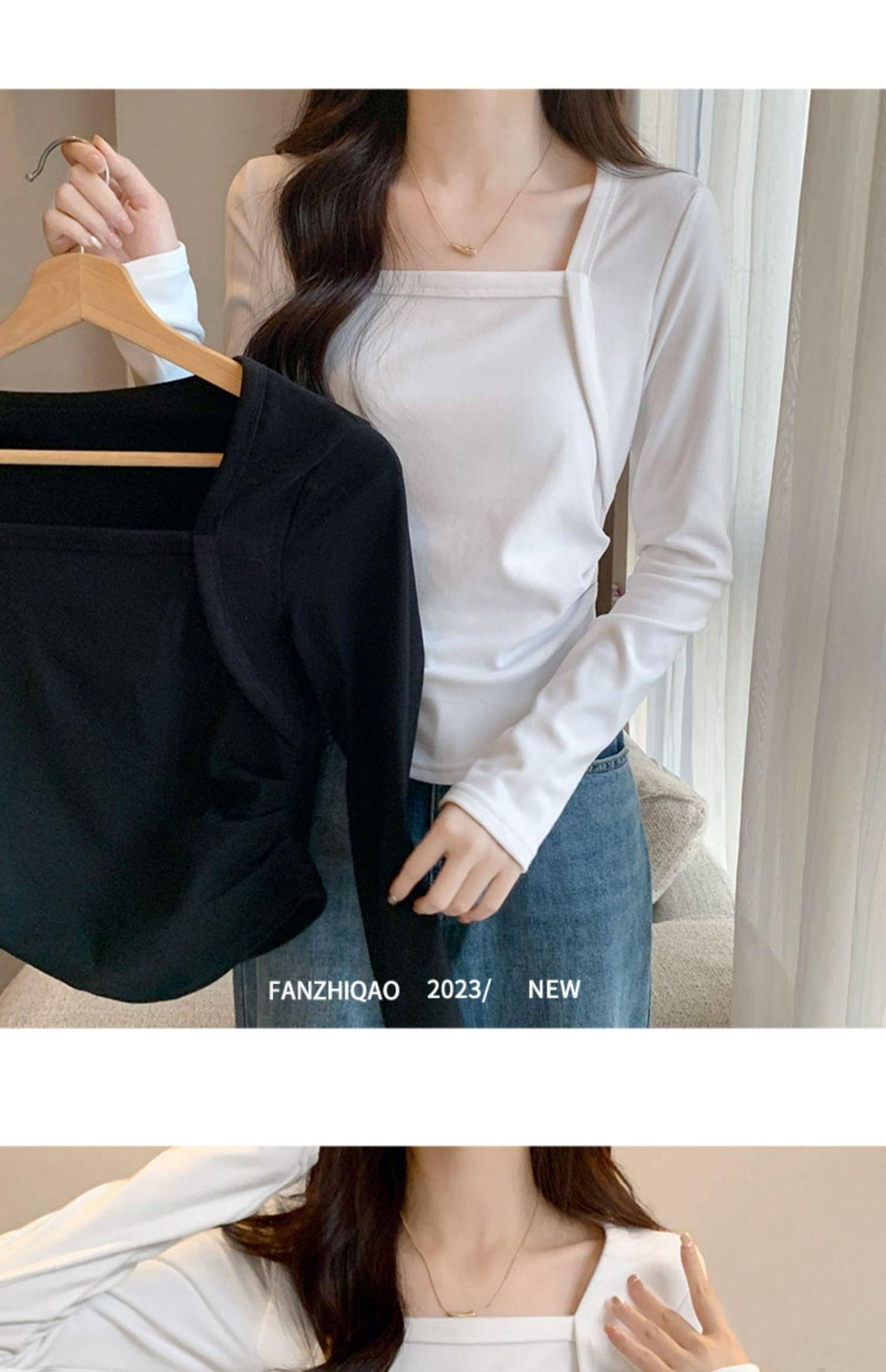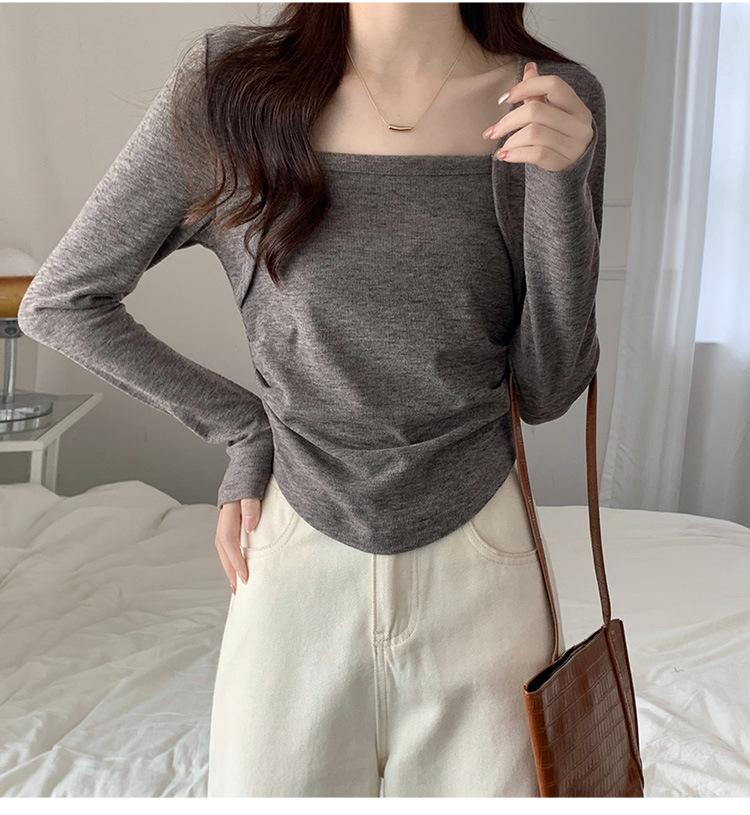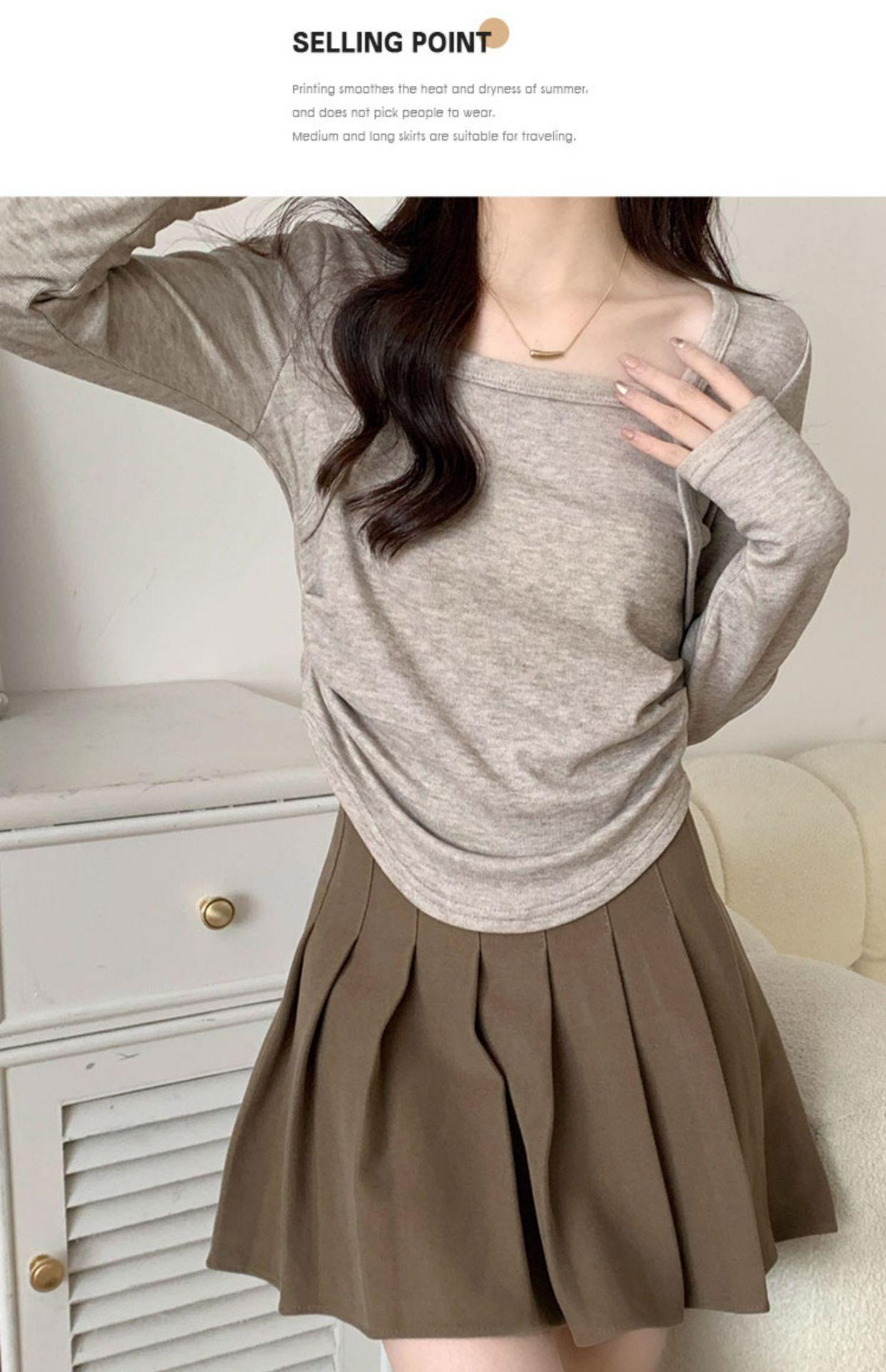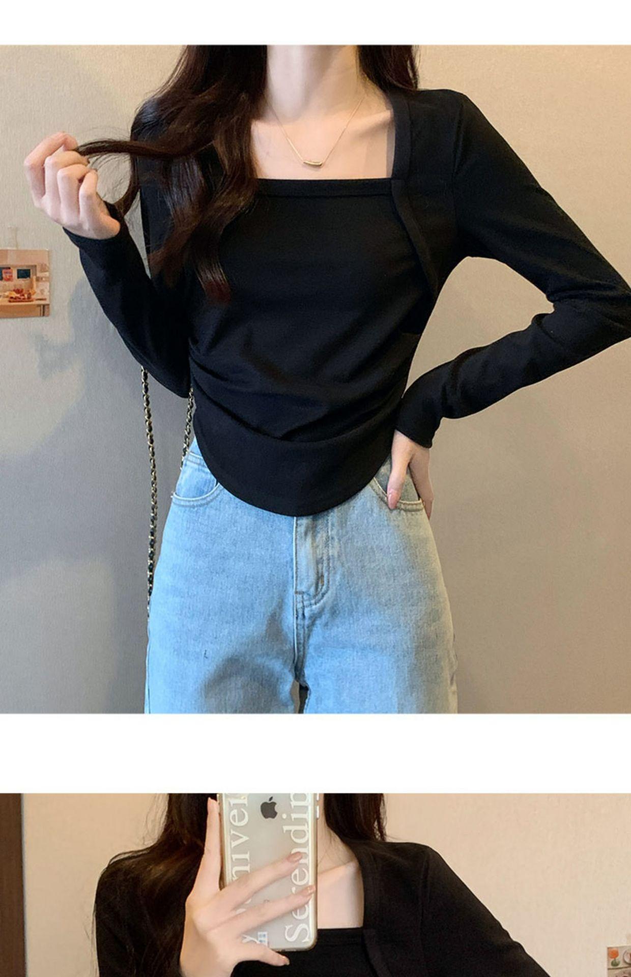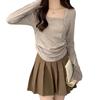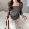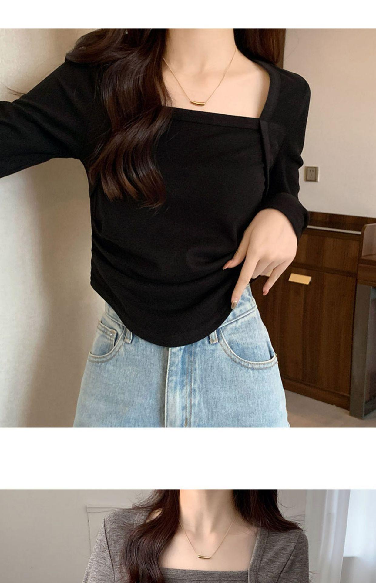 Top ajustado con cuello cuadrado y clavícula estilo Pure Desire para mujer, primavera y otoño, nuevo, falso, de dos piezas, nicho irregular, sexy, Spice Girl, manga larga