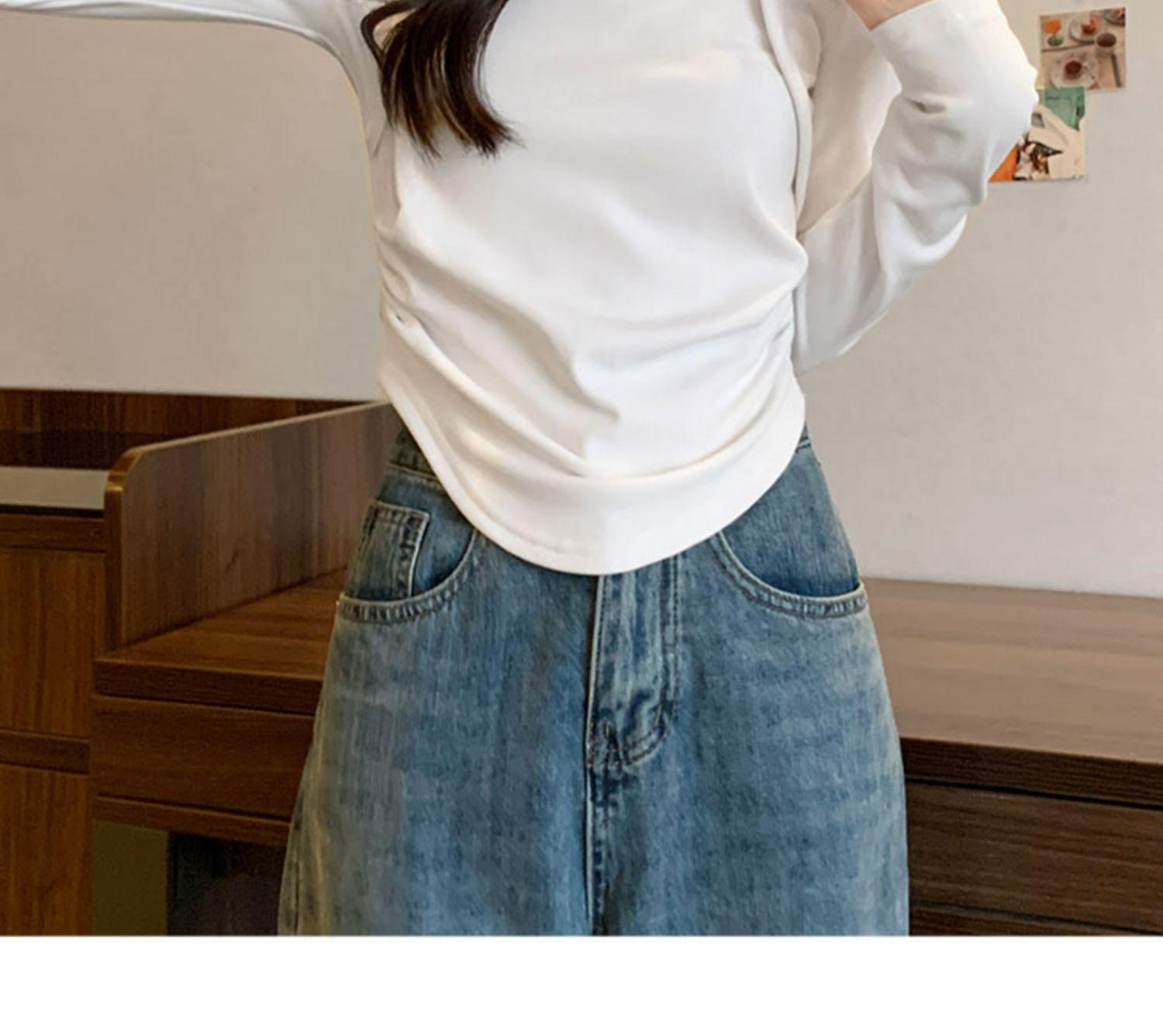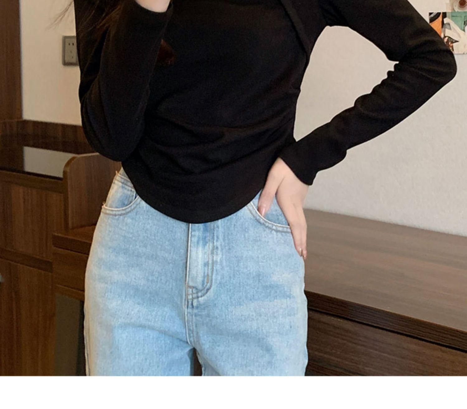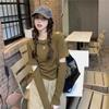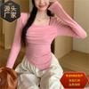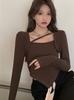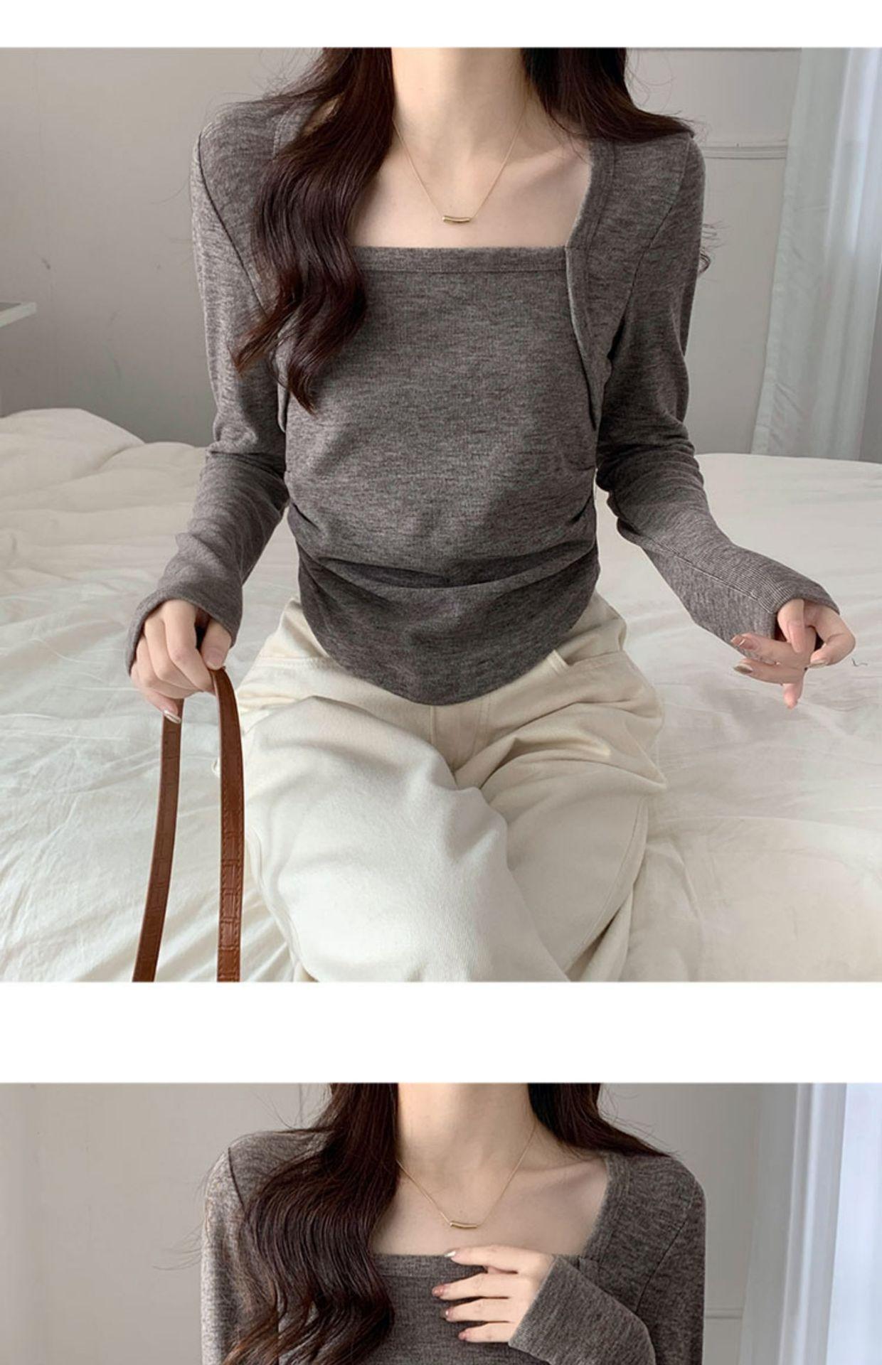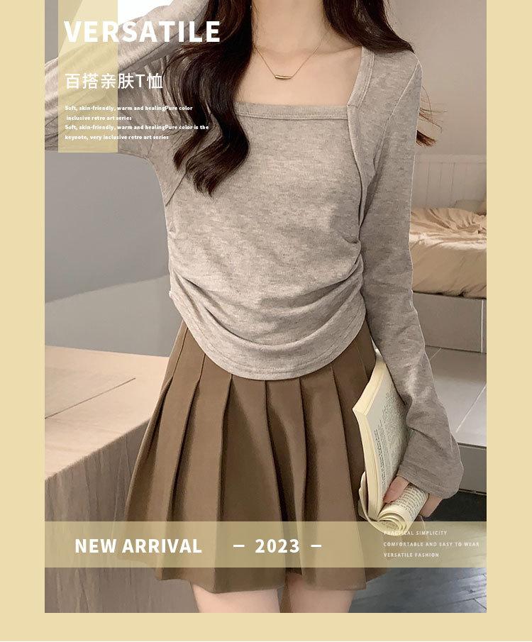Top ajustado con cuello cuadrado y clavícula estilo Pure Desire para mujer, primavera y otoño, nuevo, falso, de dos piezas, nicho irregular, sexy, Spice Girl, manga larga