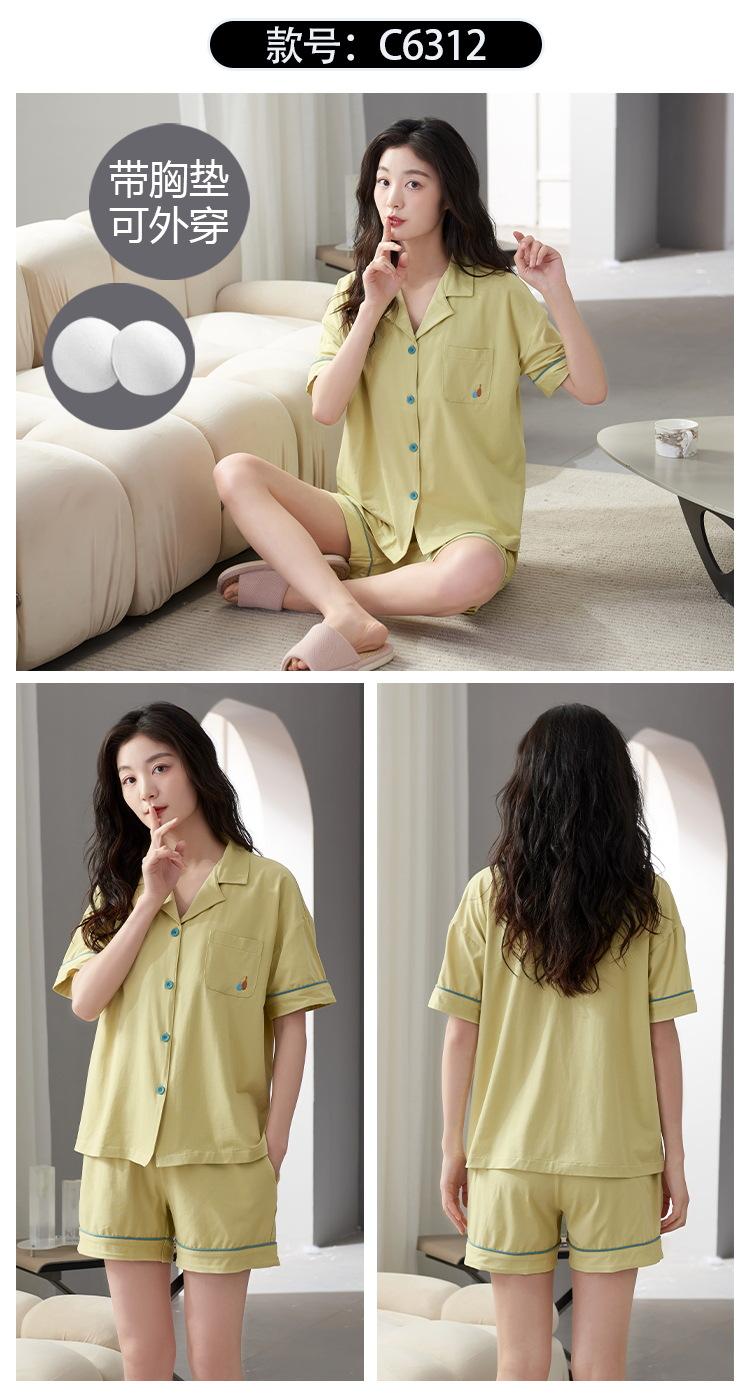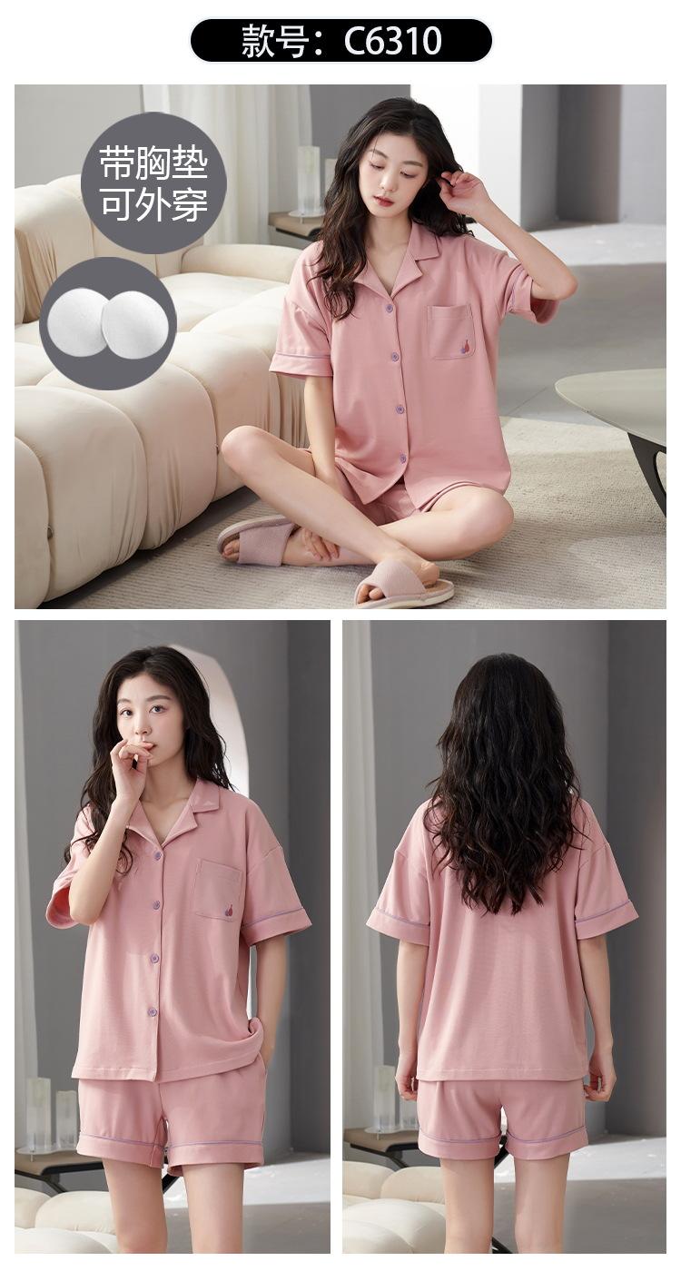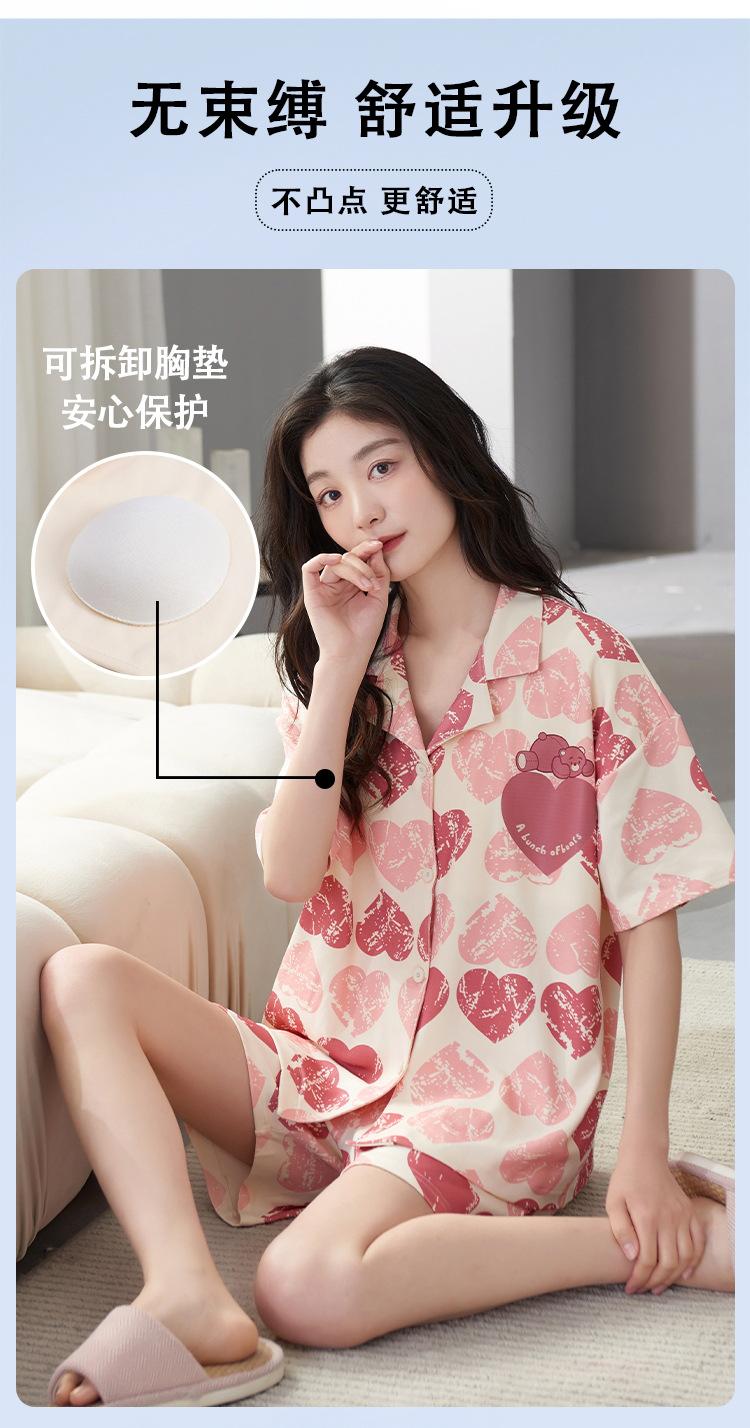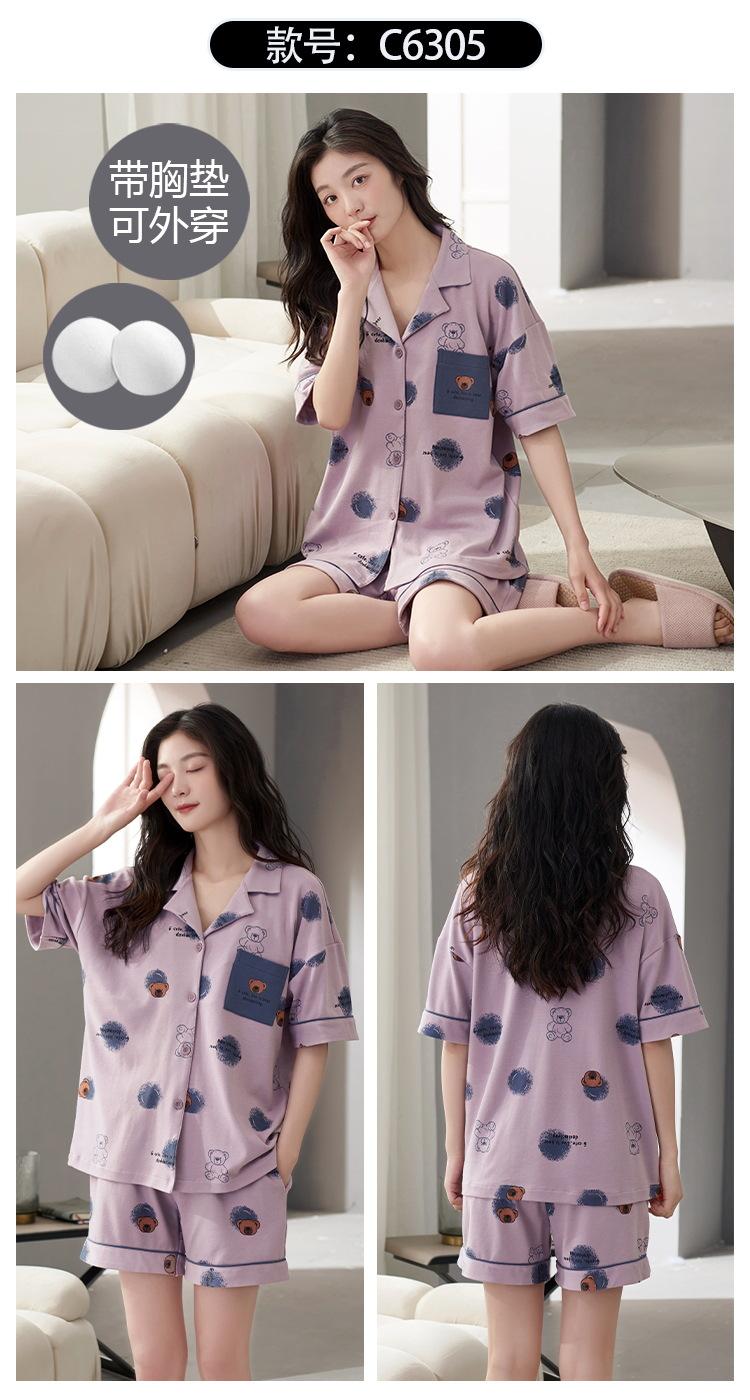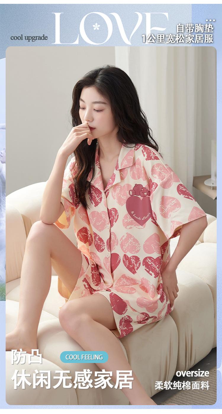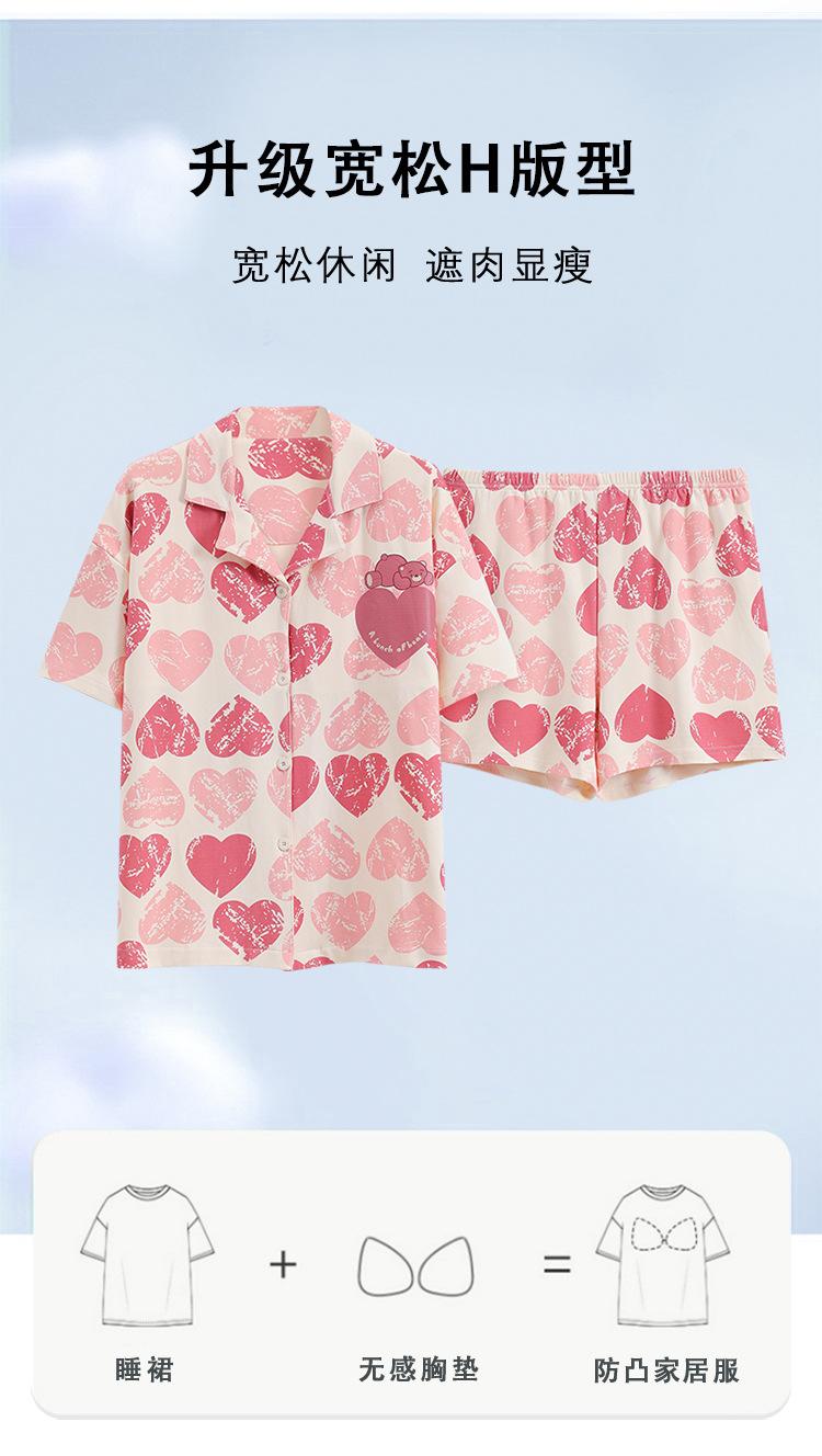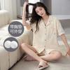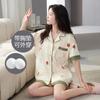 [Personalizado] Pijama de Verano para Mujer de Algodón Cárdigan con Almohadilla en el Pecho Holgado Manga Corta Estilo Coreano Conjunto de Ropa de Casa de Algodón para Mujer