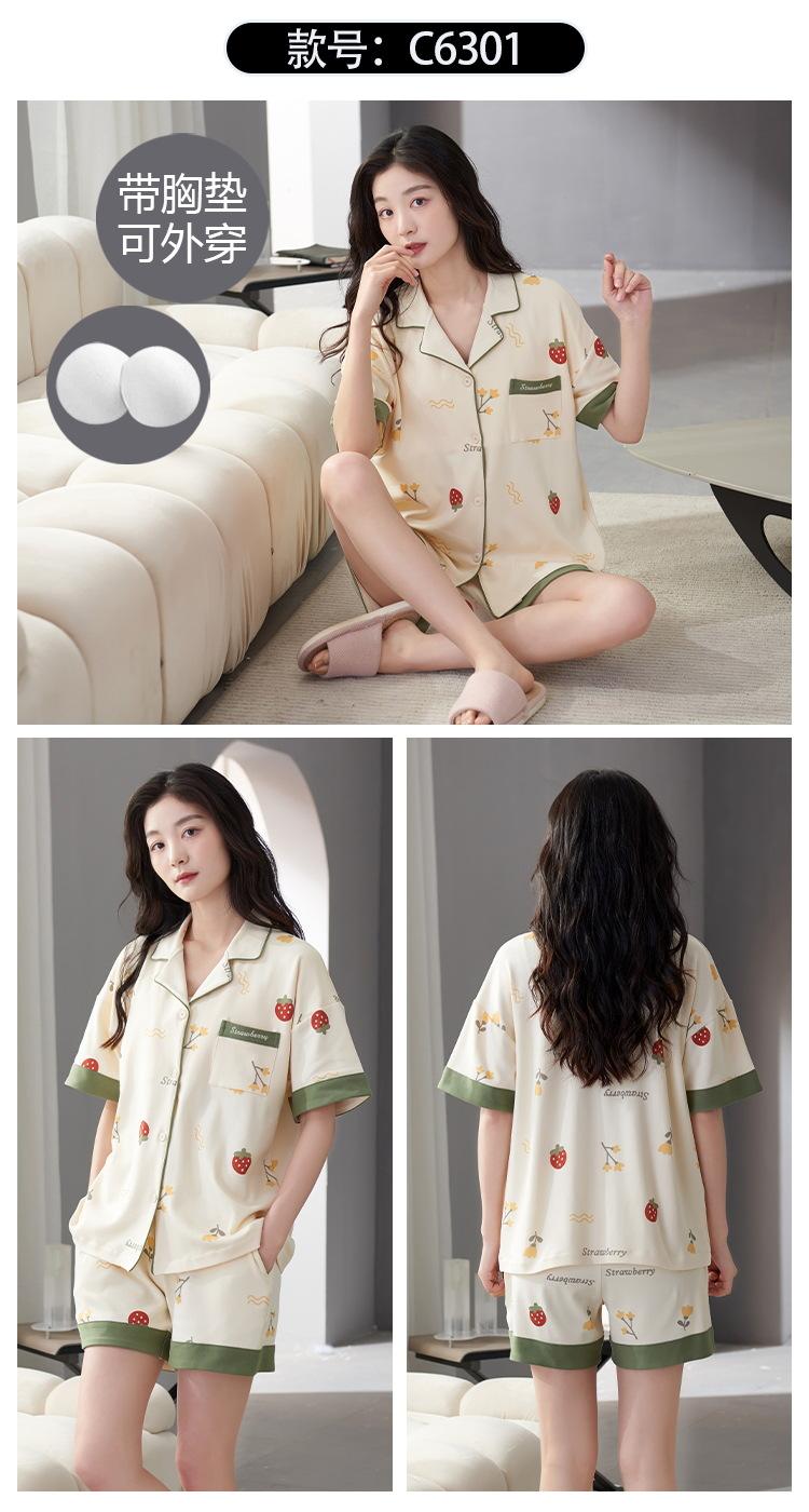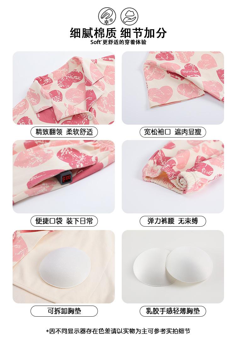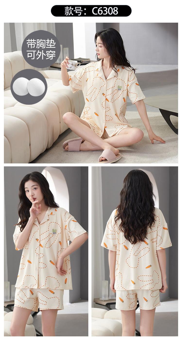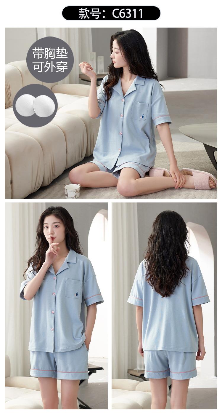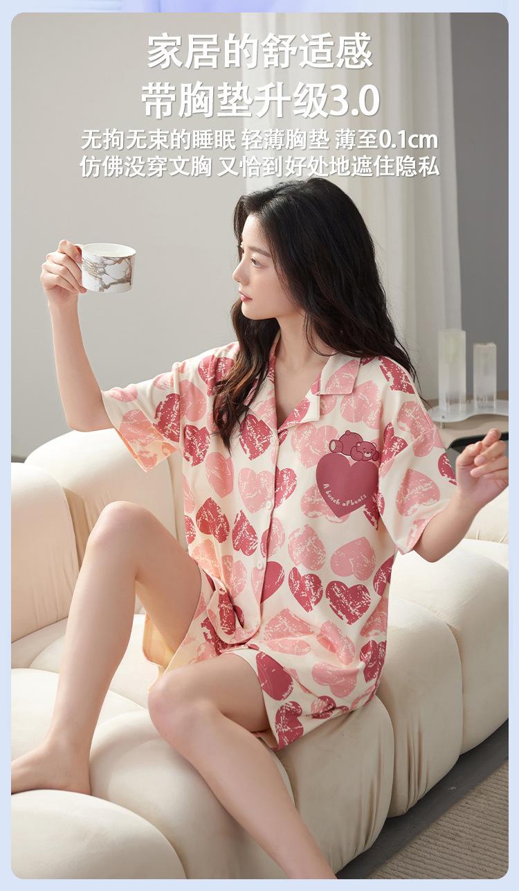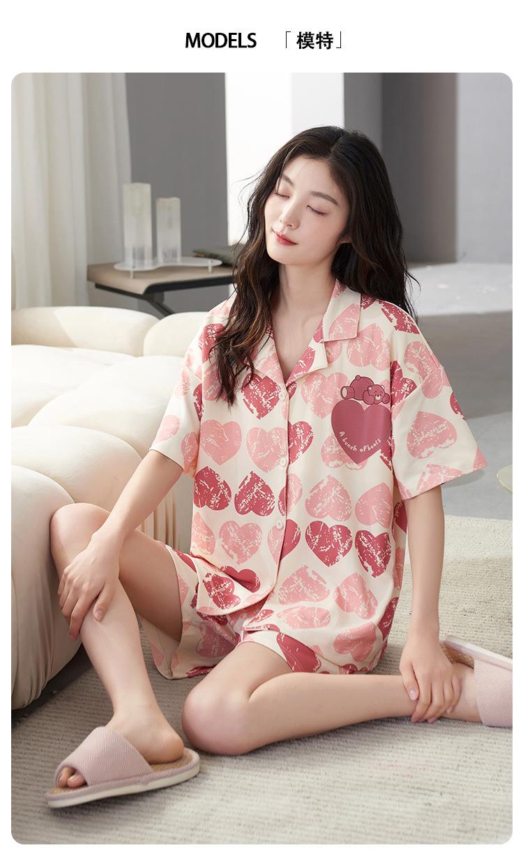 [Personalizado] Pijama de Verano para Mujer de Algodón Cárdigan con Almohadilla en el Pecho Holgado Manga Corta Estilo Coreano Conjunto de Ropa de Casa de Algodón para Mujer