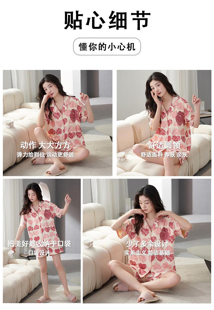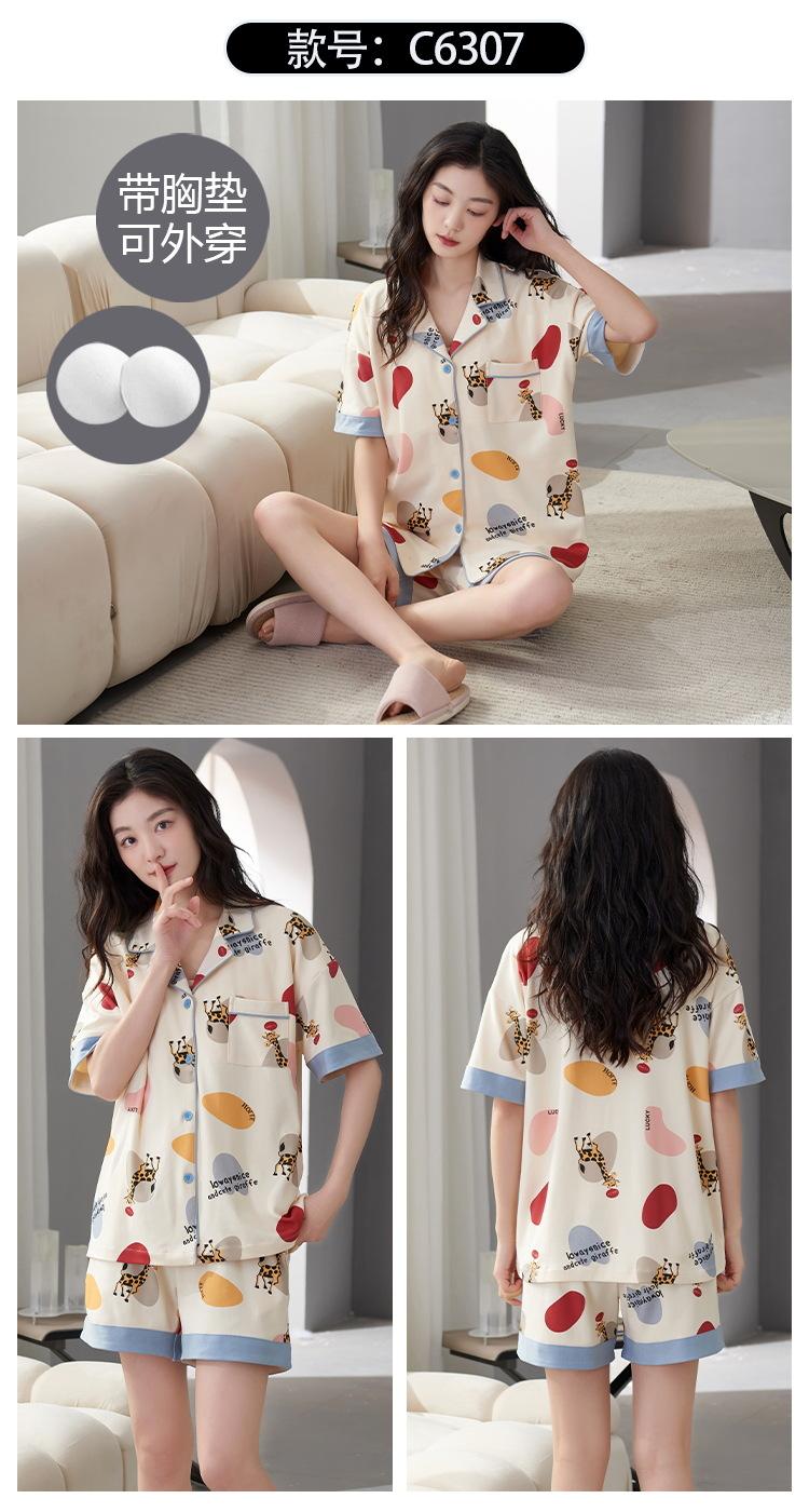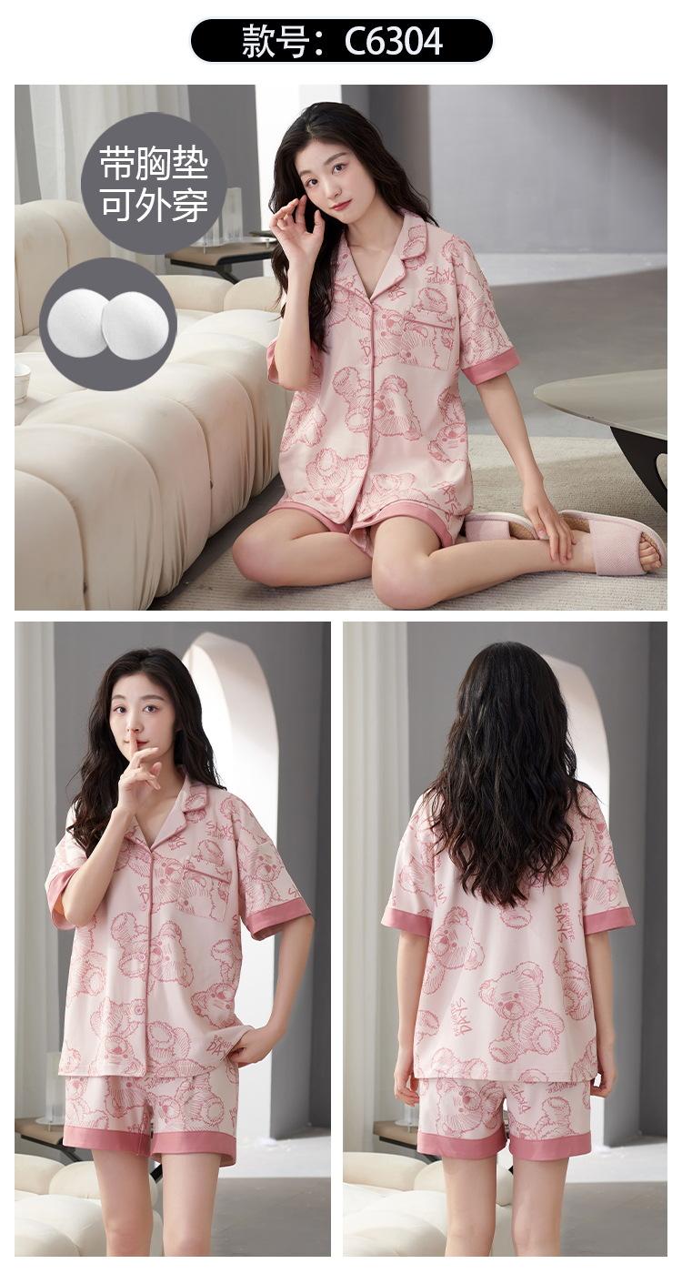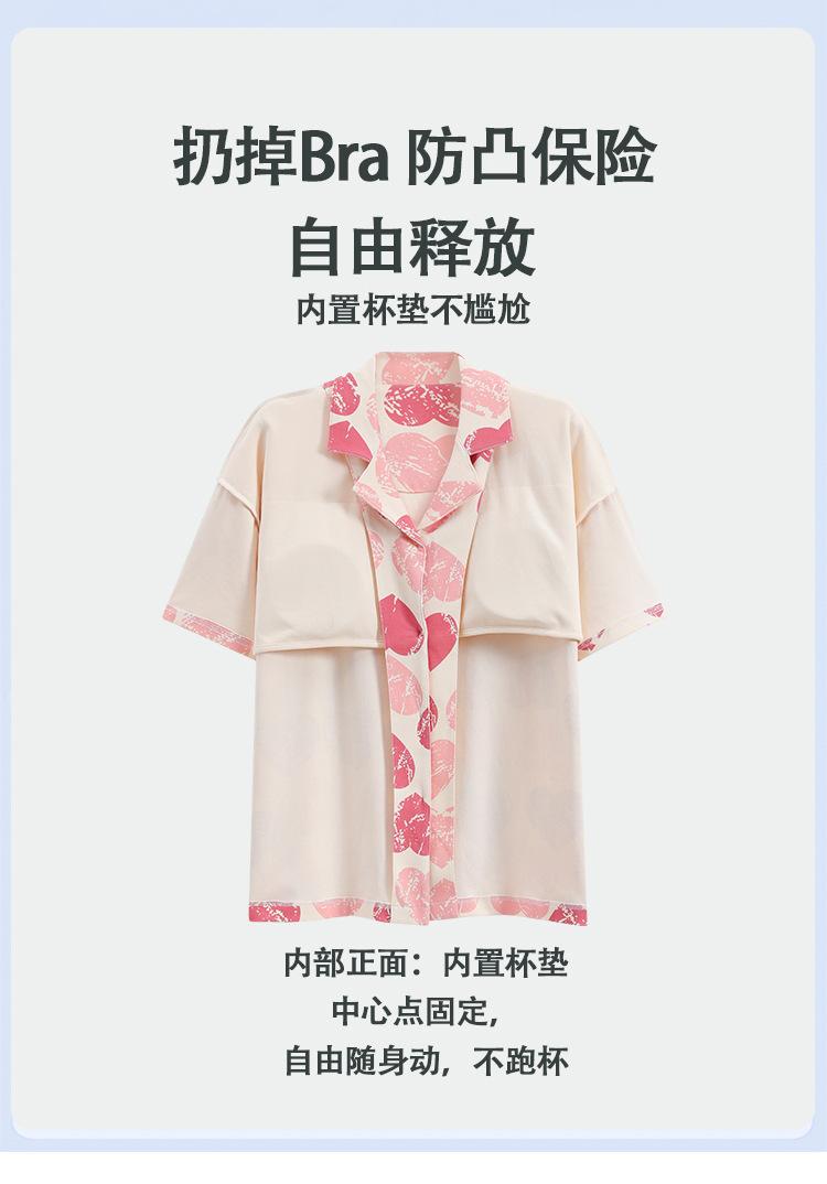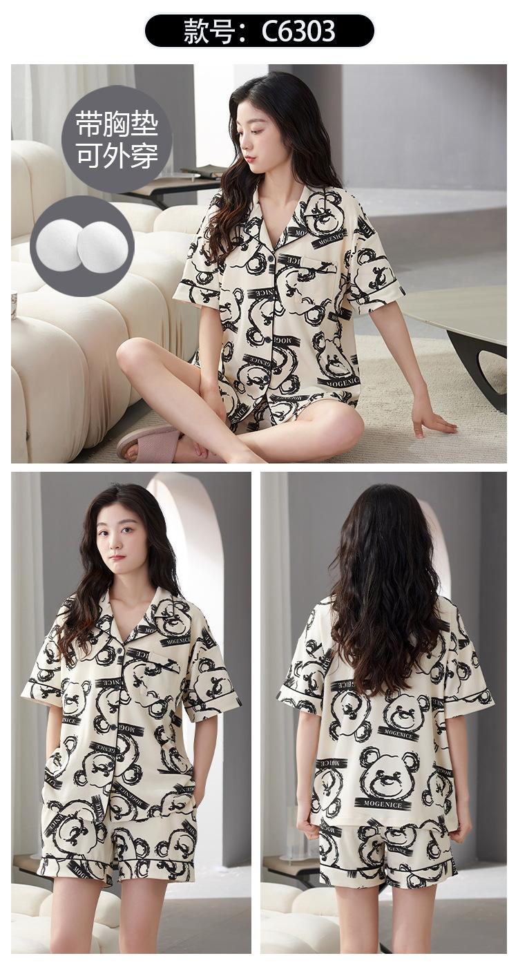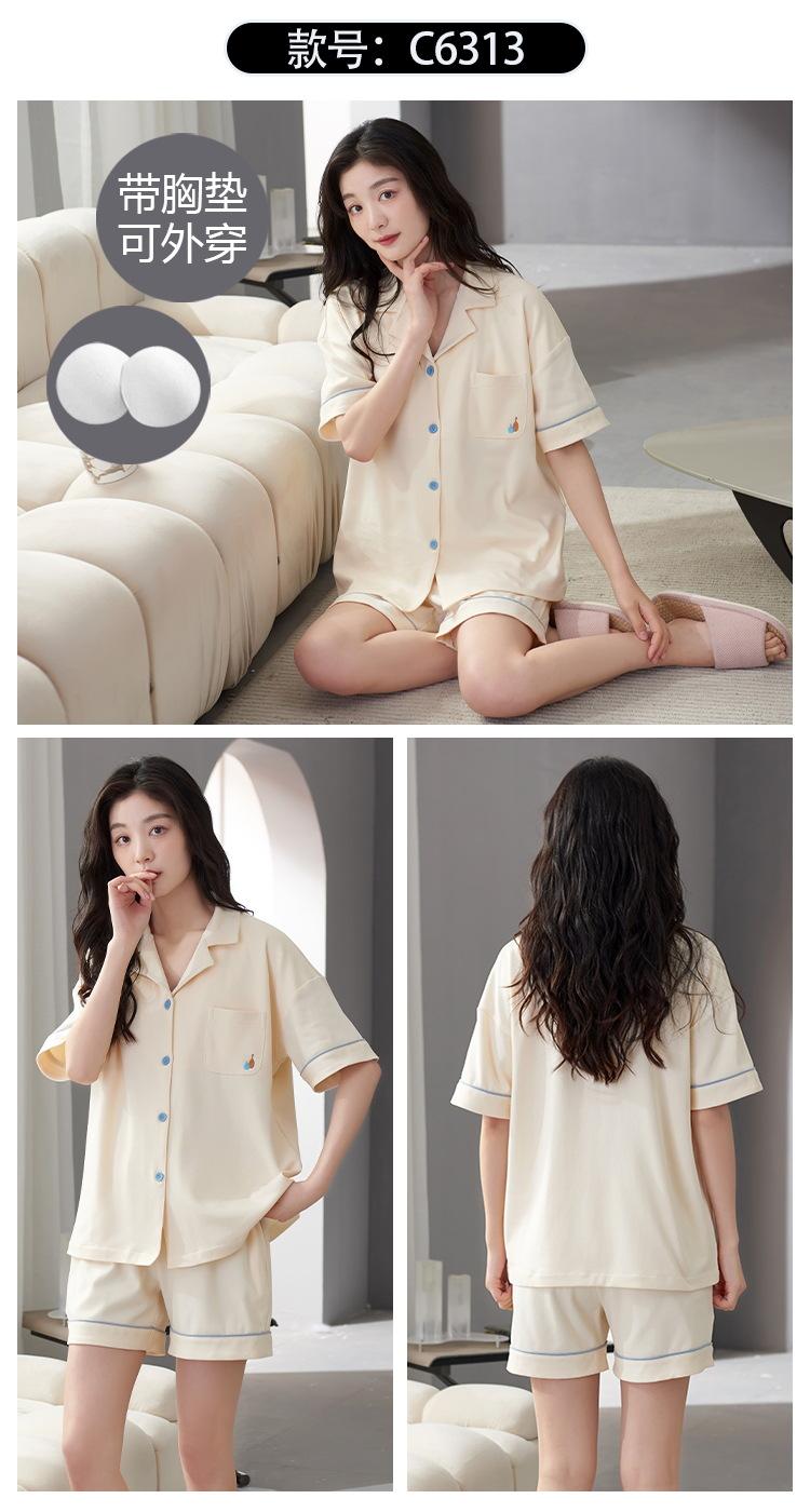 [Personalizado] Pijama de Verano para Mujer de Algodón Cárdigan con Almohadilla en el Pecho Holgado Manga Corta Estilo Coreano Conjunto de Ropa de Casa de Algodón para Mujer