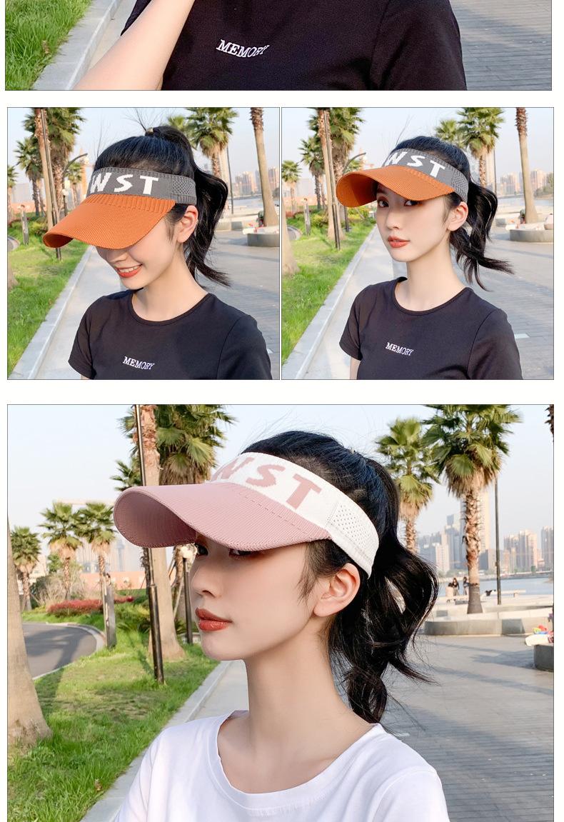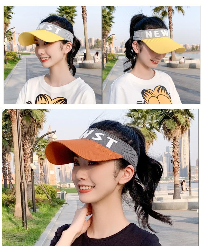 9327 nuevo sombrero de sol deportivo para exteriores de primavera y verano coreano con parte superior vacía para mujer, gorra de punto con pico de pato, gorra de béisbol con letras, sombrero de sol