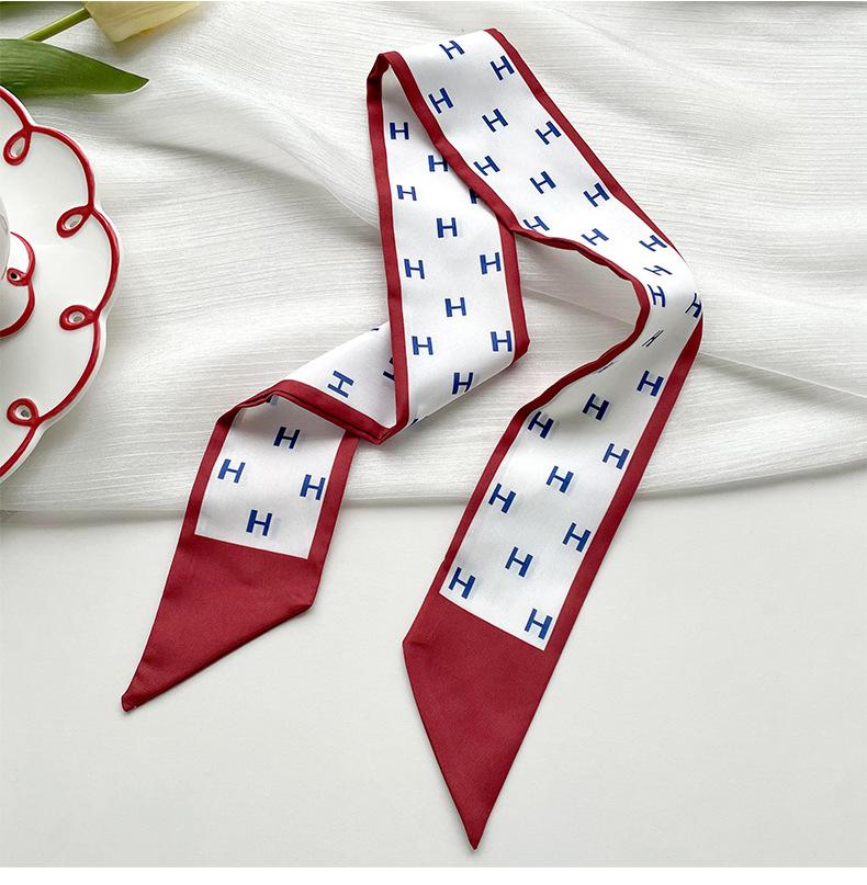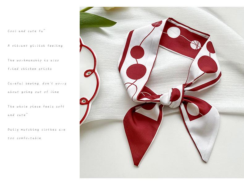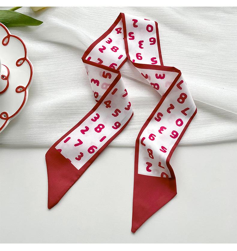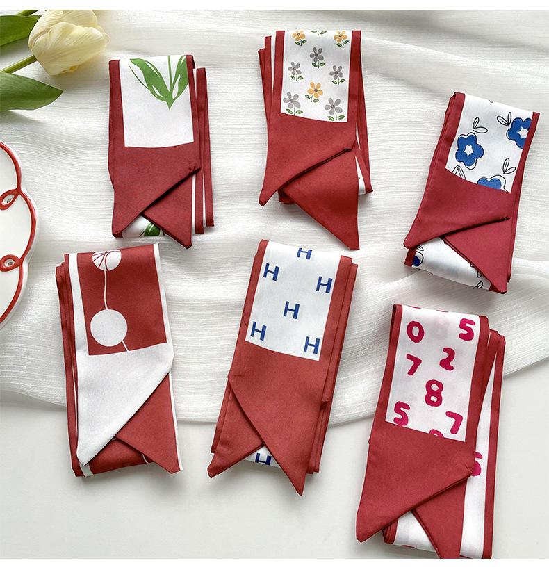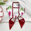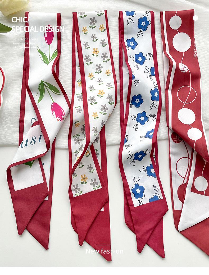 Pañuelo largo de seda blanco y rojo para mujer, estilo coreano, multifunción, para el pelo, bolso, pañuelo decorativo, cinta, accesorio para el pelo