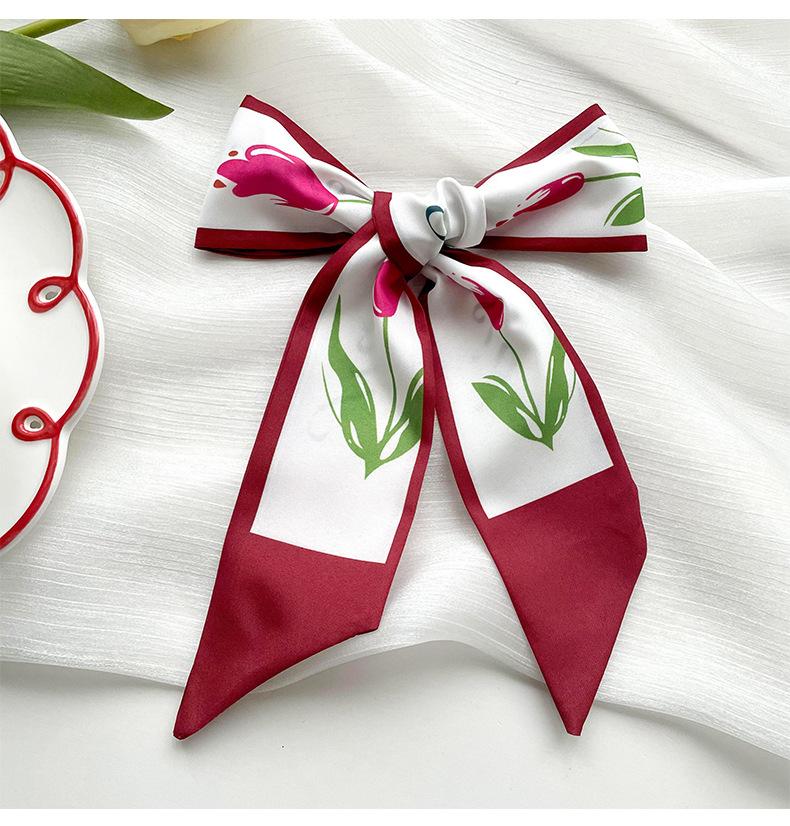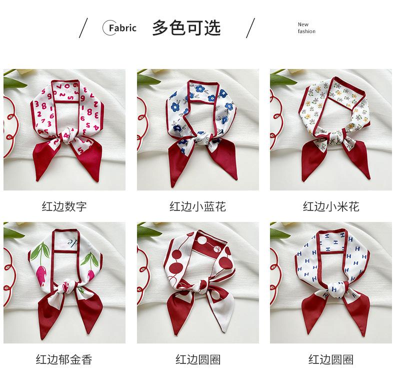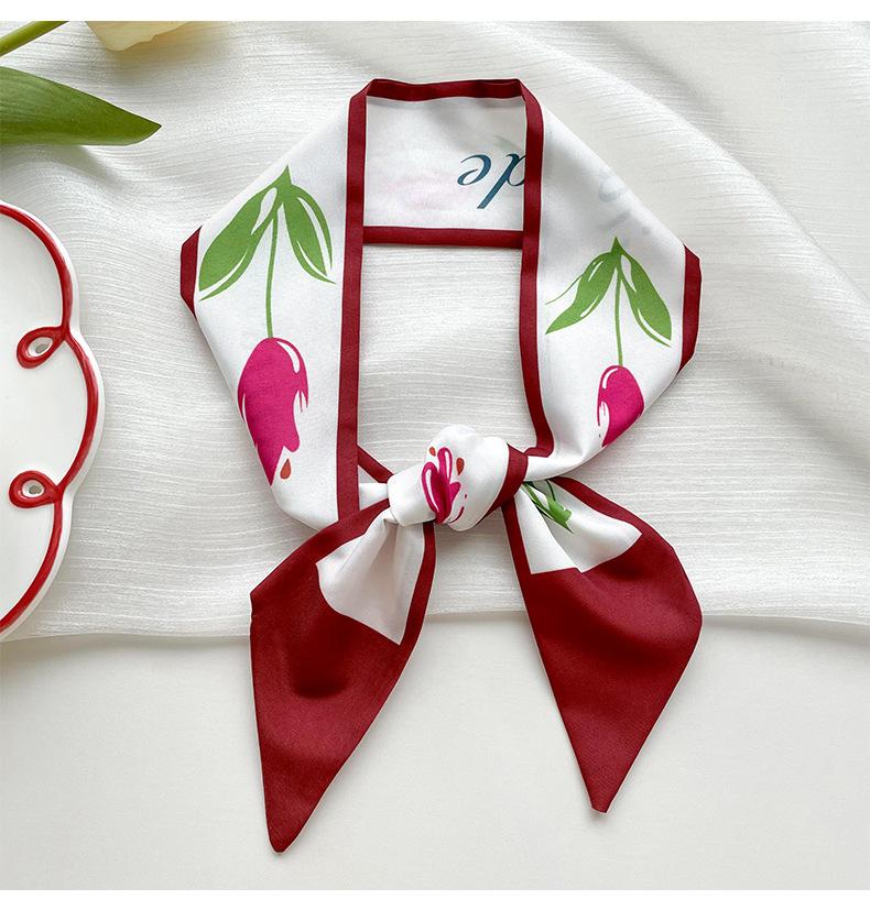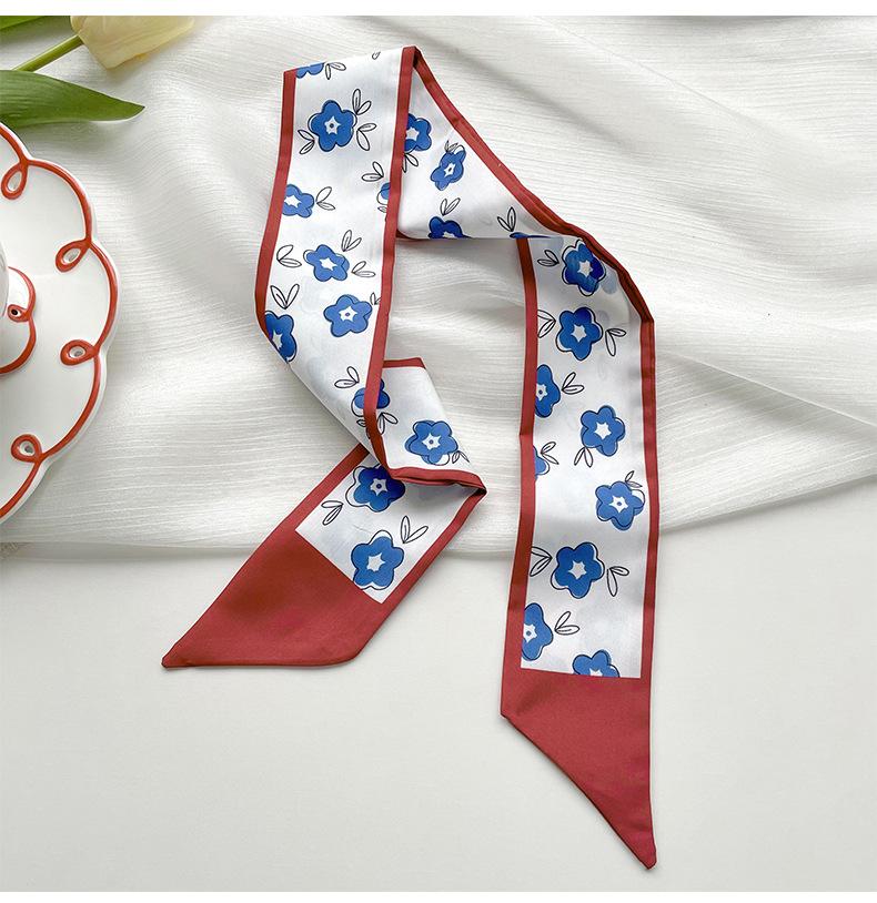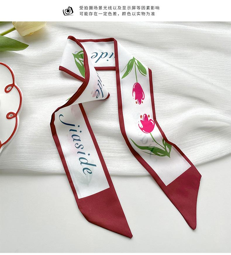 Pañuelo largo de seda blanco y rojo para mujer, estilo coreano, multifunción, para el pelo, bolso, pañuelo decorativo, cinta, accesorio para el pelo