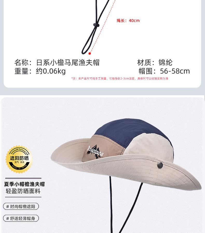 2024 nuevo sombrero de pescador con combinación de colores de primavera y verano, sombrero para pesca y montañismo al aire libre, sombrero de sol para mujer de secado rápido, transpirable y con protección solar