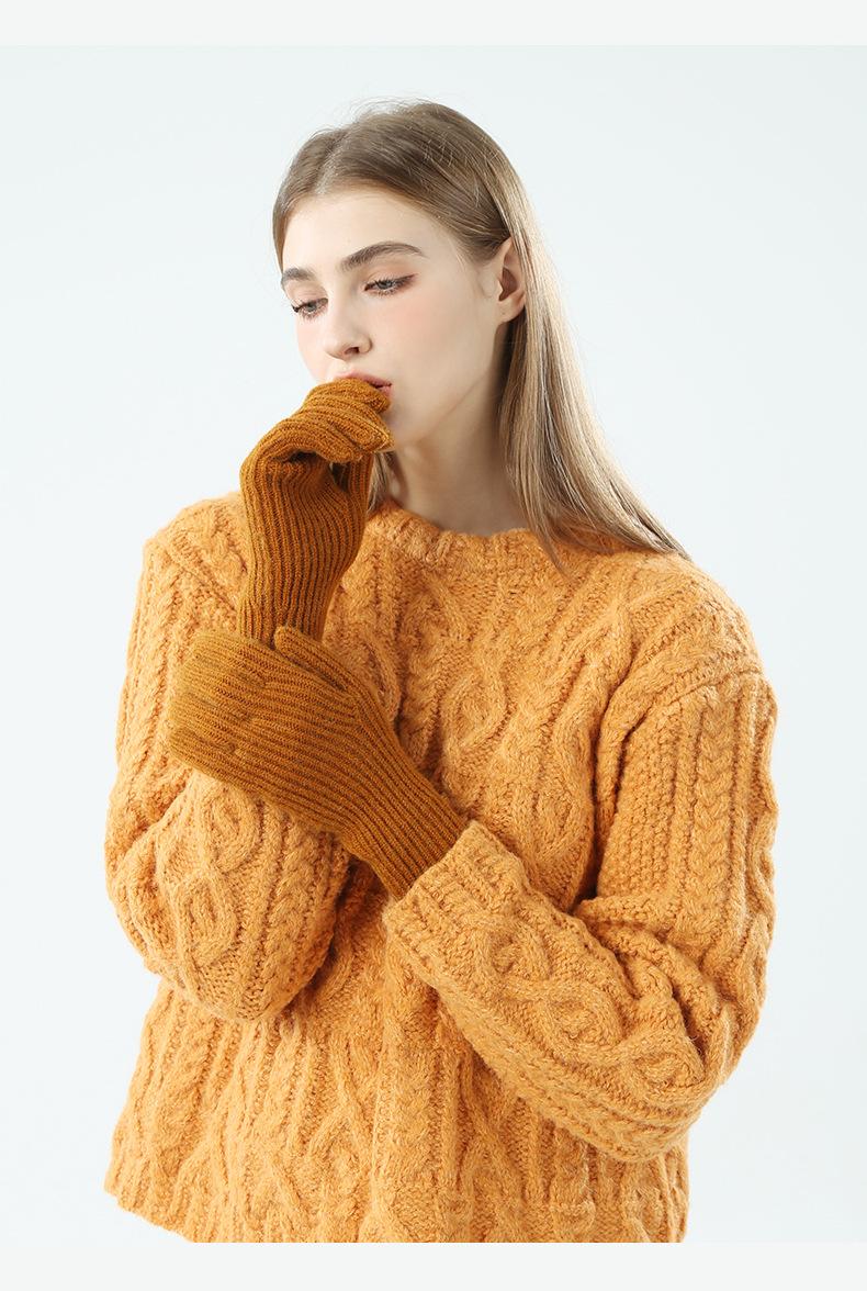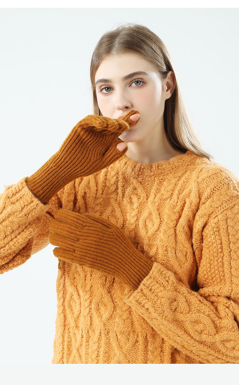 Guantes cálidos de invierno de color sólido, largos, abiertos, con pantalla táctil, gruesos, resistentes al frío, para exteriores, para estudiantes, guantes de punto de lana