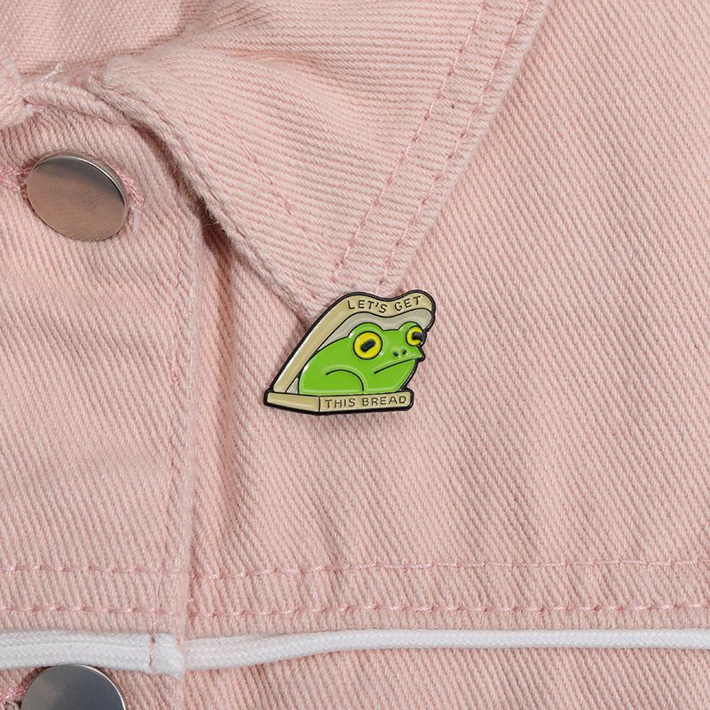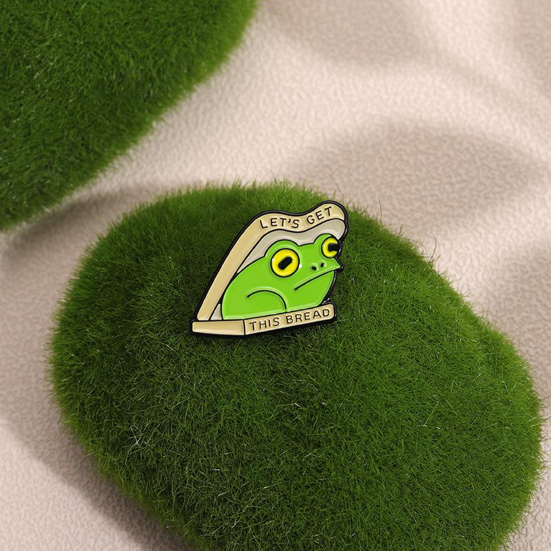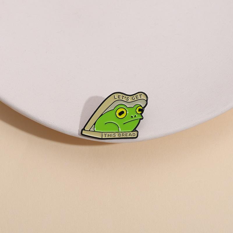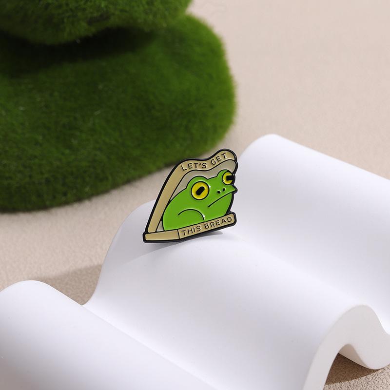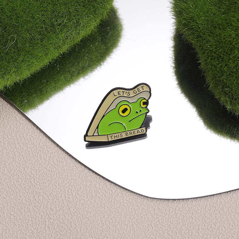 Comercio exterior transfronterizo "Vamos a conseguir este pan" Broche de rana pequeña inglés insignia metálica animal verde