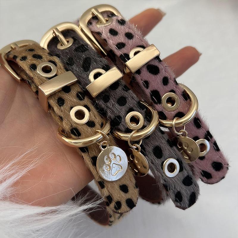 Pink leopard belt buckle collar, Brown leopard belt buckle collar, Gray leopard belt buckle collar