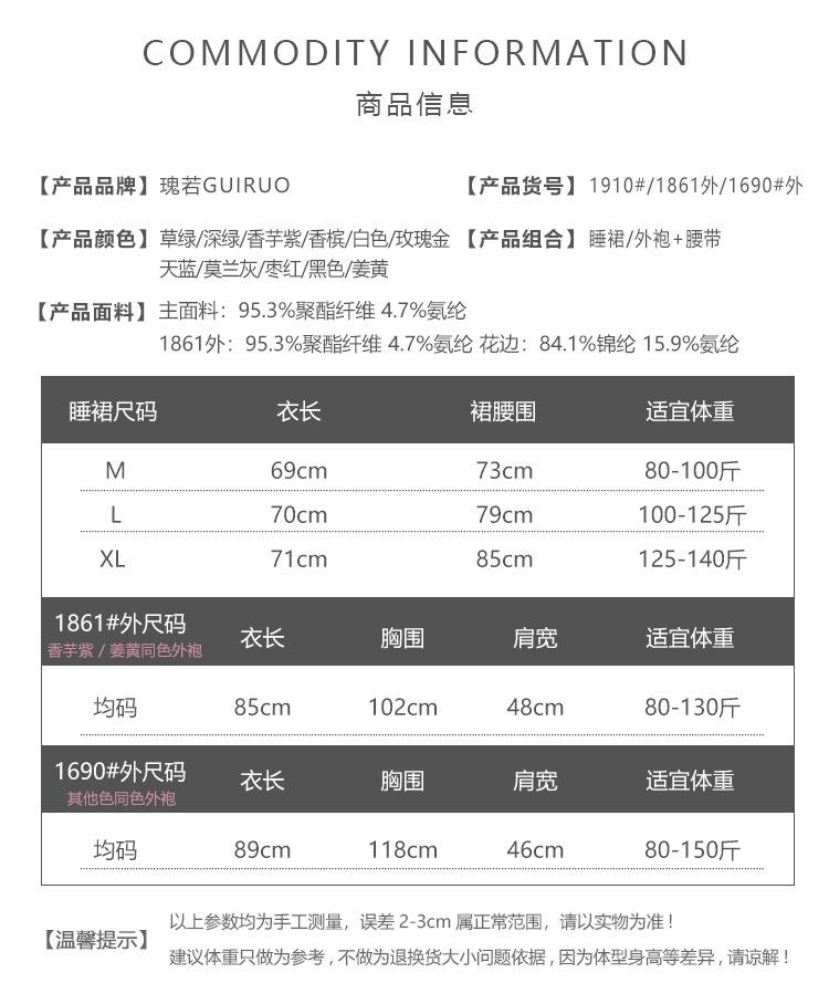 1910 black (nightgown), 1690 black (robe + belt), 1910 dark green (nightgown), 1690 dark green (robe + belt), ...