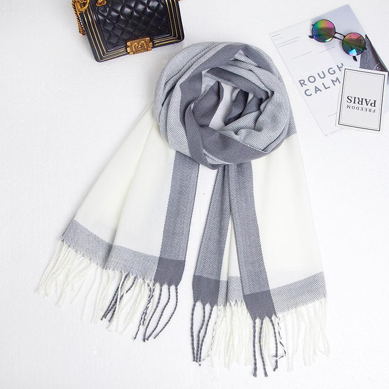 Venta directa de fábrica de otoño e invierno de Europa y América, nueva moda para mujer, cálida manta con borlas en forma de bufanda a cuadros, hermoso chal para el cuello