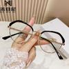 Gafas de 1920 con cambio de color, anti-luz azul, montura metálica retro para miopía, gafas de moda transfronterizas con media montura y cejas planas.