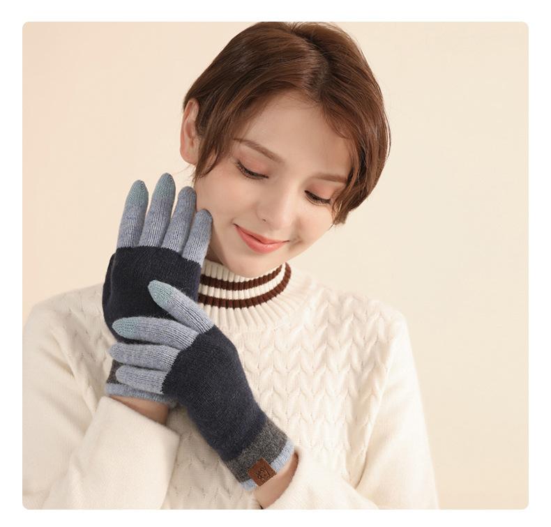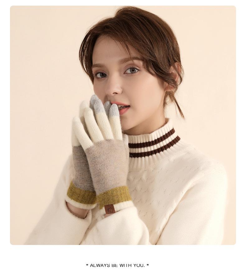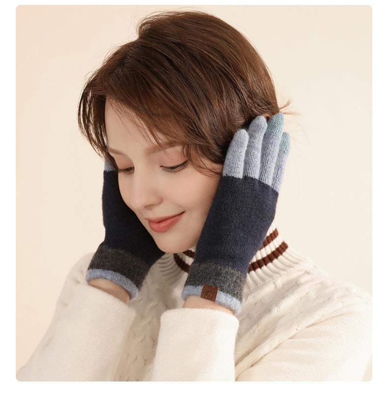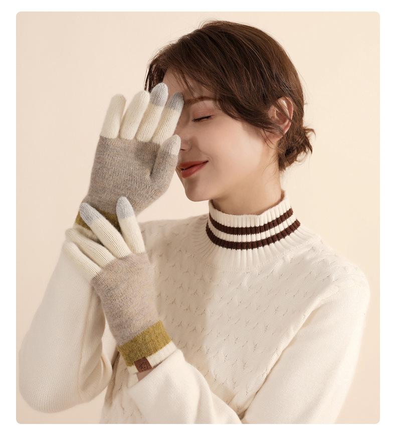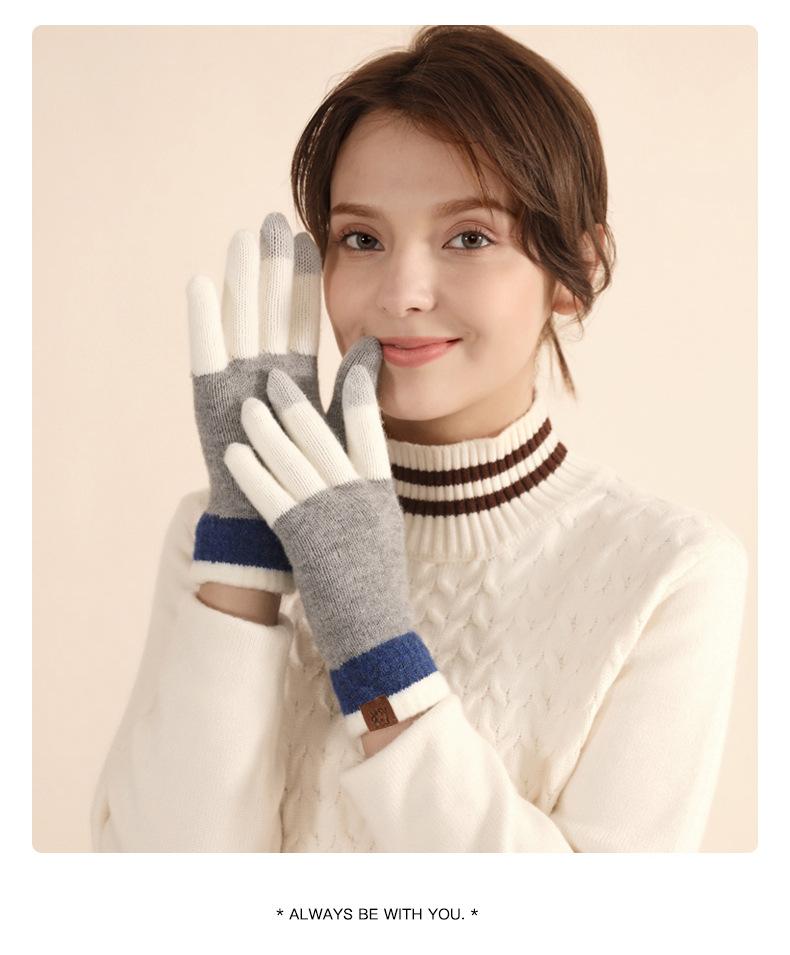 Guantes cálidos de lana para adultos, de invierno, resistentes al frío, para pantallas táctiles, estilo japonés, de punto en colores contrastantes para mujer.