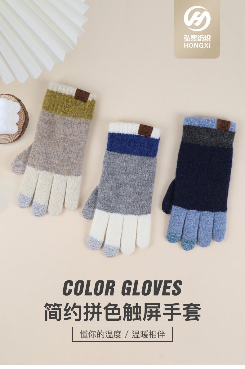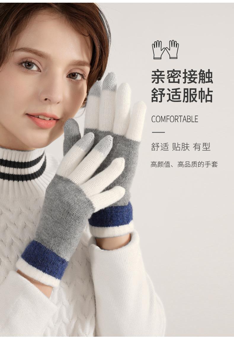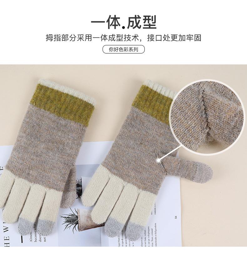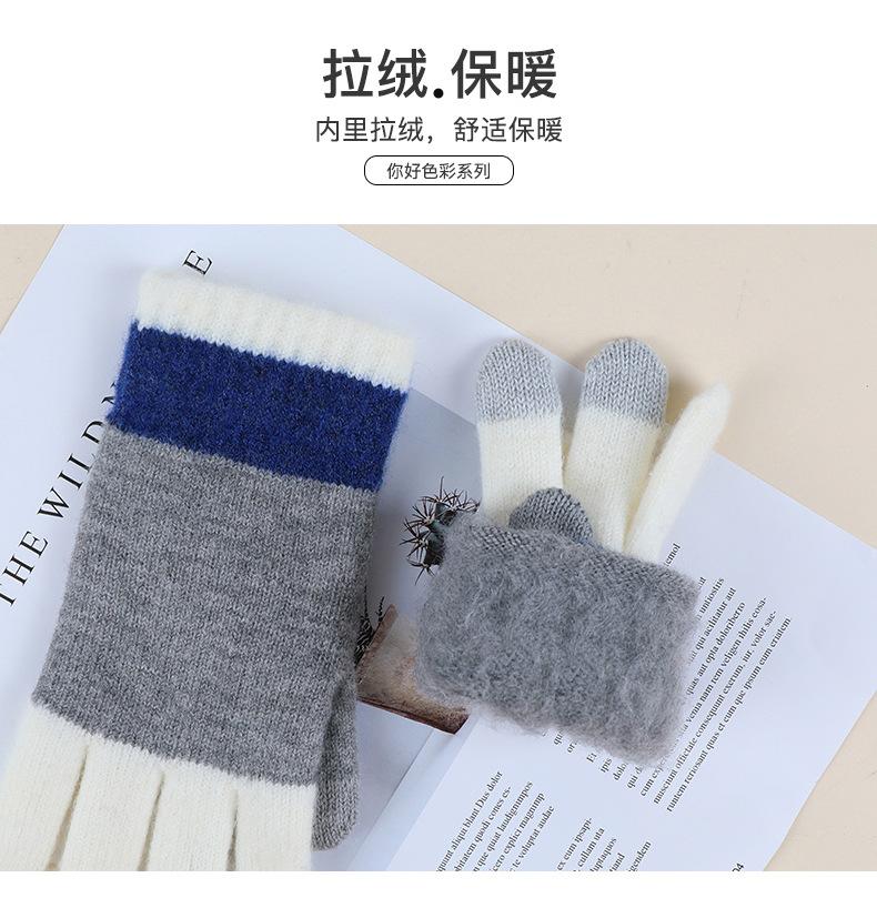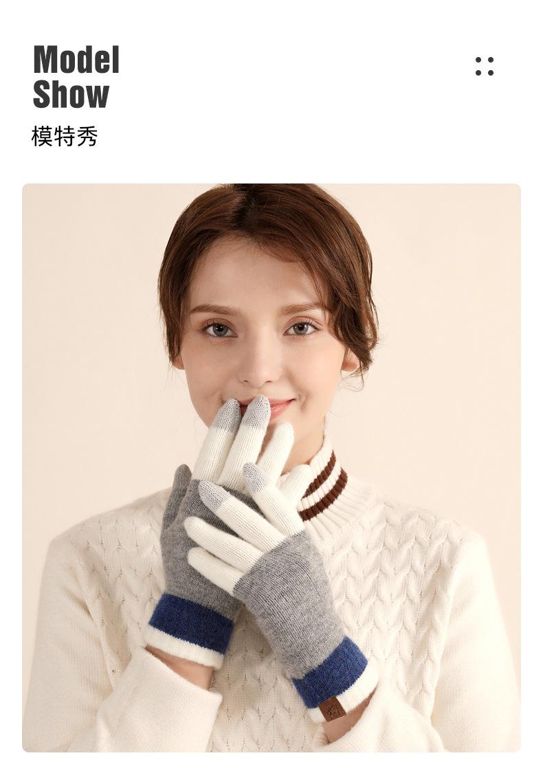Guantes cálidos de lana para adultos, de invierno, resistentes al frío, para pantallas táctiles, estilo japonés, de punto en colores contrastantes para mujer.