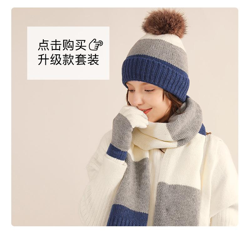 Nuevo gorro cálido de lana de color sólido de Amazon, bufanda, guantes, bola de lana a prueba de frío de tres piezas y traje de punto de terciopelo