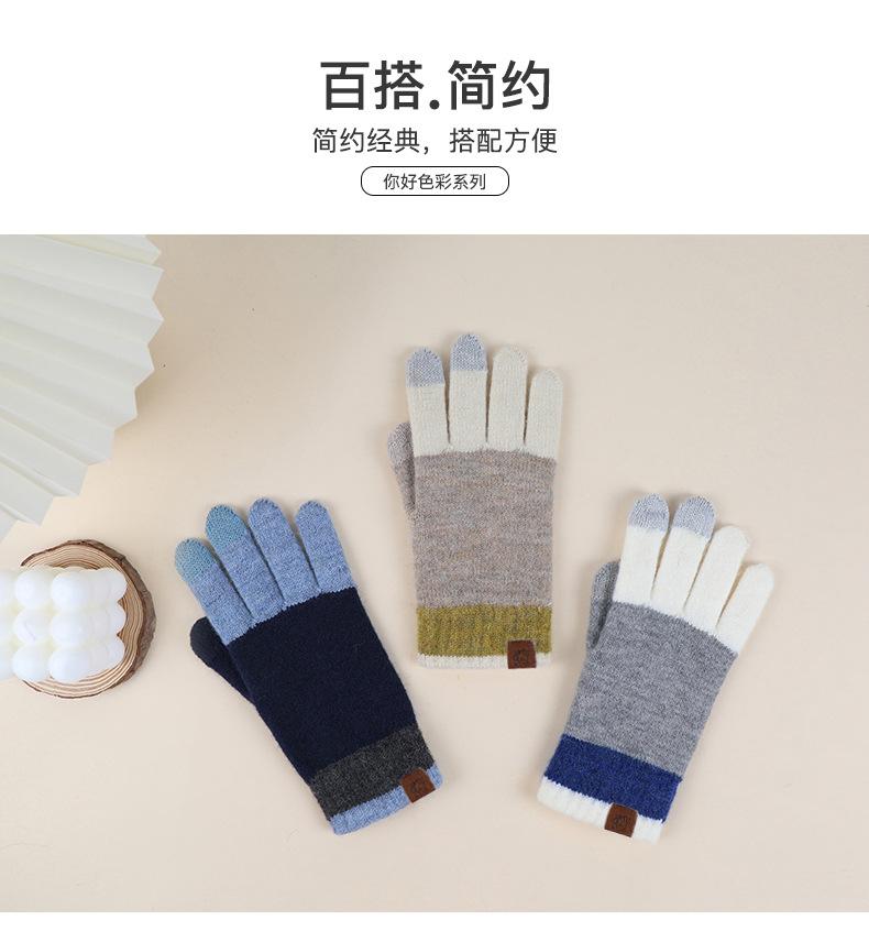 Guantes de punto de lana en contraste de gran venta en otoño e invierno japoneses, de estilo retro jacquard y terciopelo, para ciclismo, con pantalla táctil y cálidos.