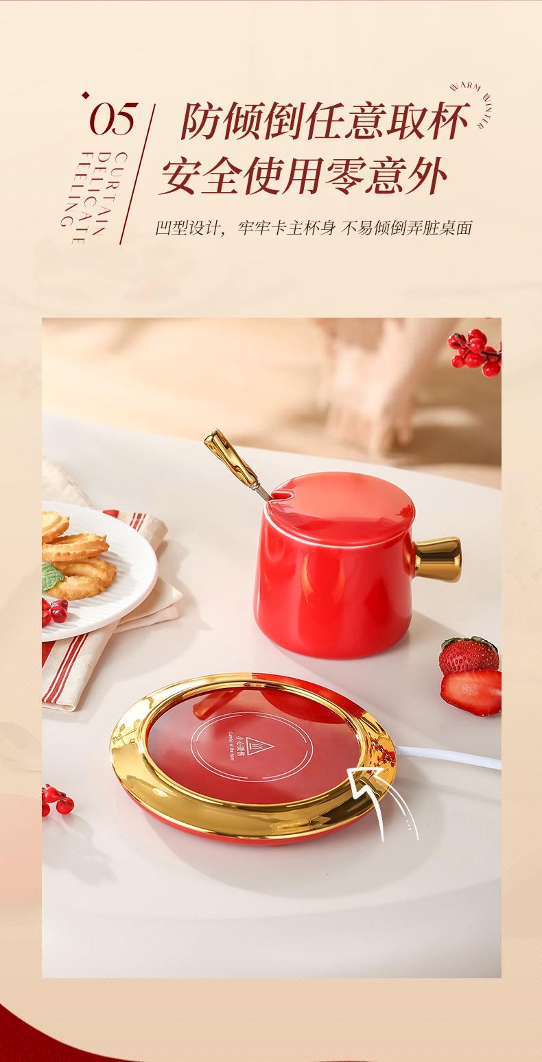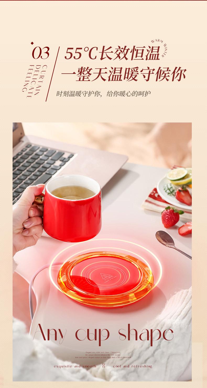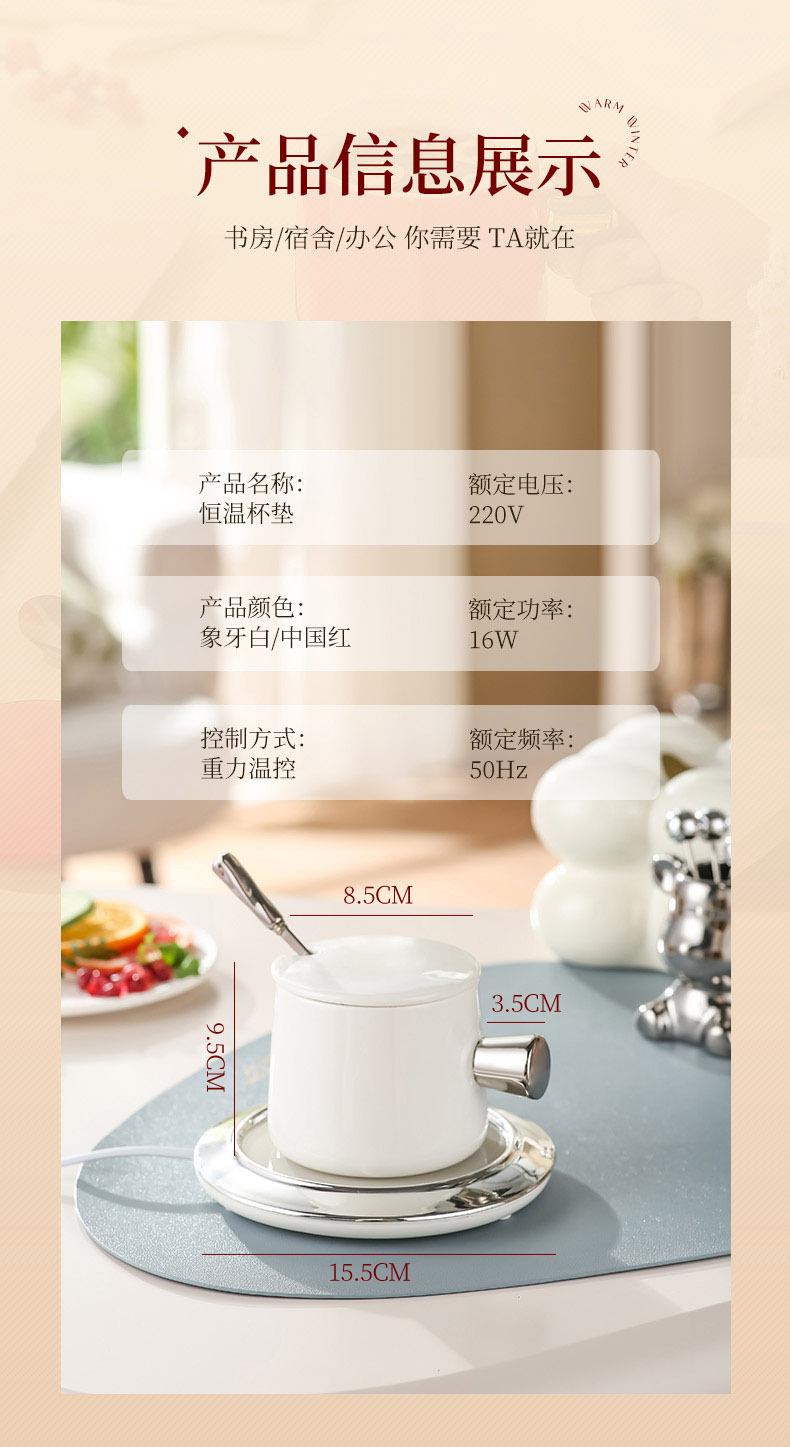 Calentador de Taza Eléctrico para Oficina, Plato Calentador de Leche, Taza de Cerámica con Sensor de Gravedad de 55 Grados, Gadget Eléctrico Calentador para Oficina
