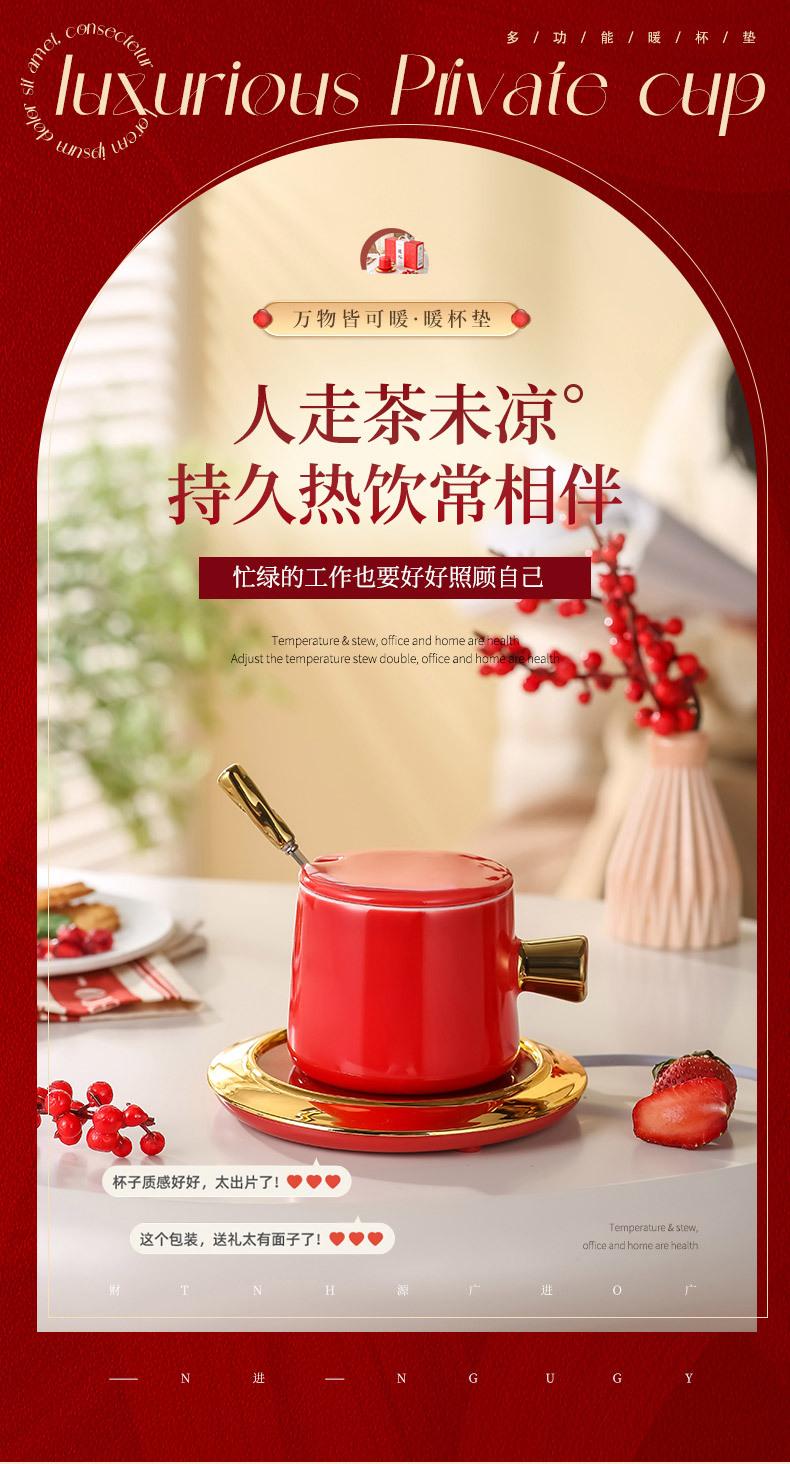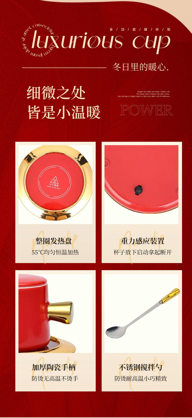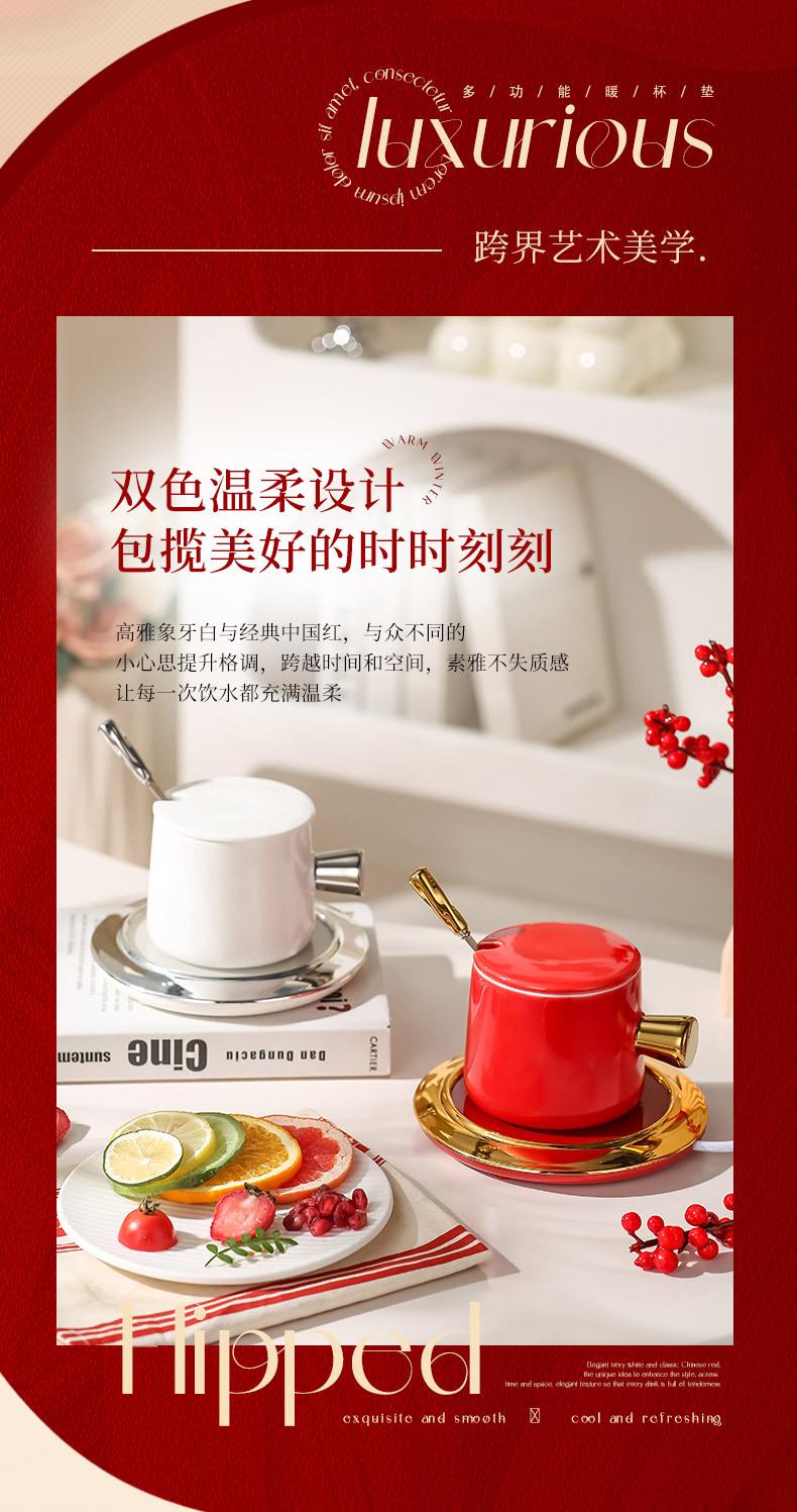 Calentador de Taza Eléctrico para Oficina, Plato Calentador de Leche, Taza de Cerámica con Sensor de Gravedad de 55 Grados, Gadget Eléctrico Calentador para Oficina