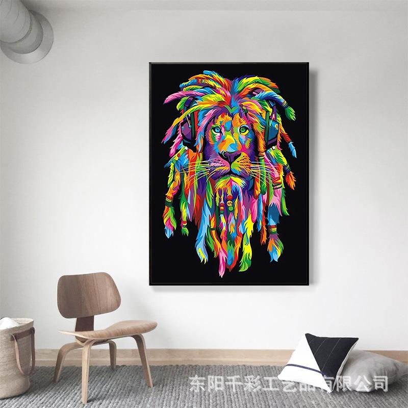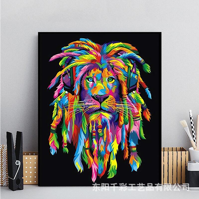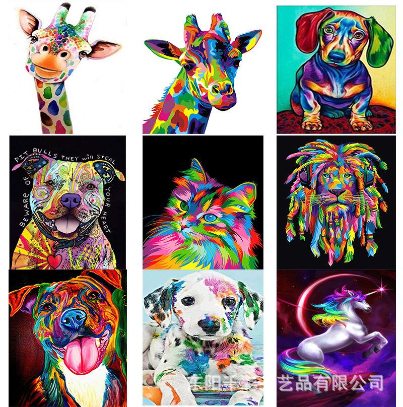 Nueva Pintura de Diamantes DIY de Amazon 5D Cabeza de Animal Colorida con Puntos de Diamante Punto de Cruz Moderno Pintura Decorativa
