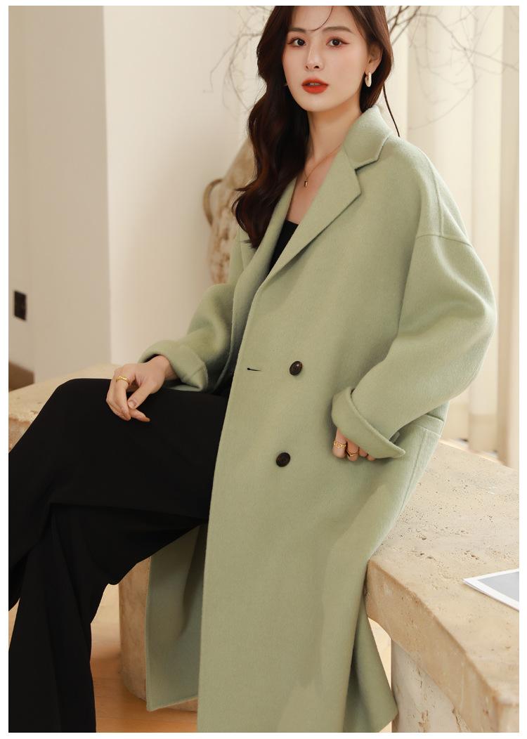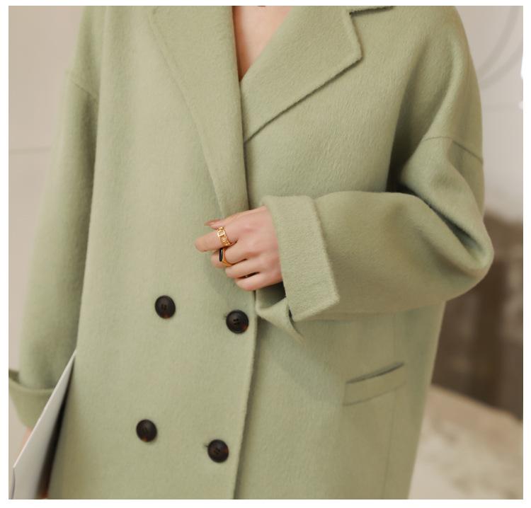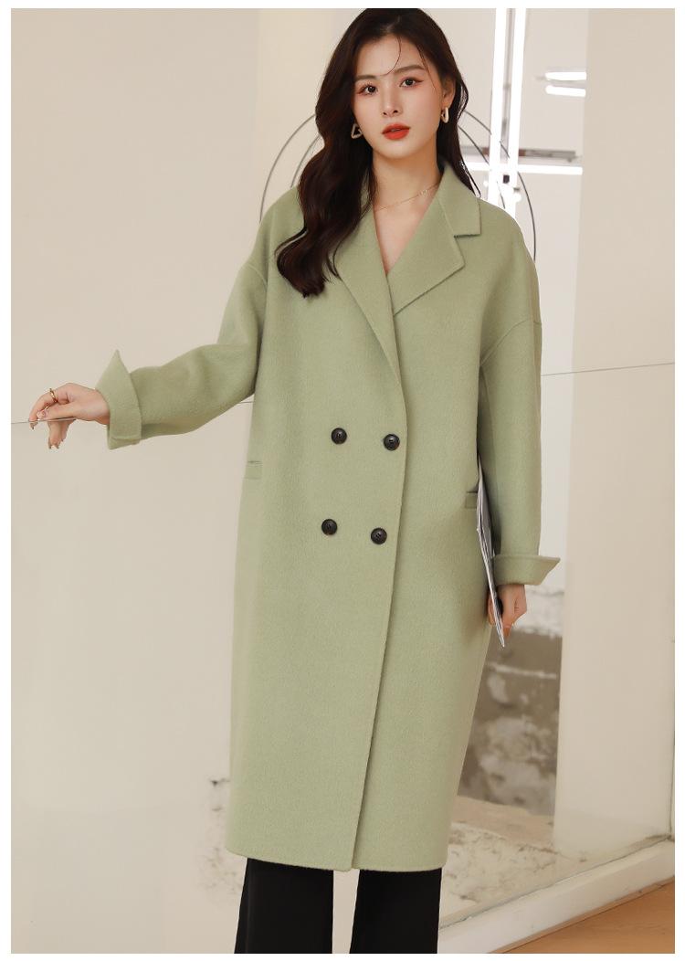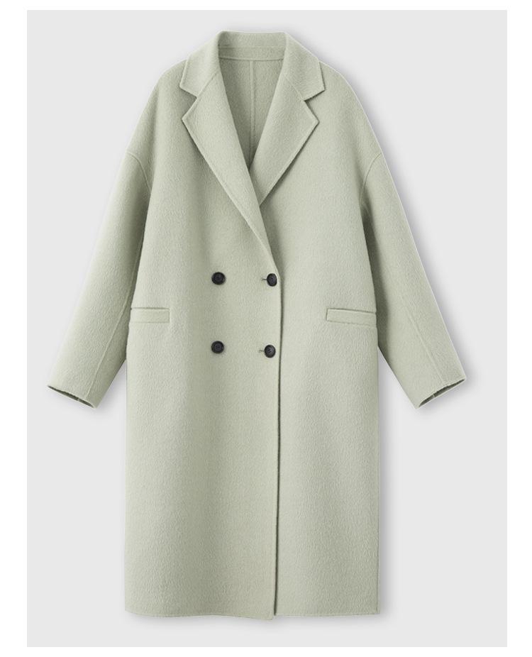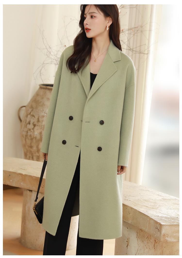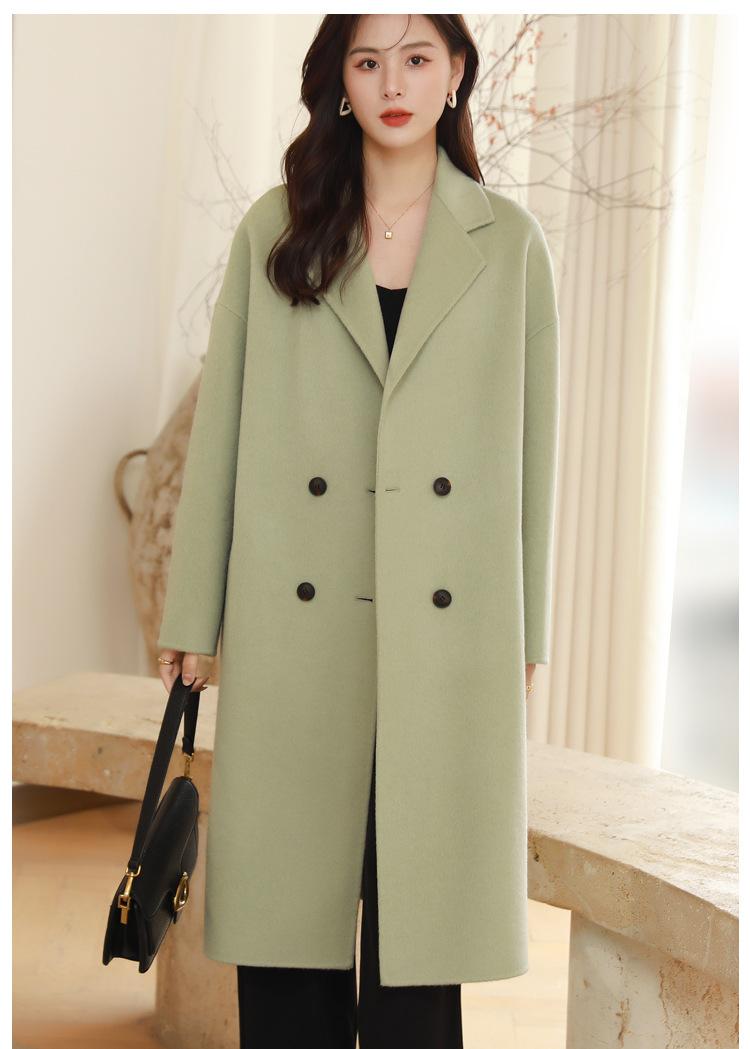 La silueta definida y el diseño cruzado del abrigo se combinan para crear un look sofisticado pero elegante.