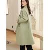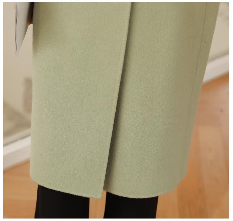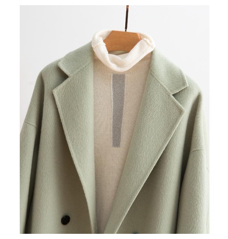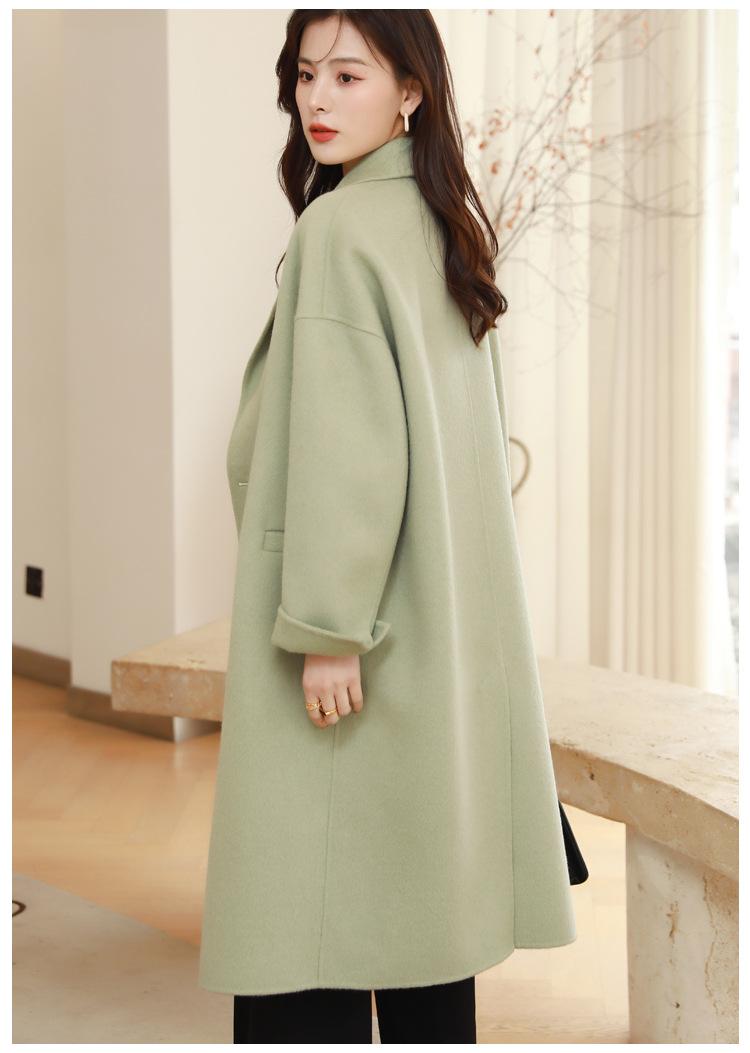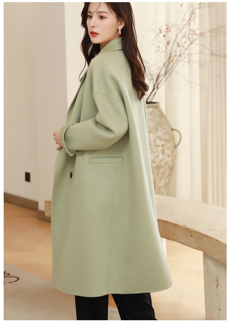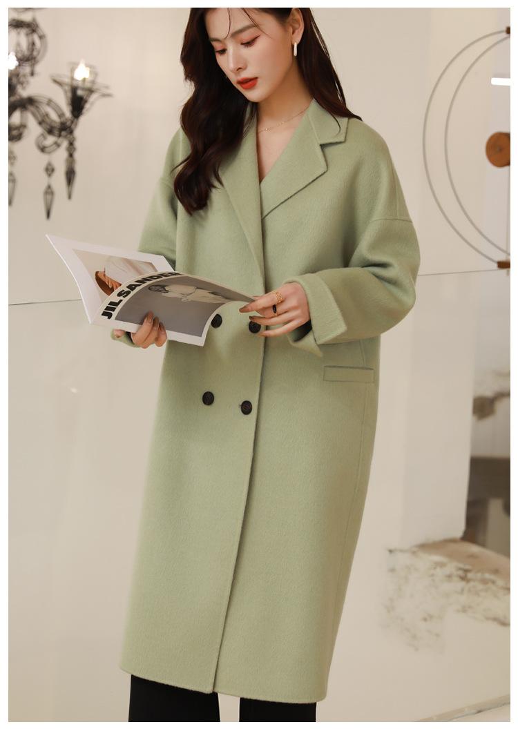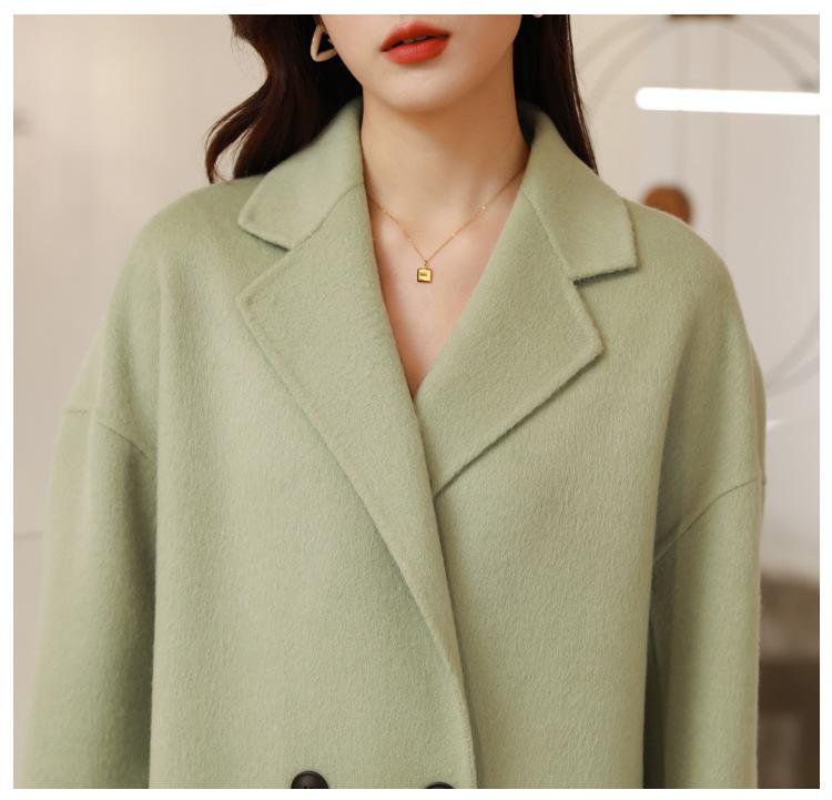 La silueta definida y el diseño cruzado del abrigo se combinan para crear un look sofisticado pero elegante.