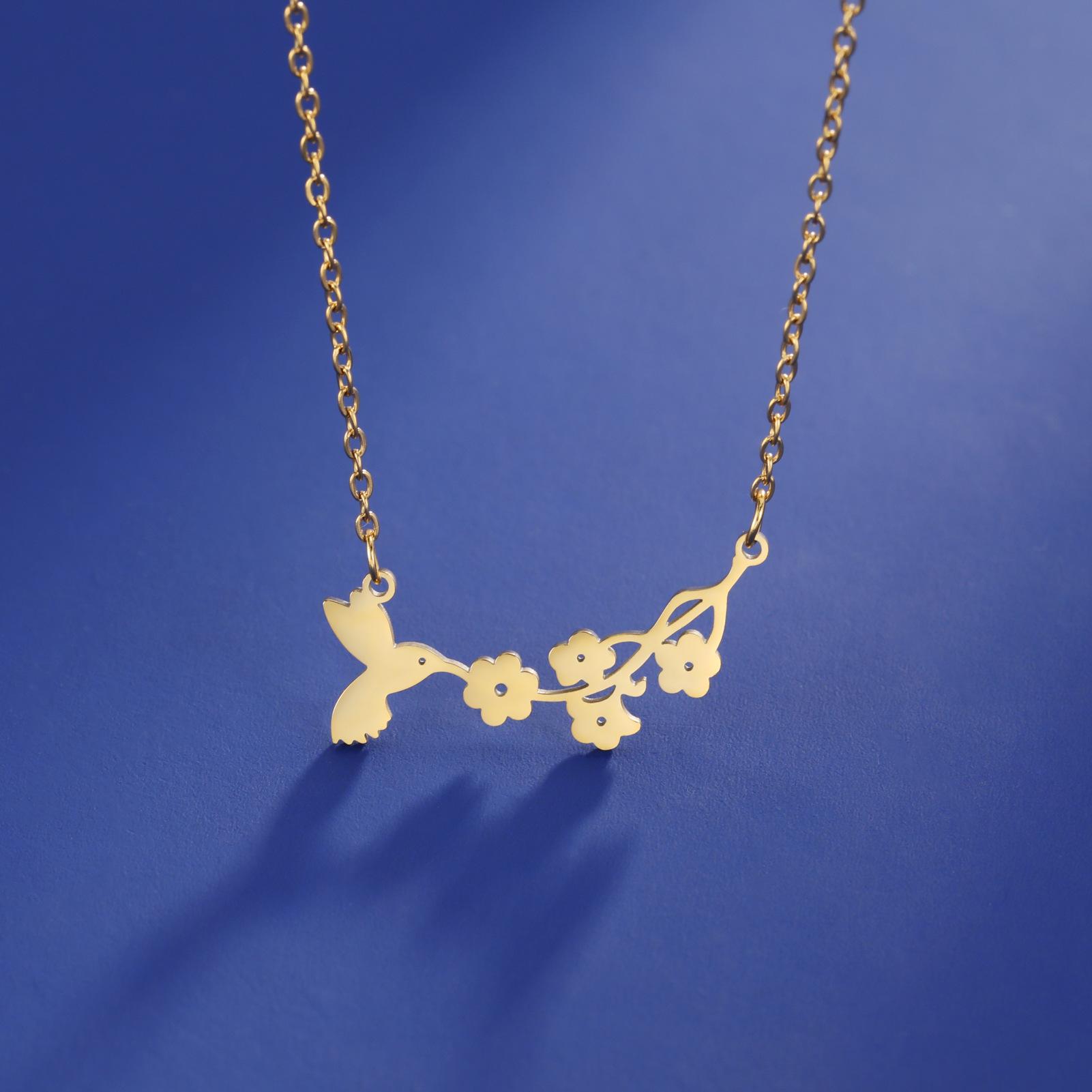 Collar de acero de titanio con corte transfronterizo, colgante de flor y pájaro, cadena de clavícula, joyería de moda bohemia, regalo de cumpleaños