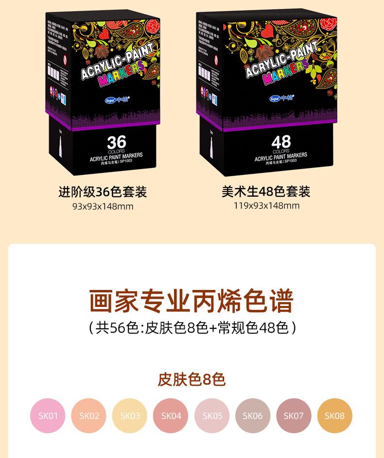 Rotulador acrílico Zhongbai SP1002, juego de 56 colores, rotulador de pintura a base de agua para grafiti de cerámica pintado a mano, bricolaje