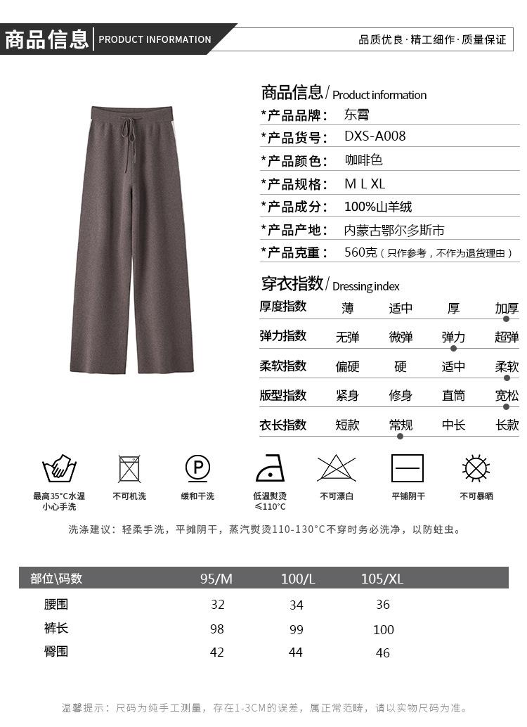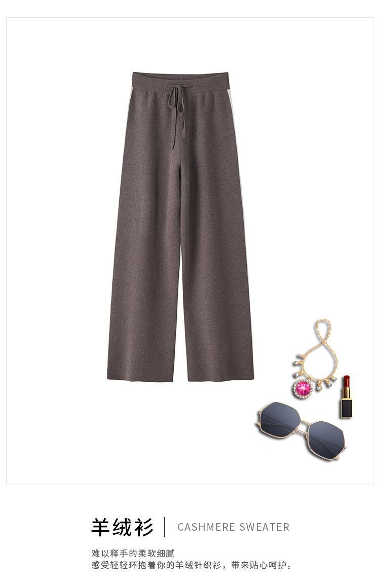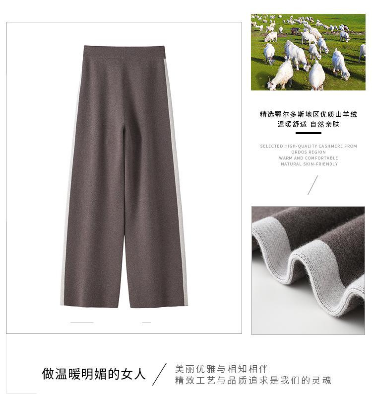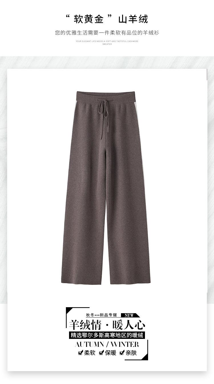 Pantalones de punto de cachemira pura para mujer, pantalones anchos de nueva moda, pantalones gruesos de cintura alta, pantalones casuales rectos casuales, pantalones adelgazantes de fregona