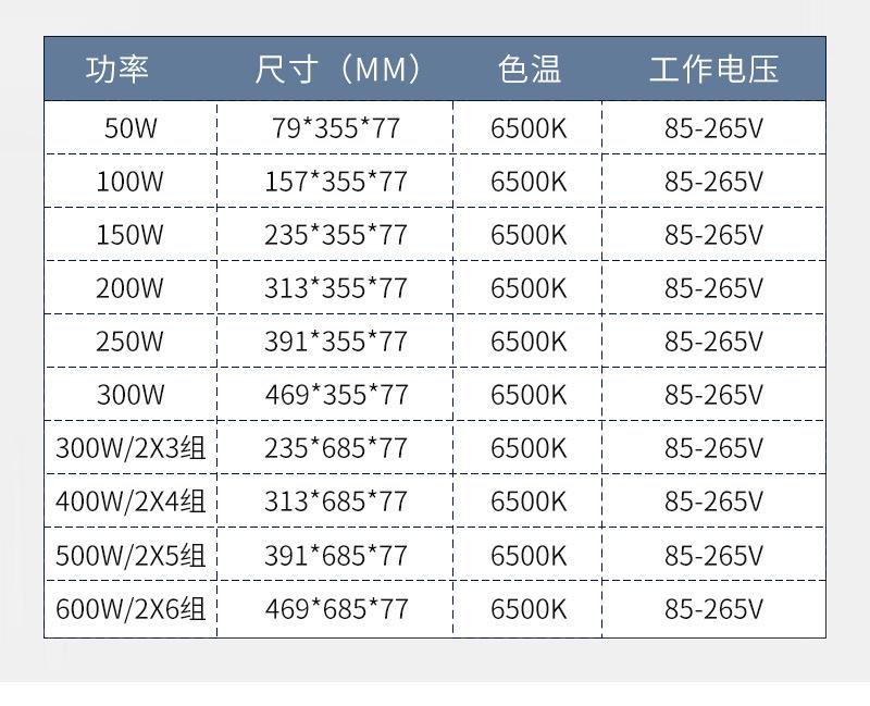 50w, 100w, 150w, 200w, 250w, 300w, 400w, 500w, 600w