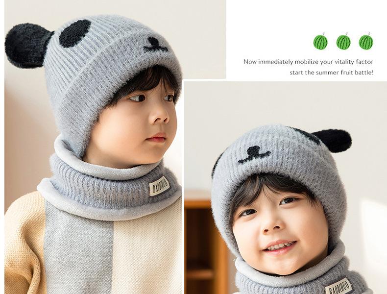 2128 Nuevos Sombreros de Dibujos Animados para Niños para Hombre y Mujer Gorro Pulóver para Bebé Invierno Conjunto de Bufanda Protección para las Orejas Sombrero de Lana Tejido