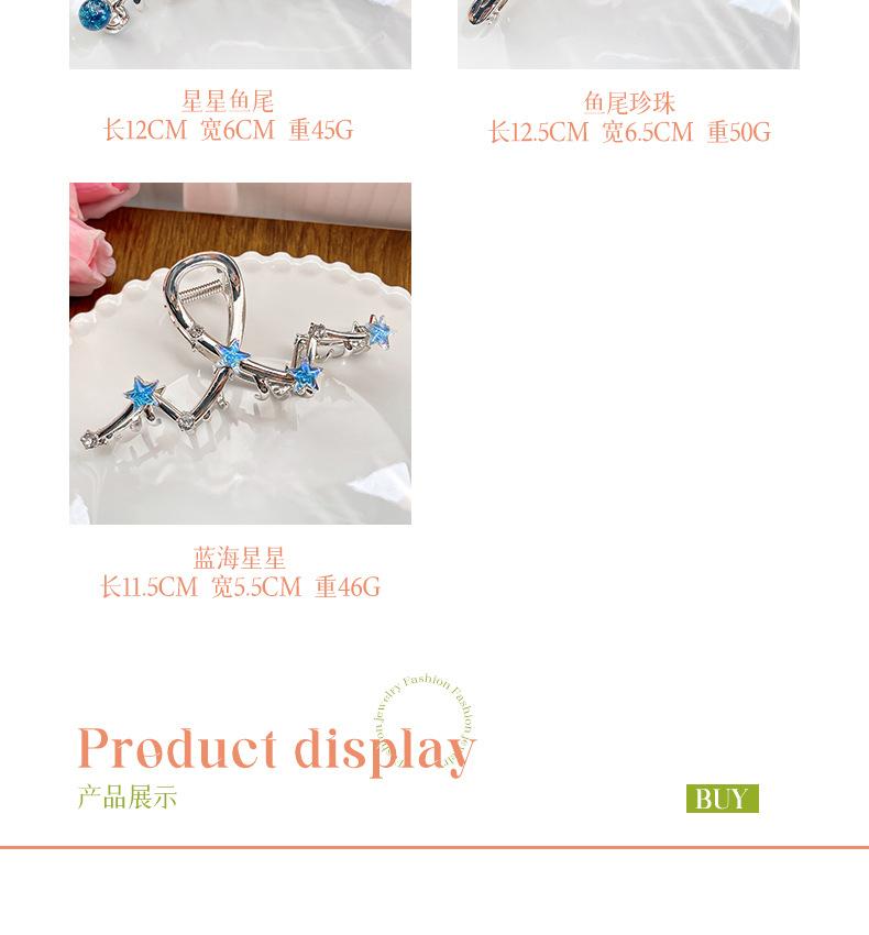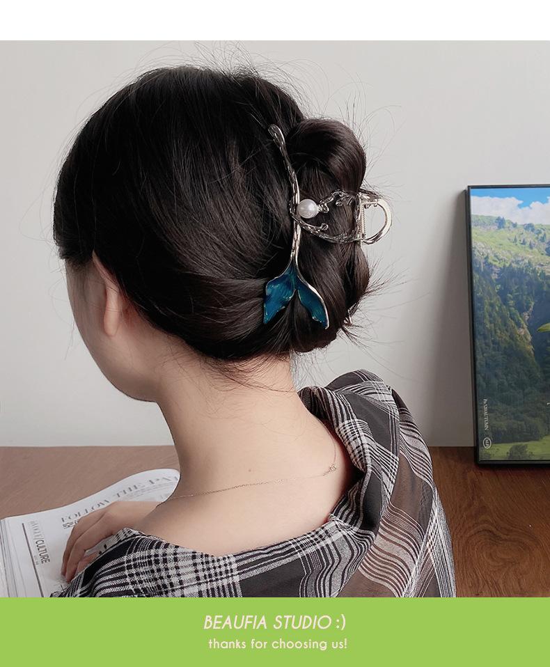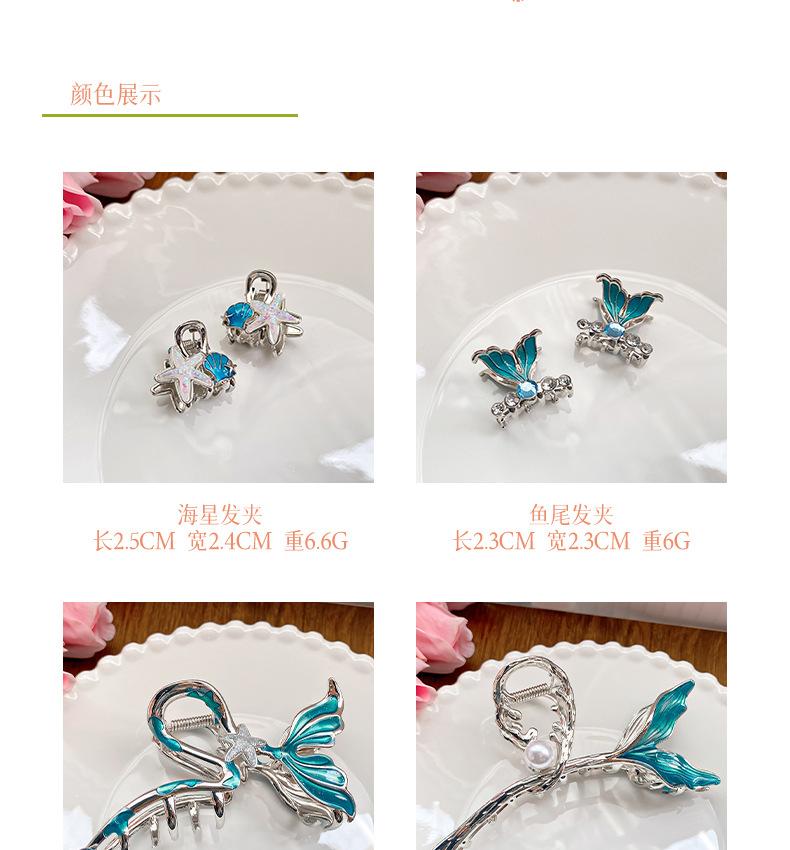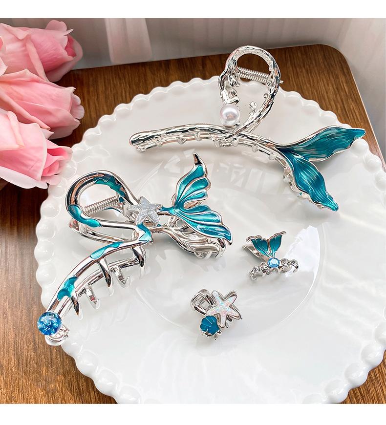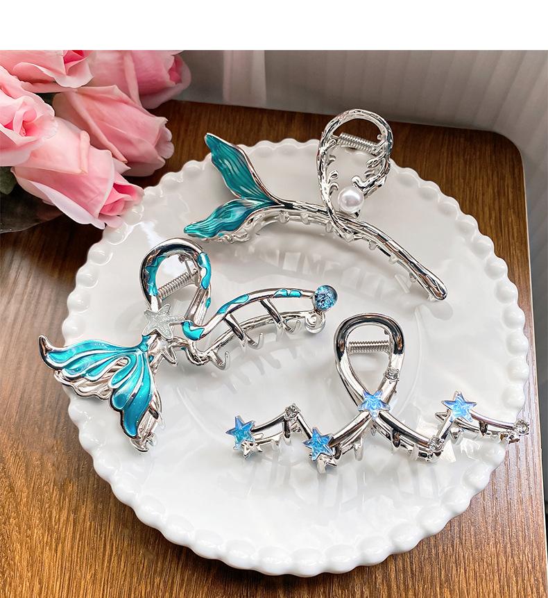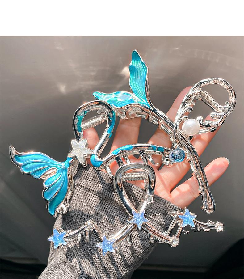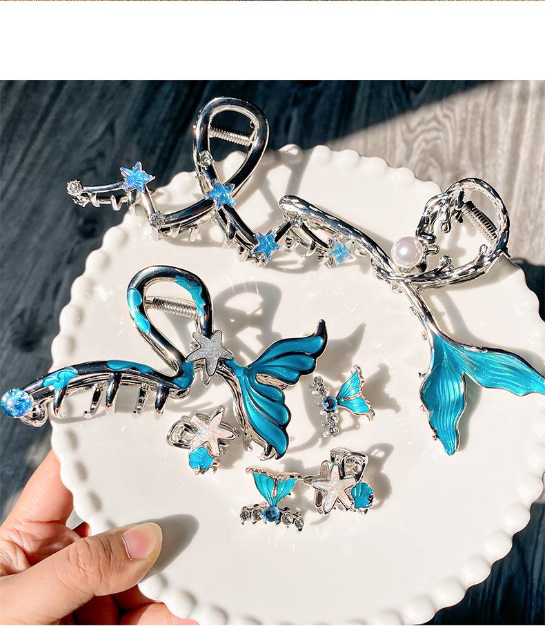 Pinza Metálica Azul Cola de Pez Grande Elegante Hermosa Estrella de Mar Horquilla Disco para el Cabello Parte Trasera de la Cabeza Pinza de Tiburón Accesorios para el Cabello Sombrerería