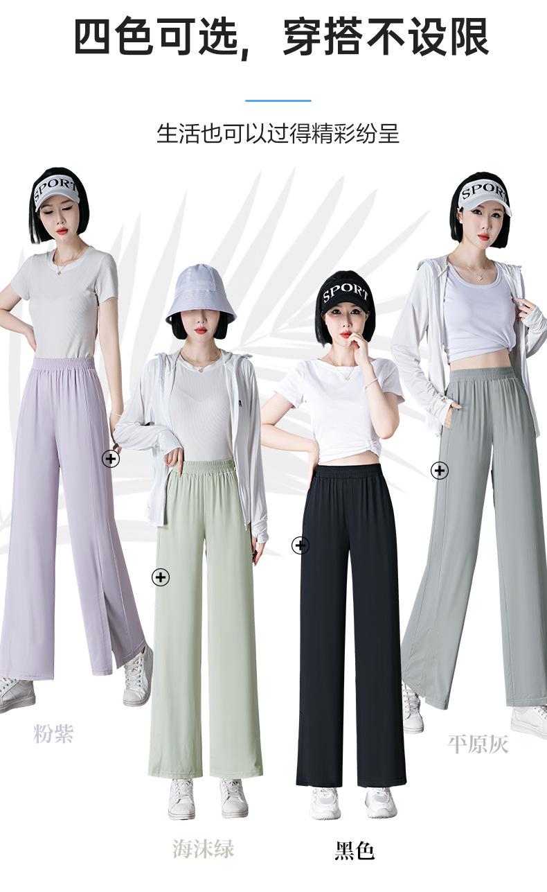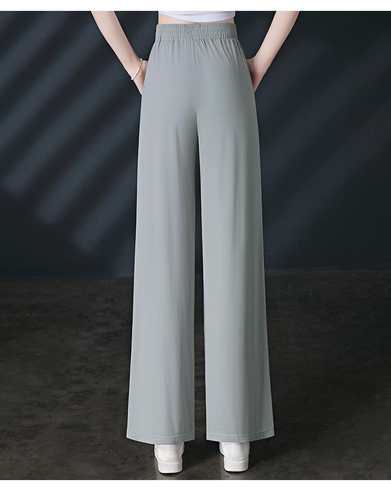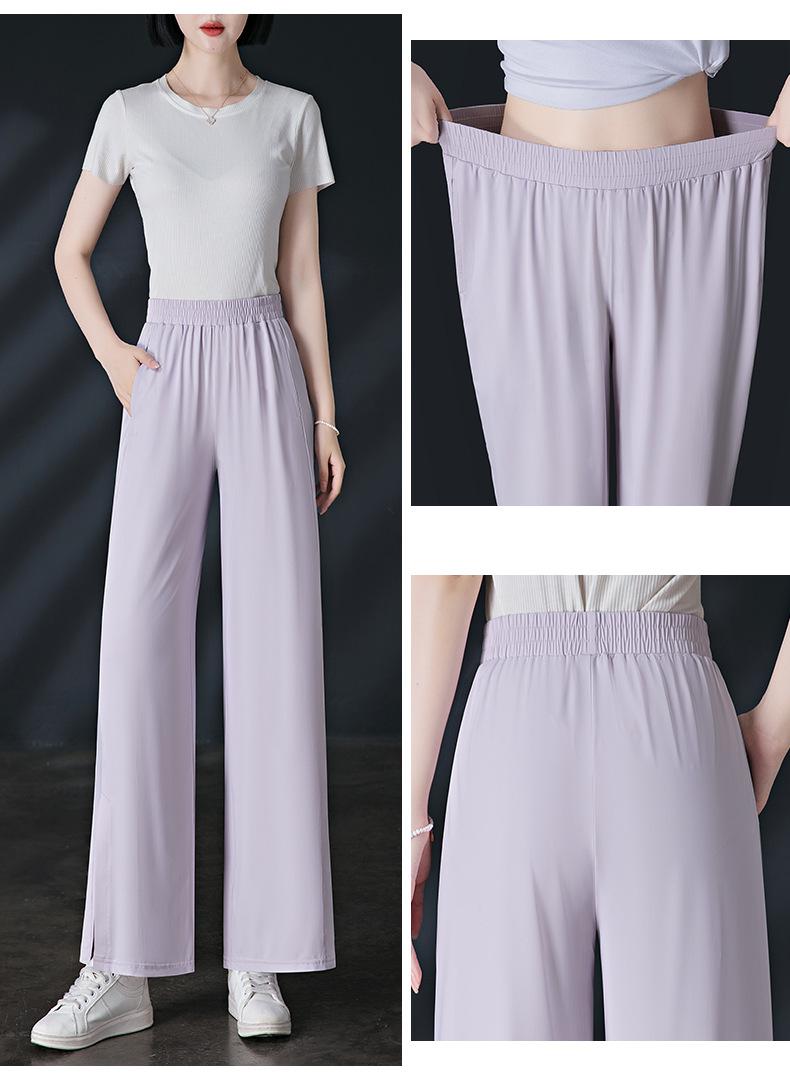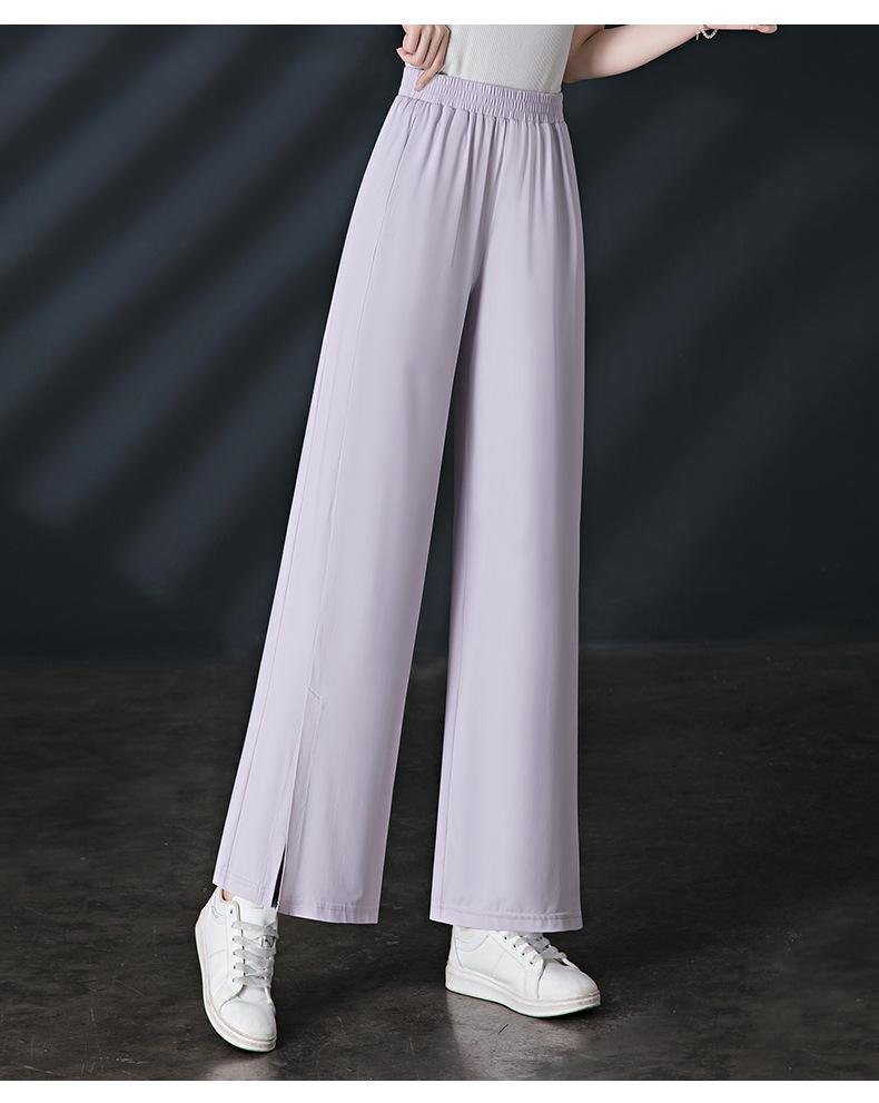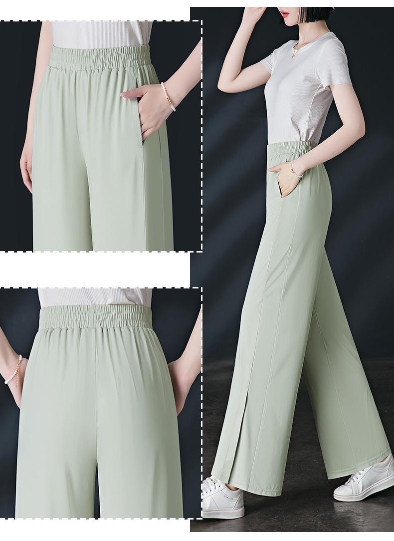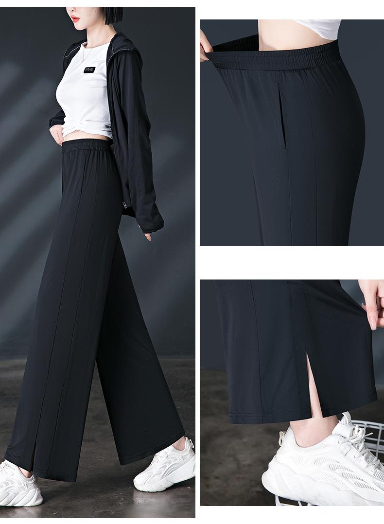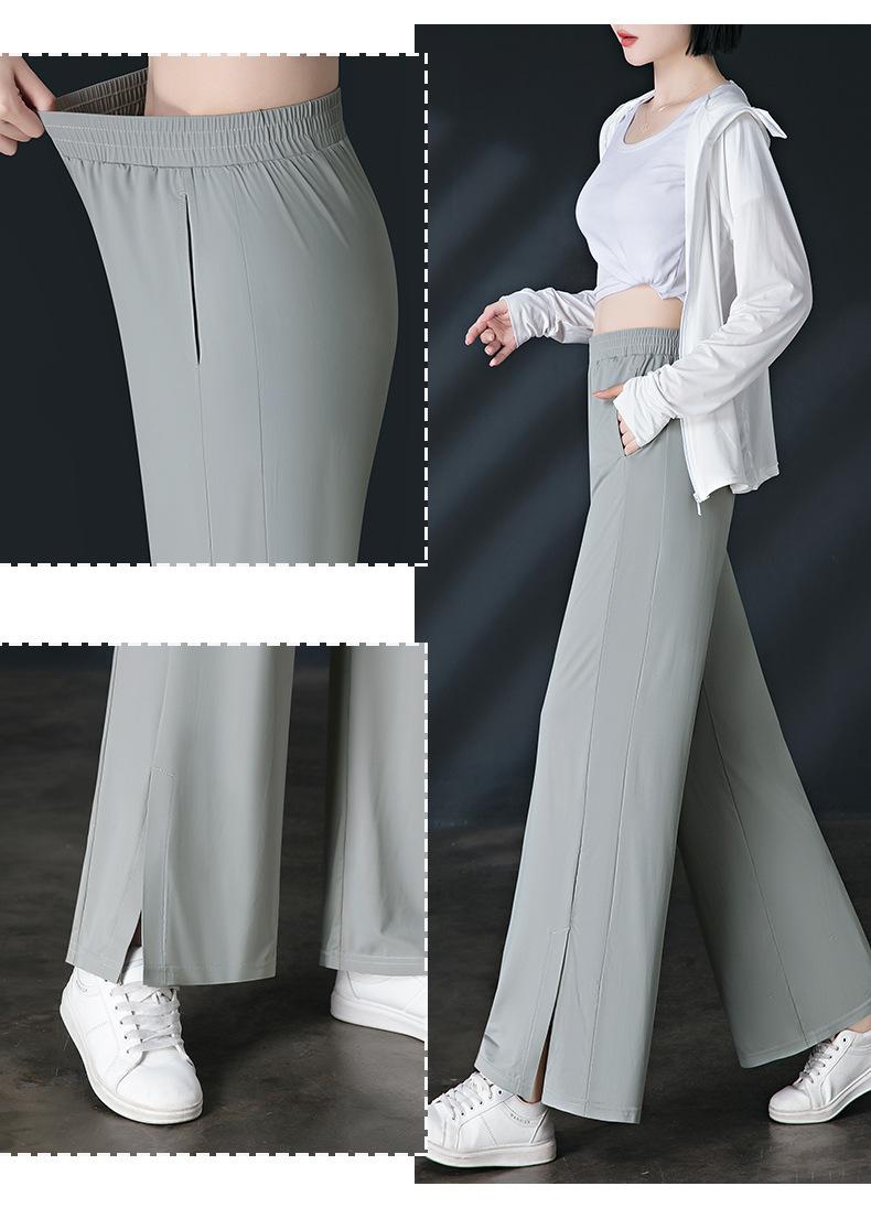 Pantalones de Protección Solar para Mujer Verano Delgados 2025 Nuevos Pantalones de Seda de Hielo Elásticos Cintura Alta Drapeados Abertura Sueltos Frescos Pierna Ancha