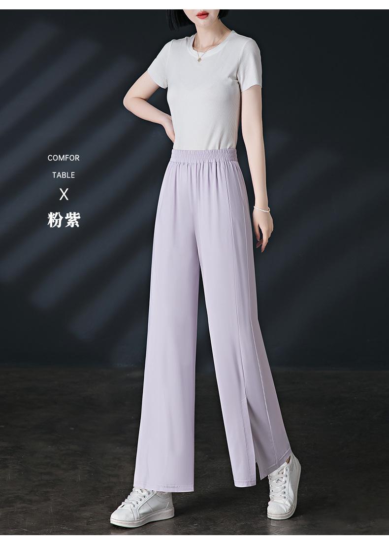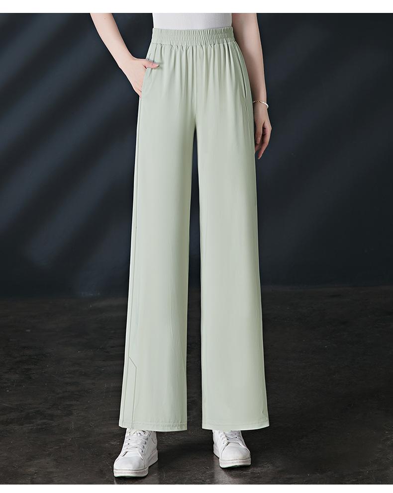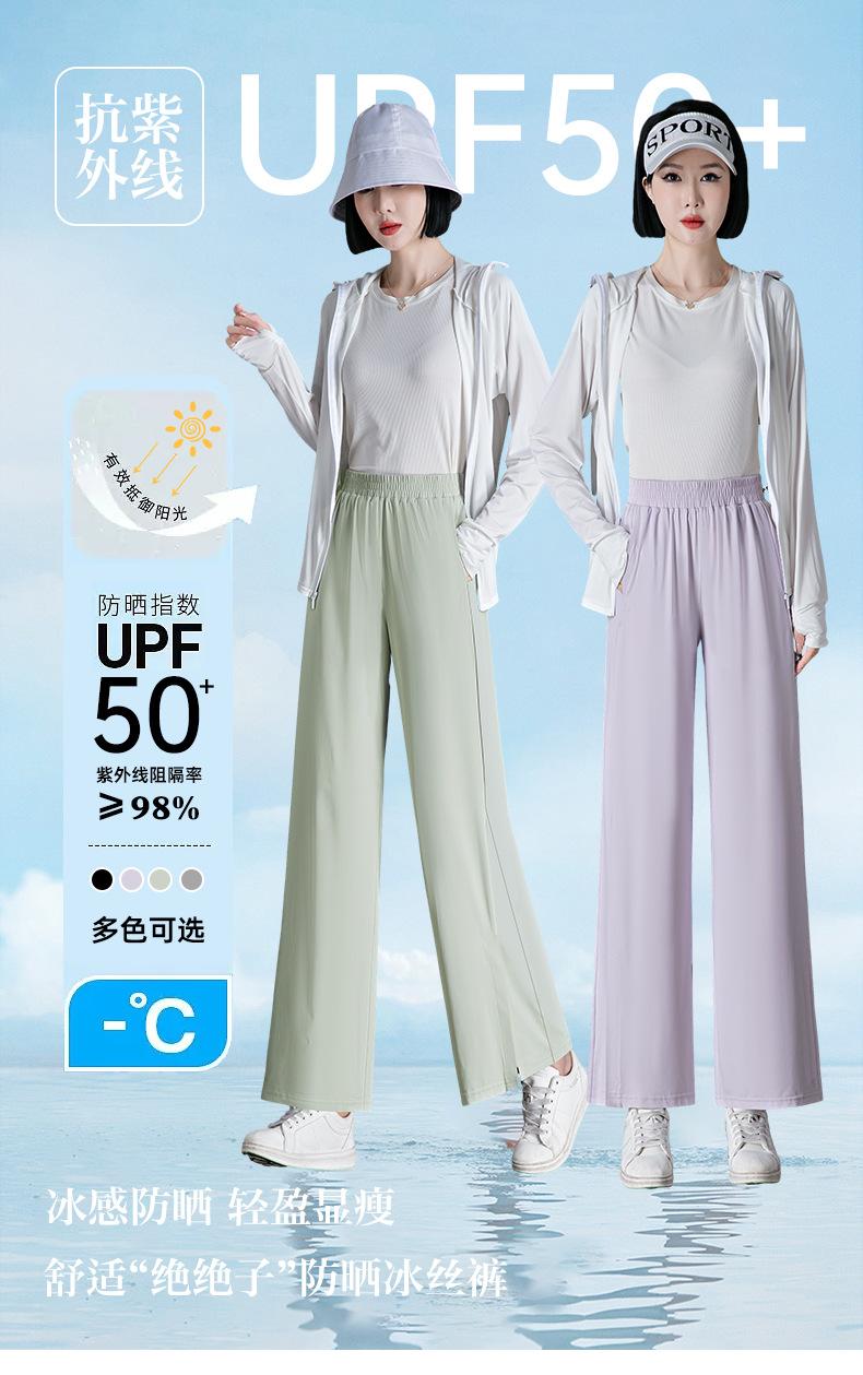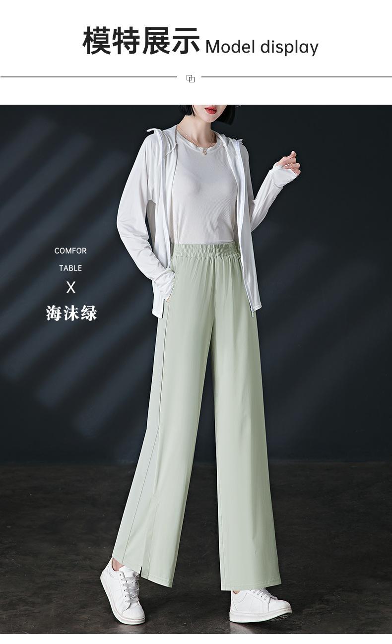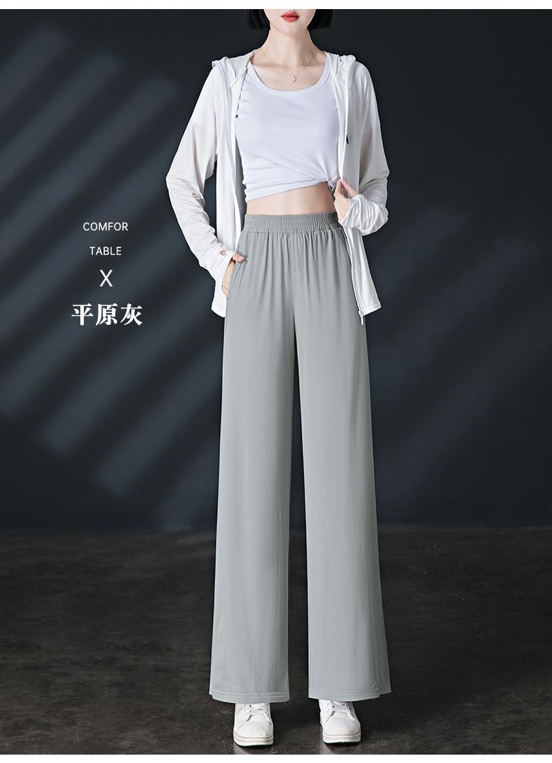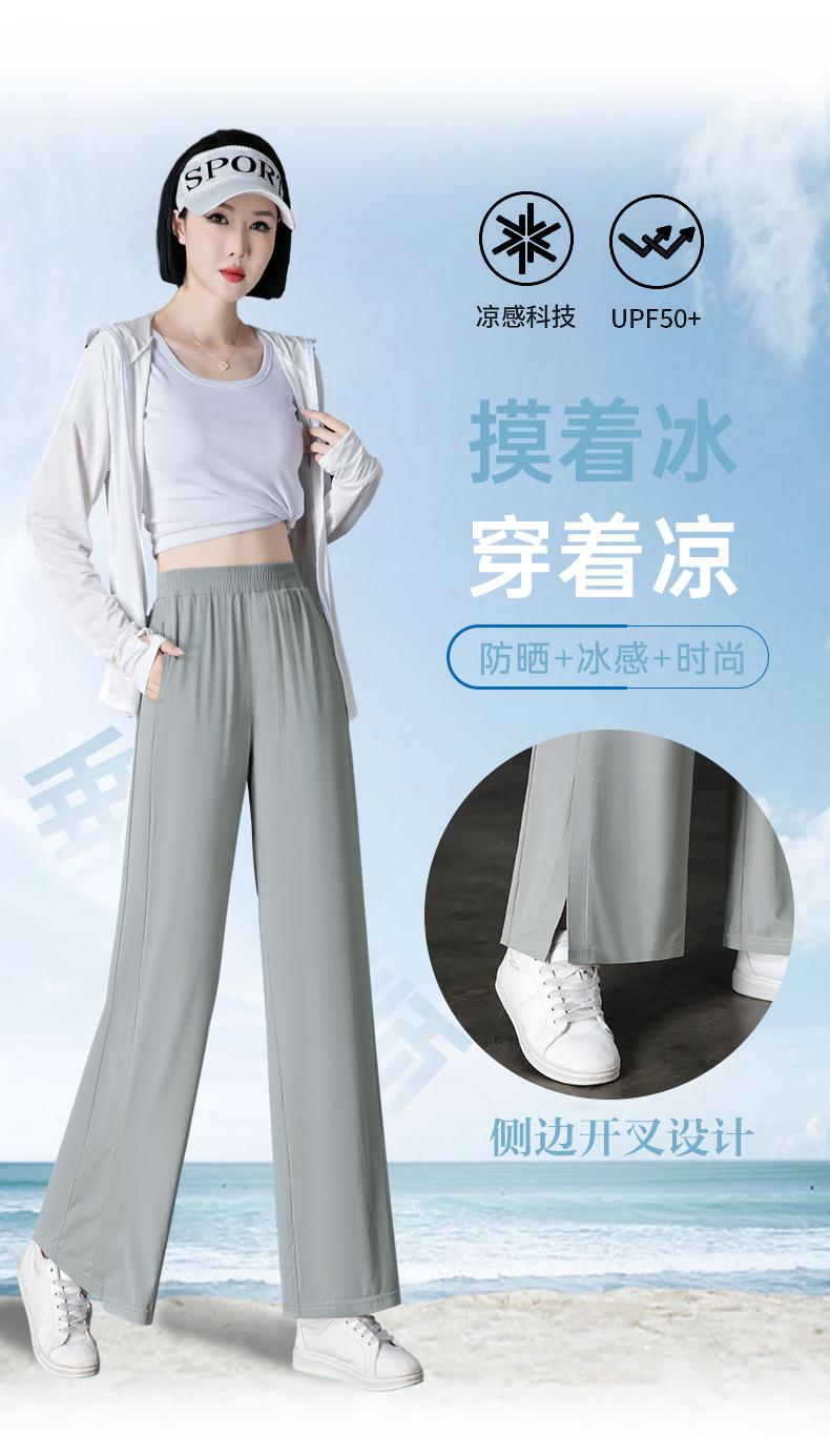 Pantalones de Protección Solar para Mujer Verano Delgados 2025 Nuevos Pantalones de Seda de Hielo Elásticos Cintura Alta Drapeados Abertura Sueltos Frescos Pierna Ancha