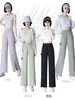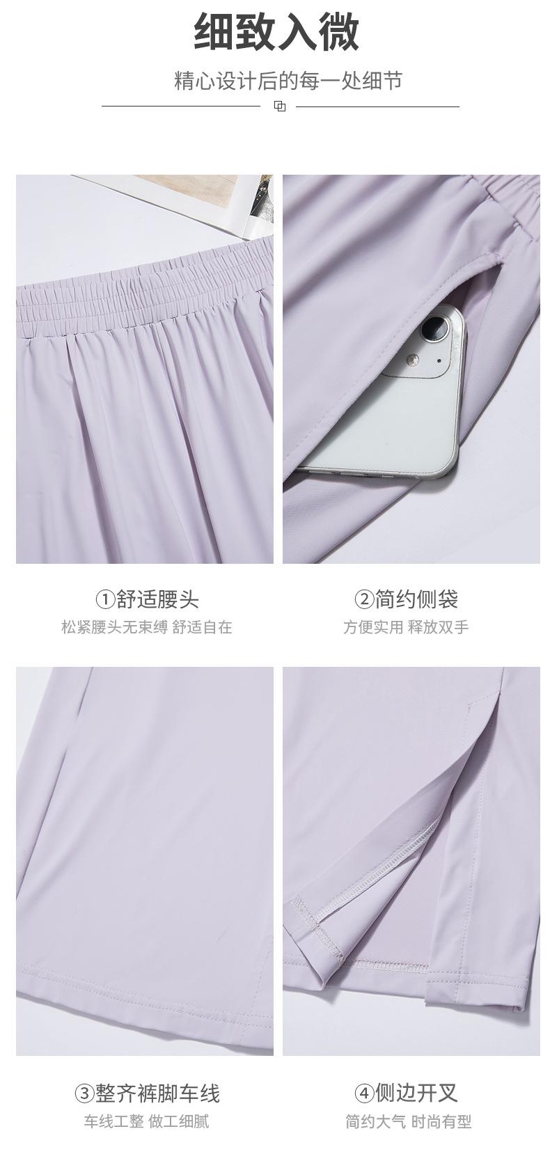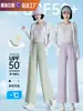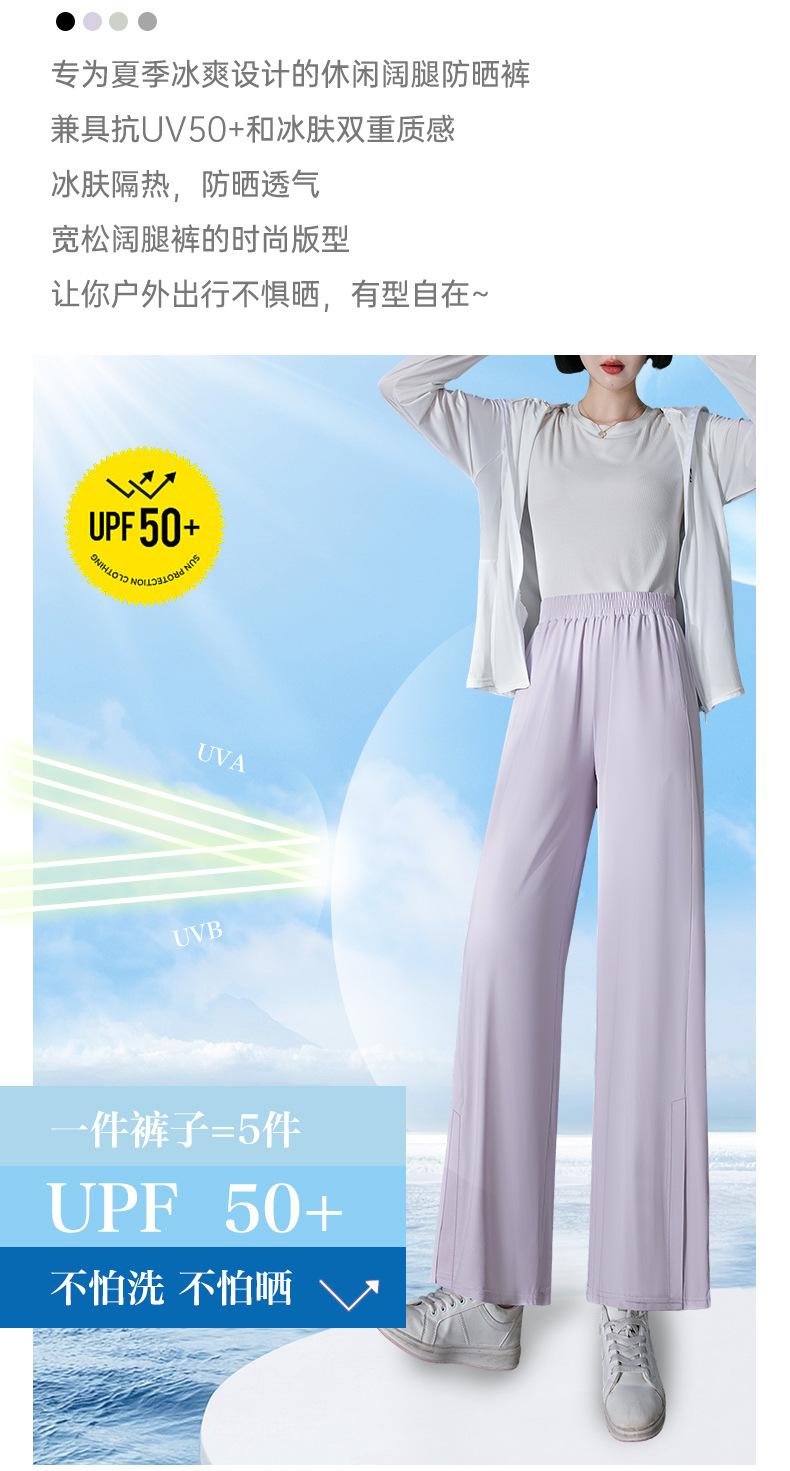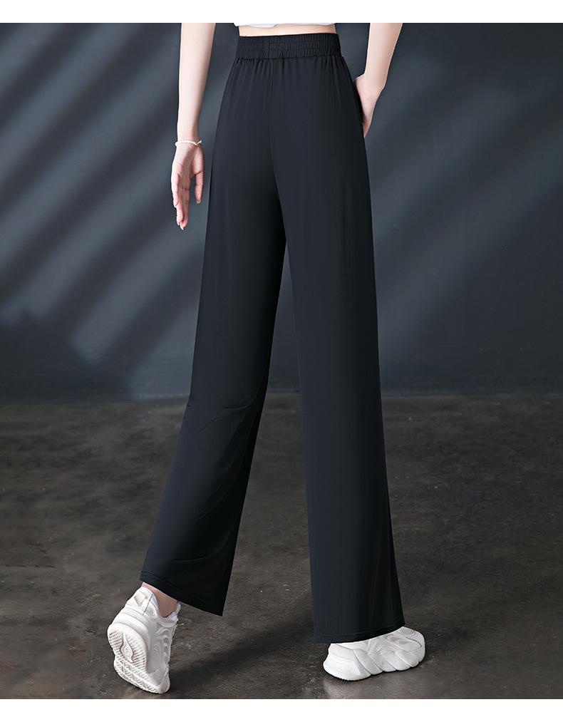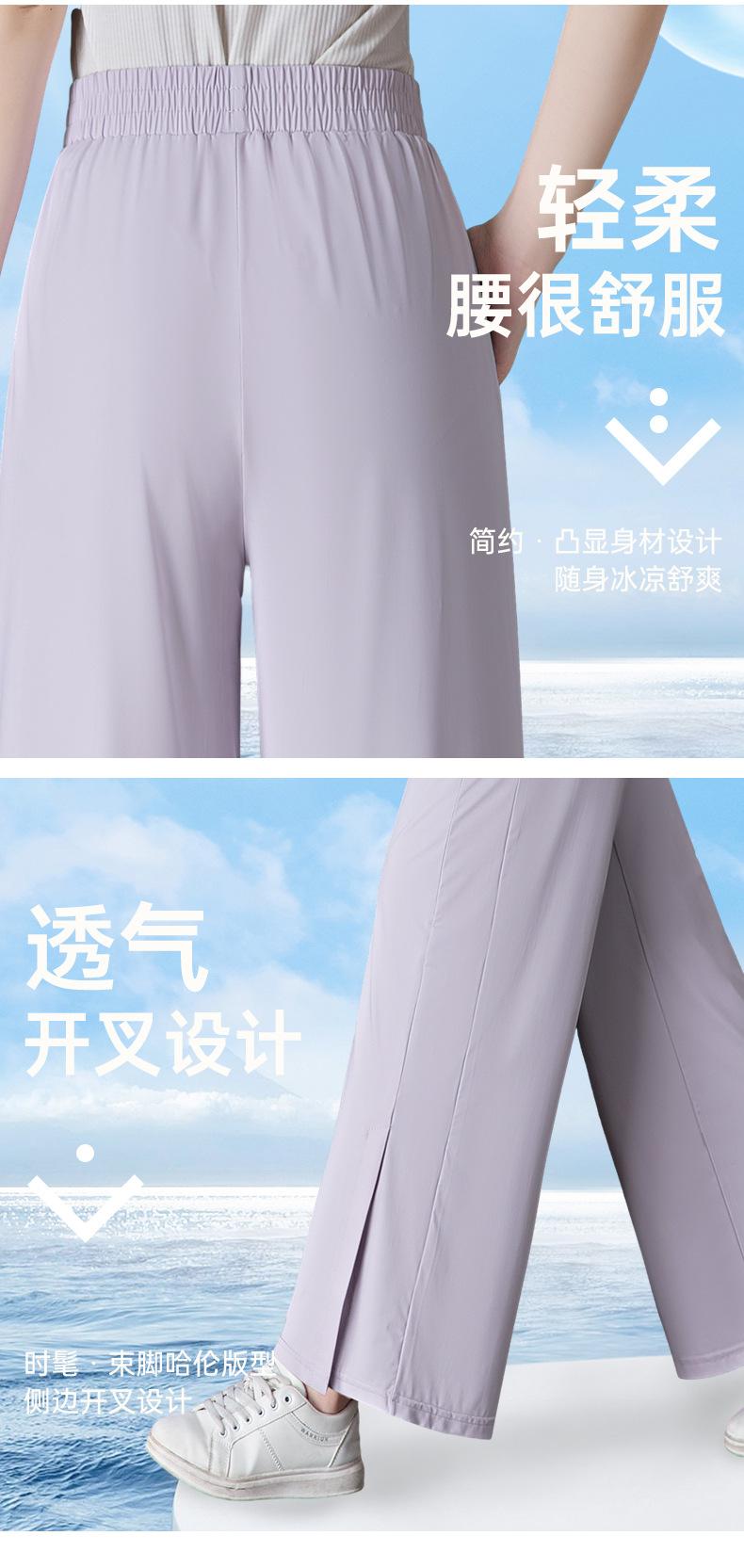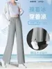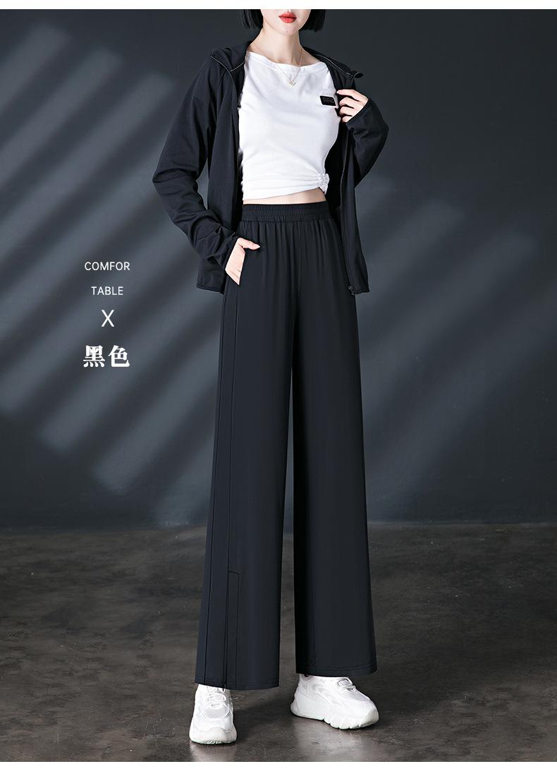 Pantalones de Protección Solar para Mujer Verano Delgados 2025 Nuevos Pantalones de Seda de Hielo Elásticos Cintura Alta Drapeados Abertura Sueltos Frescos Pierna Ancha