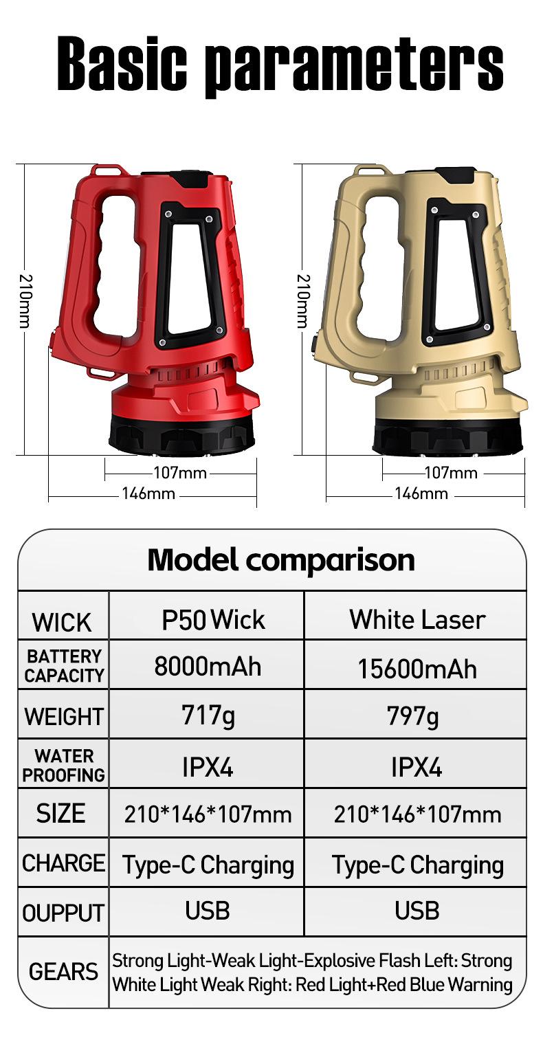 capacidad de la batería:P50-8000mAh, Láser blanco-15600mAh