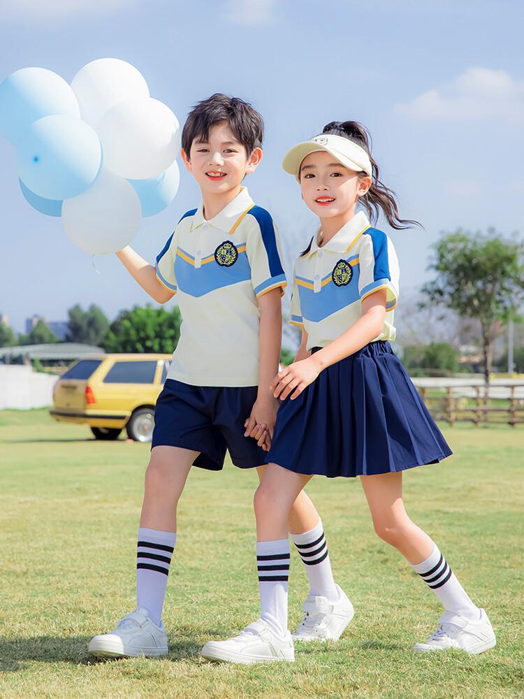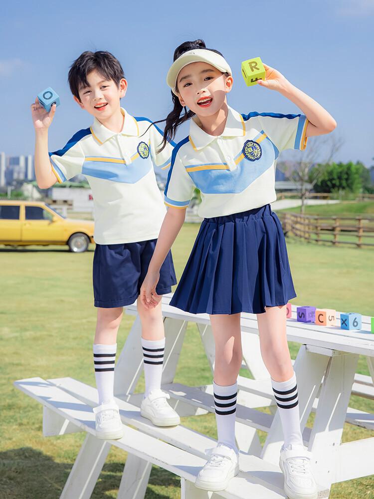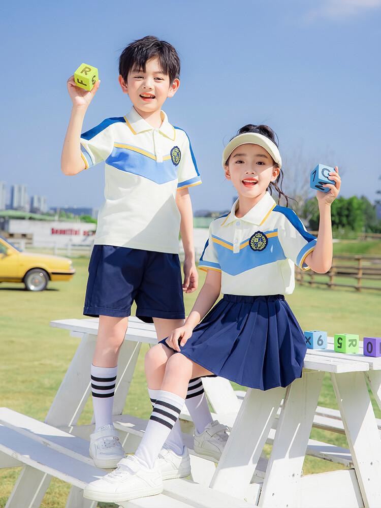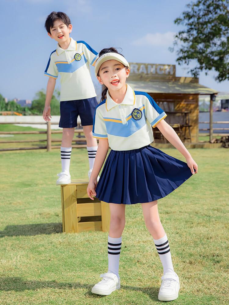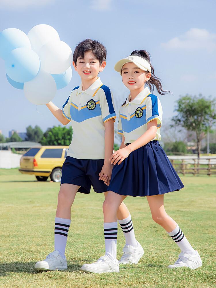 Ropa de verano para jardín de infantes, ropa deportiva de algodón británico, traje para la víspera de los niños, actuación, graduación, fototraje, uniforme de escuela primaria.