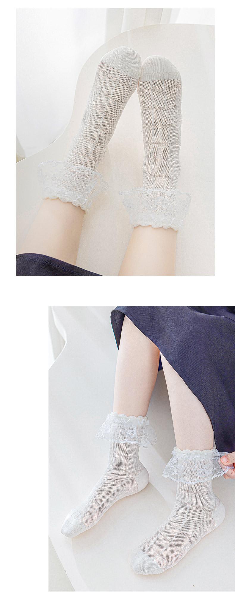 Calcetines Finos de Verano para Niñas Calcetines de Malla Transpirables de Princesa Lolita para Niños Calcetines de Algodón con Encaje sin Costuras para Niñas Venta al por Mayor