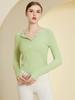Q Otoño e Invierno Camiseta Deportiva Ajustada con Cuello de Botón para Mujer, Moda de Cuerpo Delgado, Dobladillo Curvo, Top de Yoga de Manga Larga