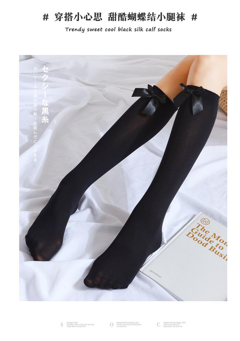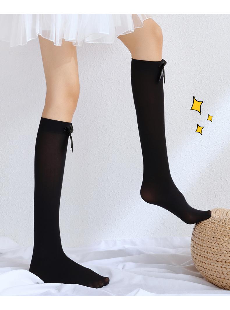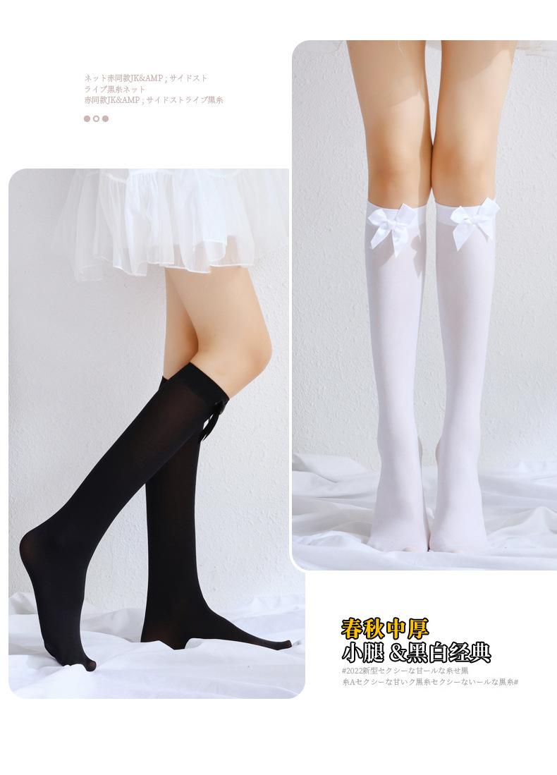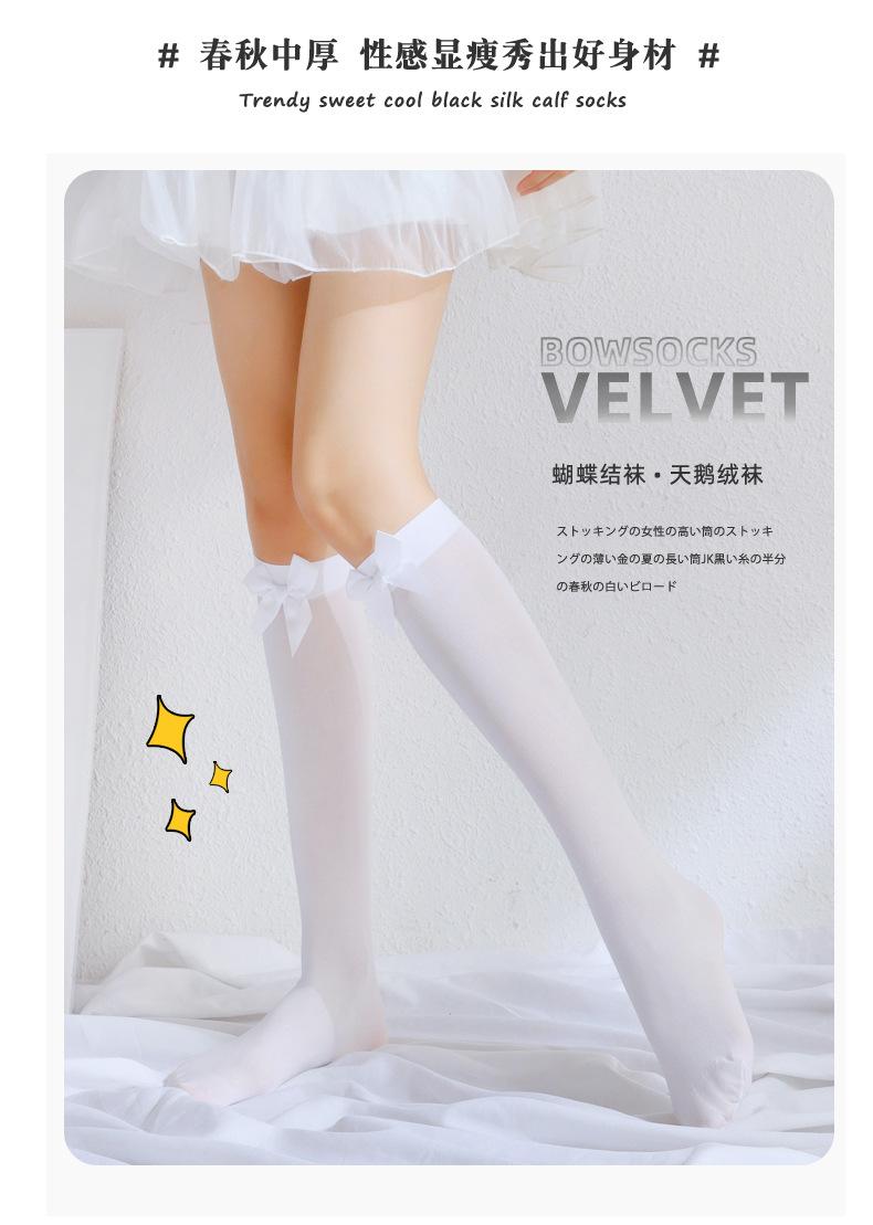 Calcetines JK japoneses primavera y verano medias finas para mujer negro y blanco terciopelo presión delgada lazo calcetines hasta la pantorrilla fabricantes mayoreo