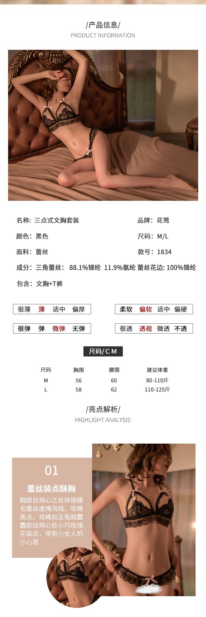 Lencería de encaje de nuevo estilo Hua Ying, lencería sexy de encaje europeo y americano para mujer, traje de tres puntos para mujer