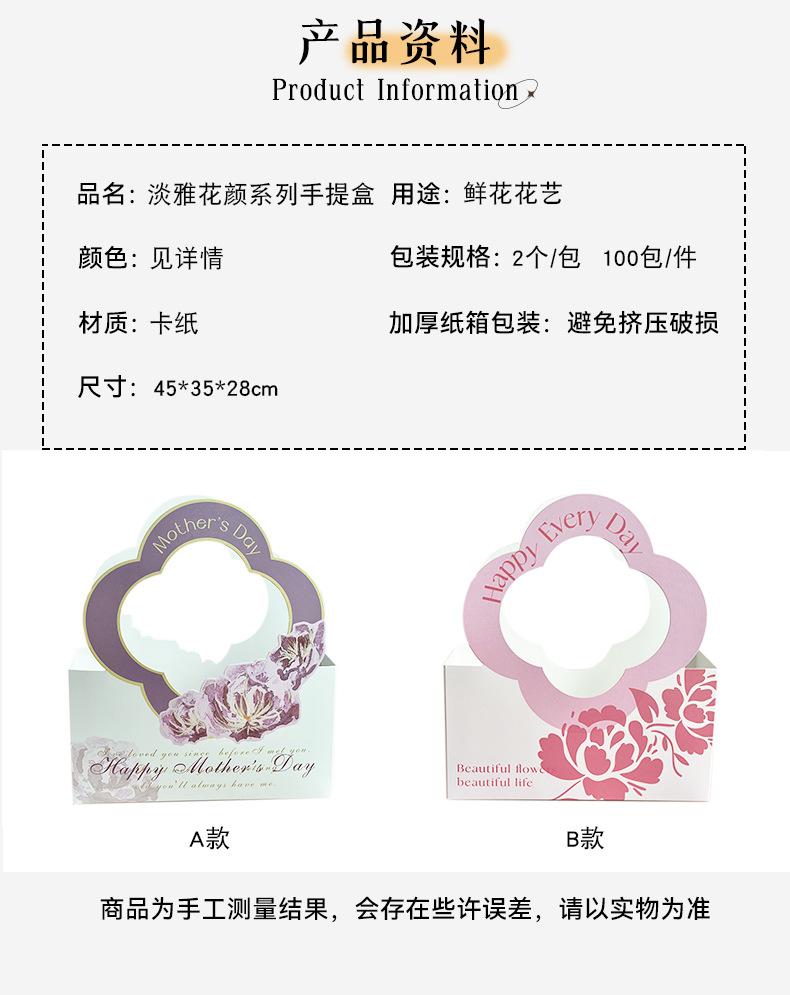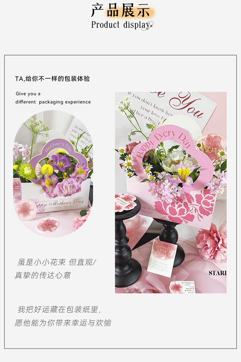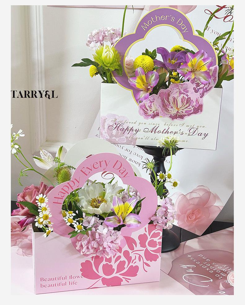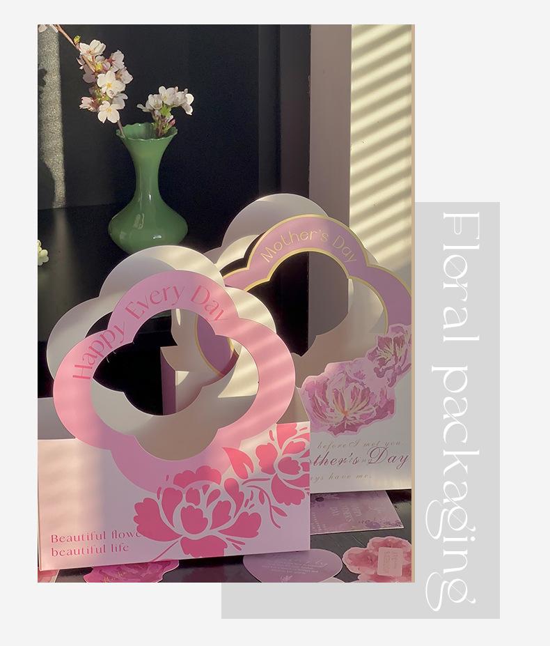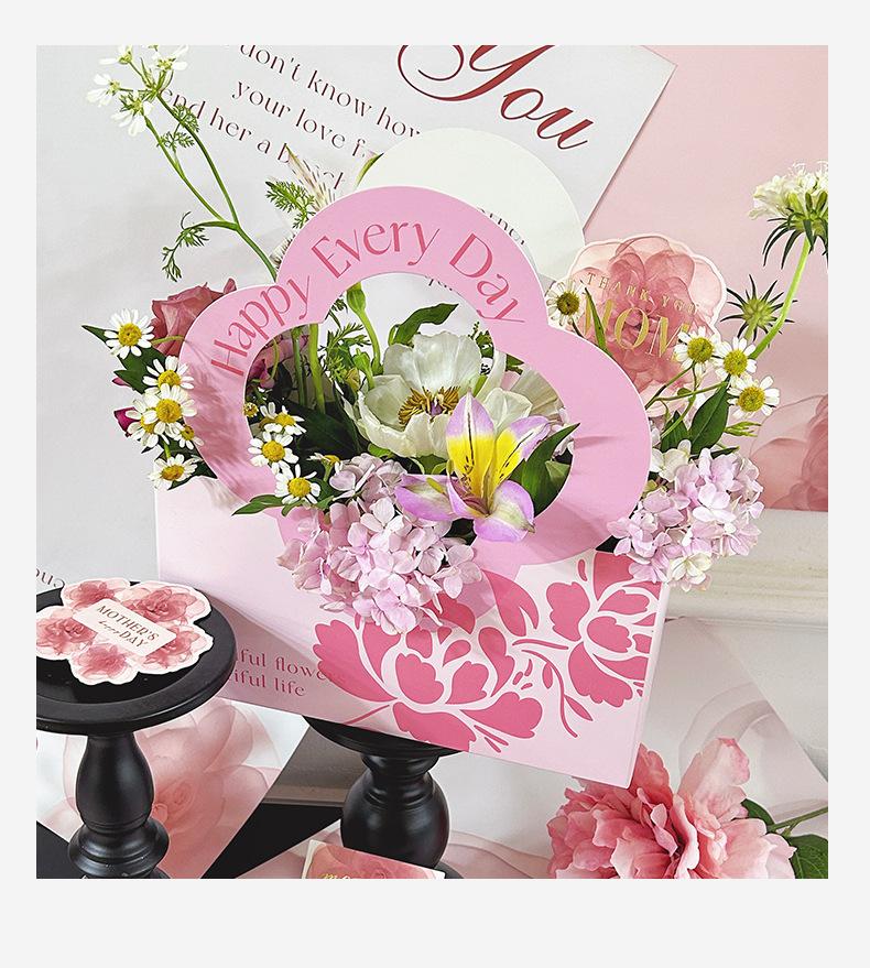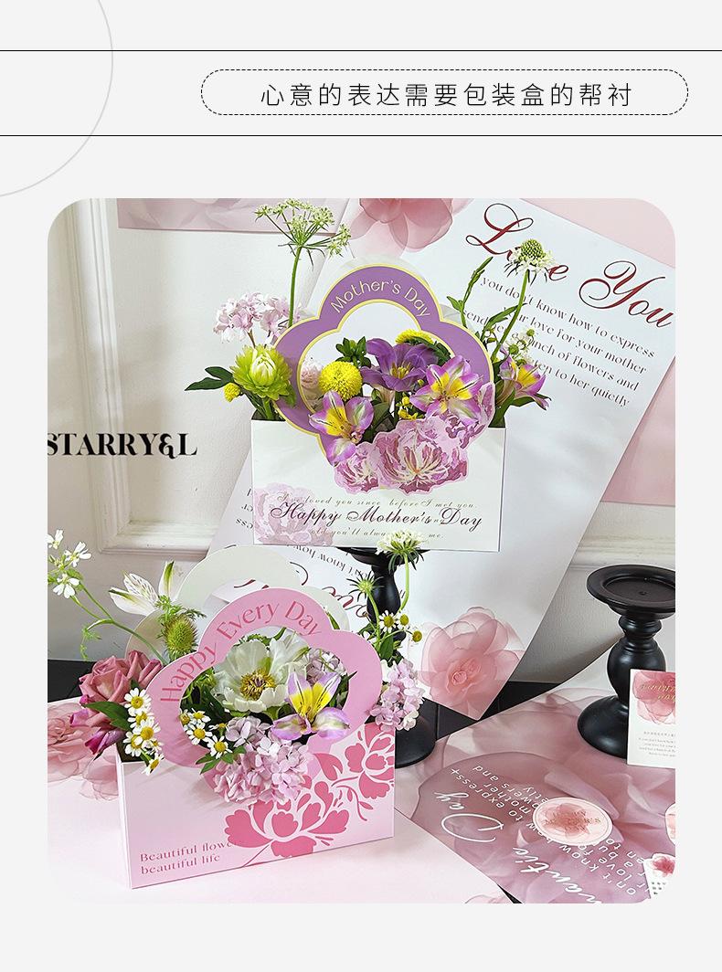 Sombra de Flor Día de la Madre Serie de Flores Elegantes Flor Caja Portátil de Flores Caja de Embalaje Caja Tridimensional Embalaje de Flores Arte Floral