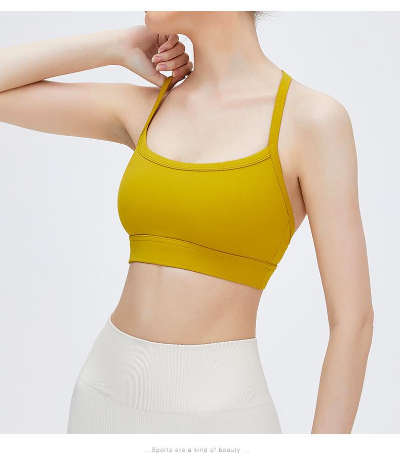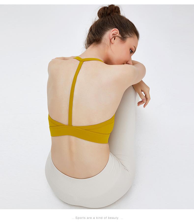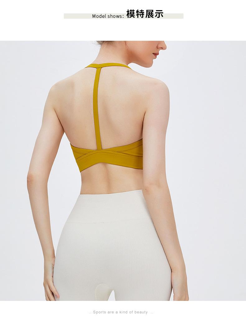 Chaleco de Yoga Desnudo Europeo y Americano para Mujer a Prueba de Golpes Push-up Ropa Interior Deportiva Cuello Halter Espalda Hermosa Secado Rápido Sujetador de Fitness