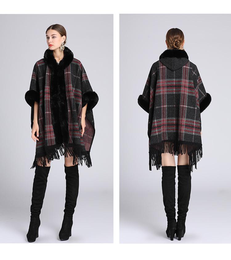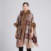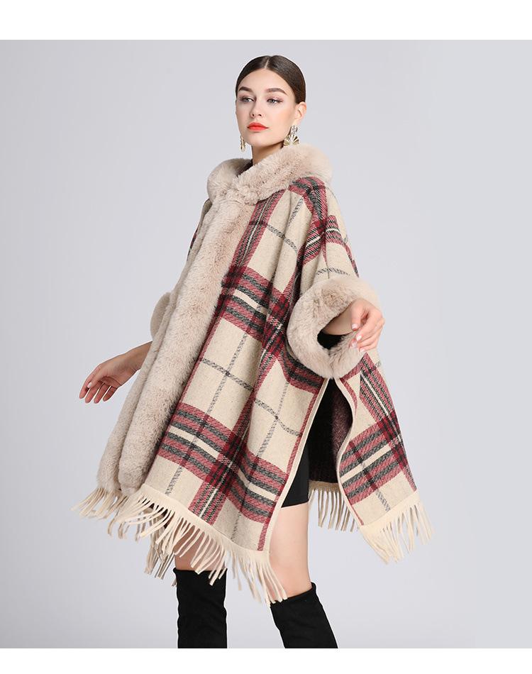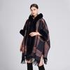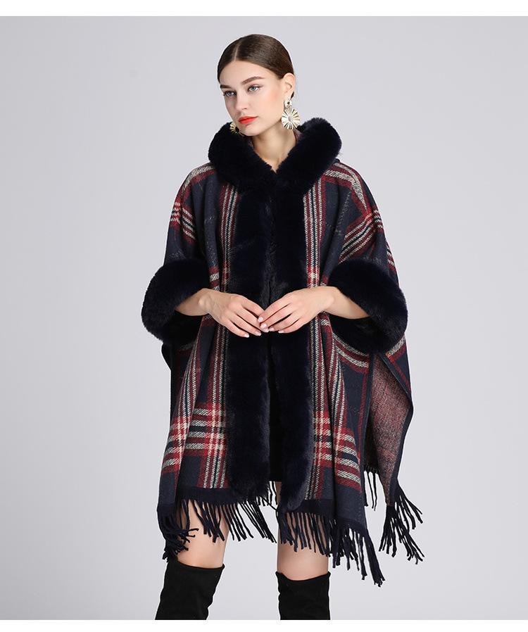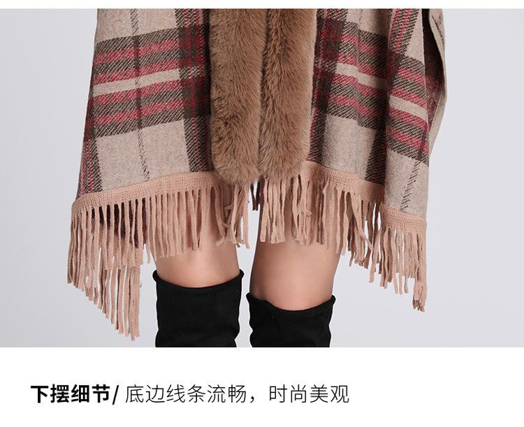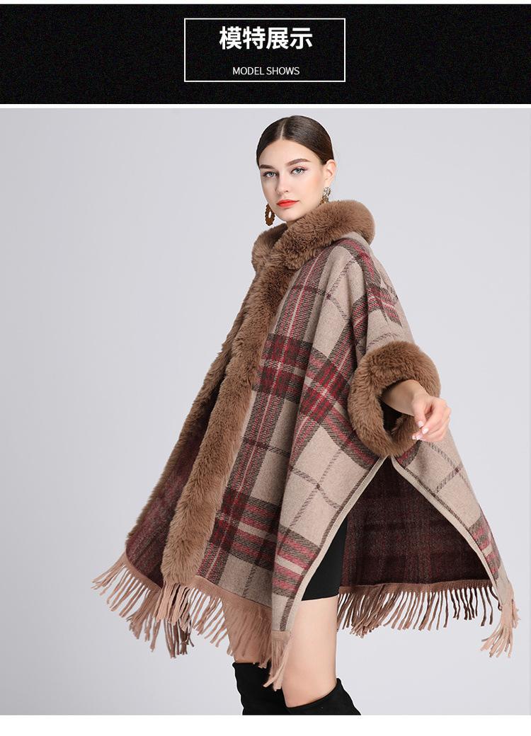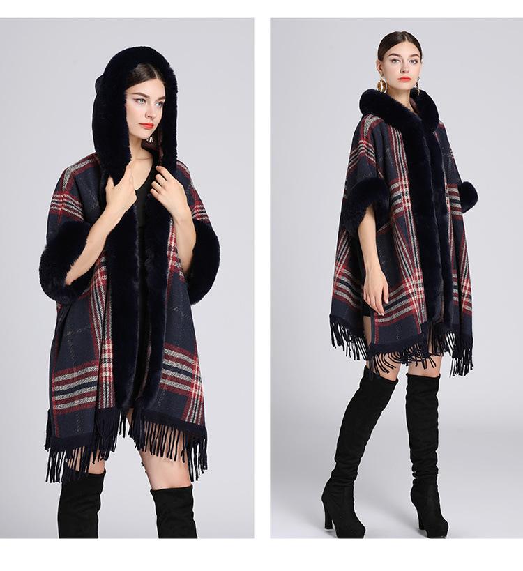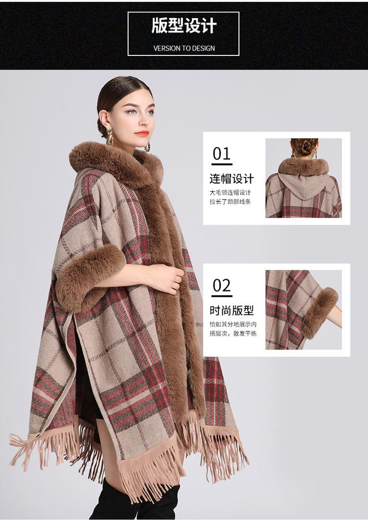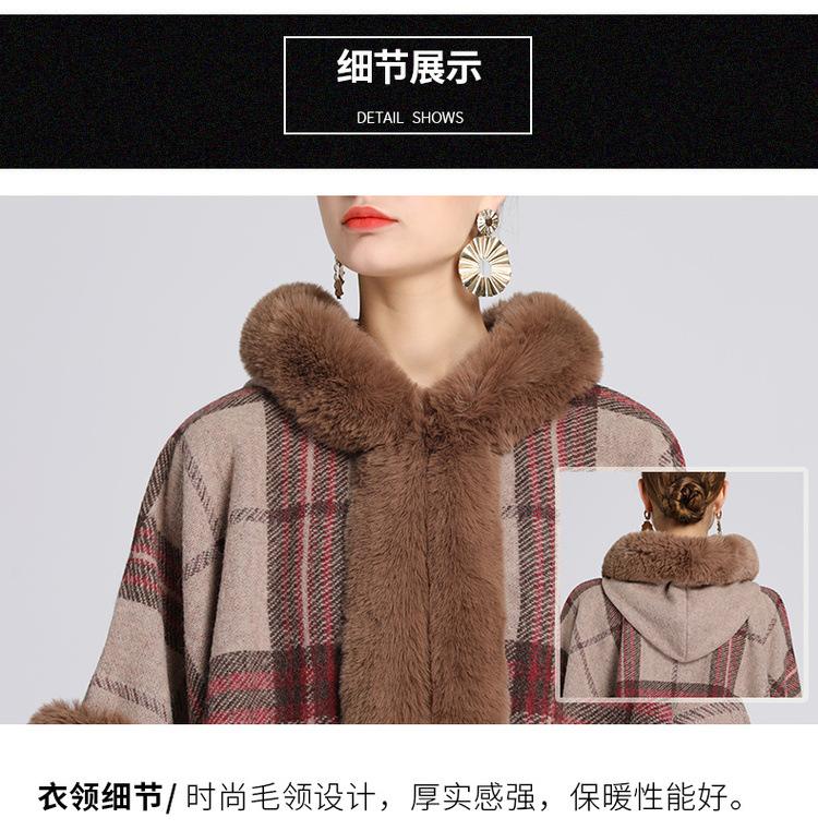 Poncho chal con capucha y cuello de piel de conejo Rex sintética para mujer, abrigo de lana, cárdigan de talla grande, suéter de lana, estilo europeo y americano, otoño e invierno, nuevo