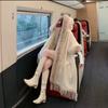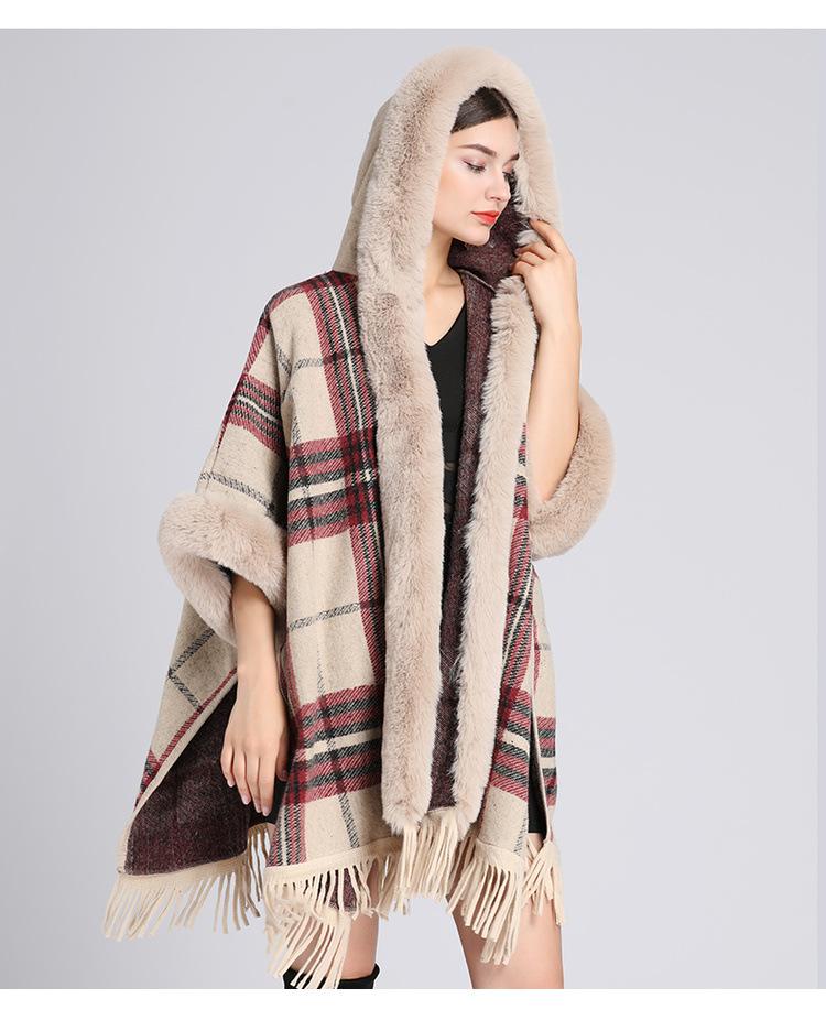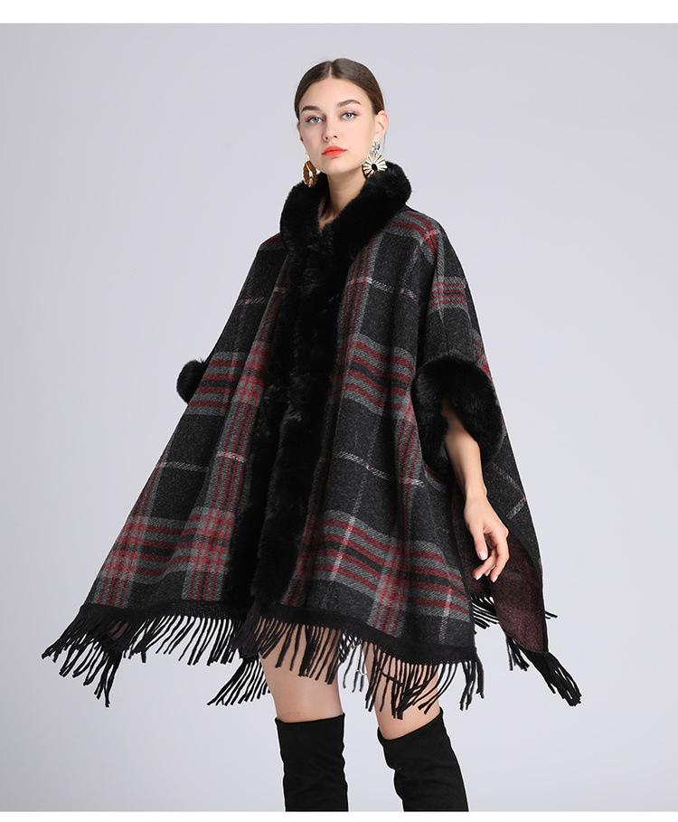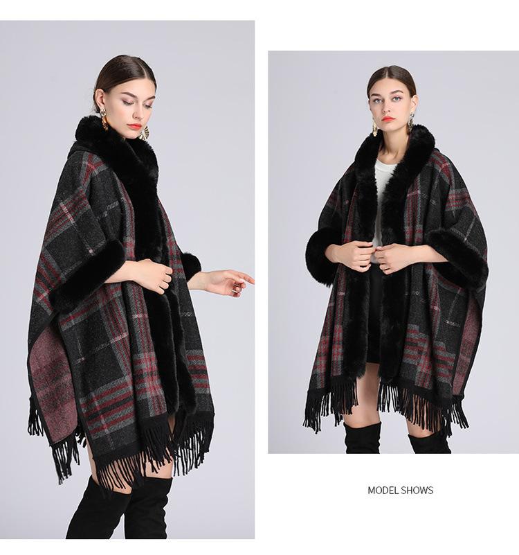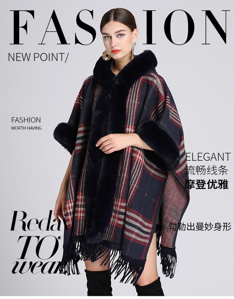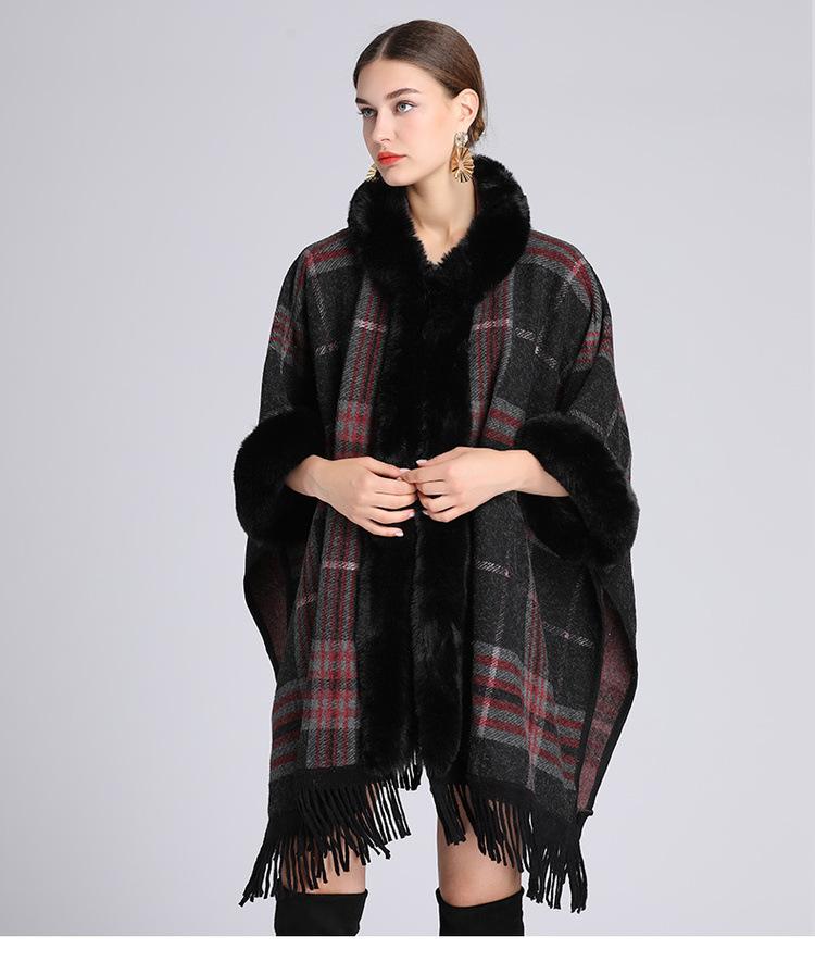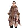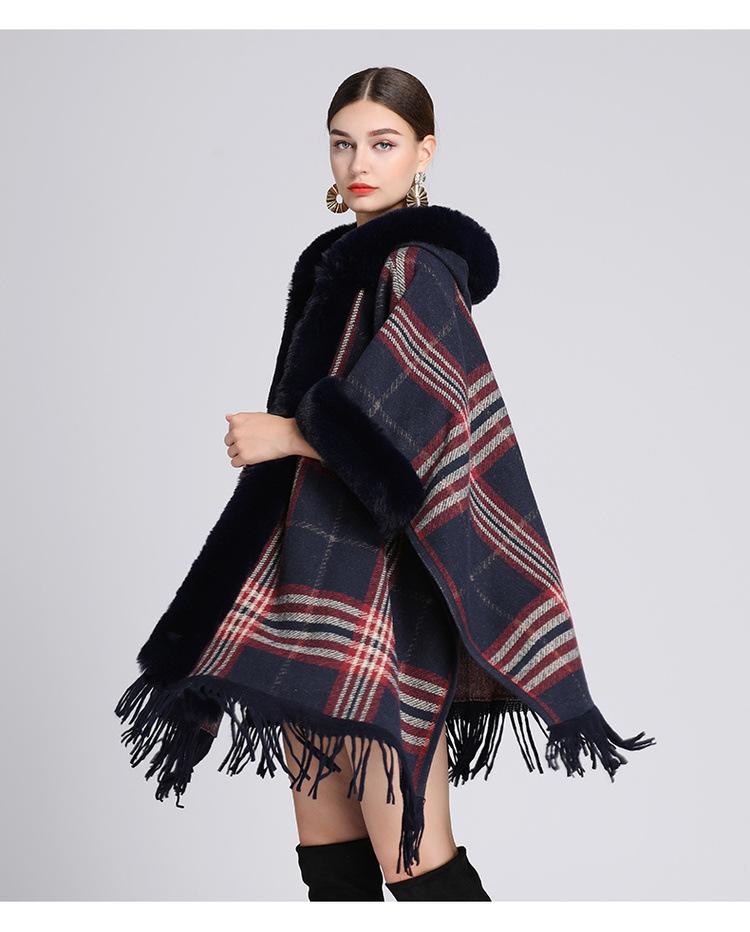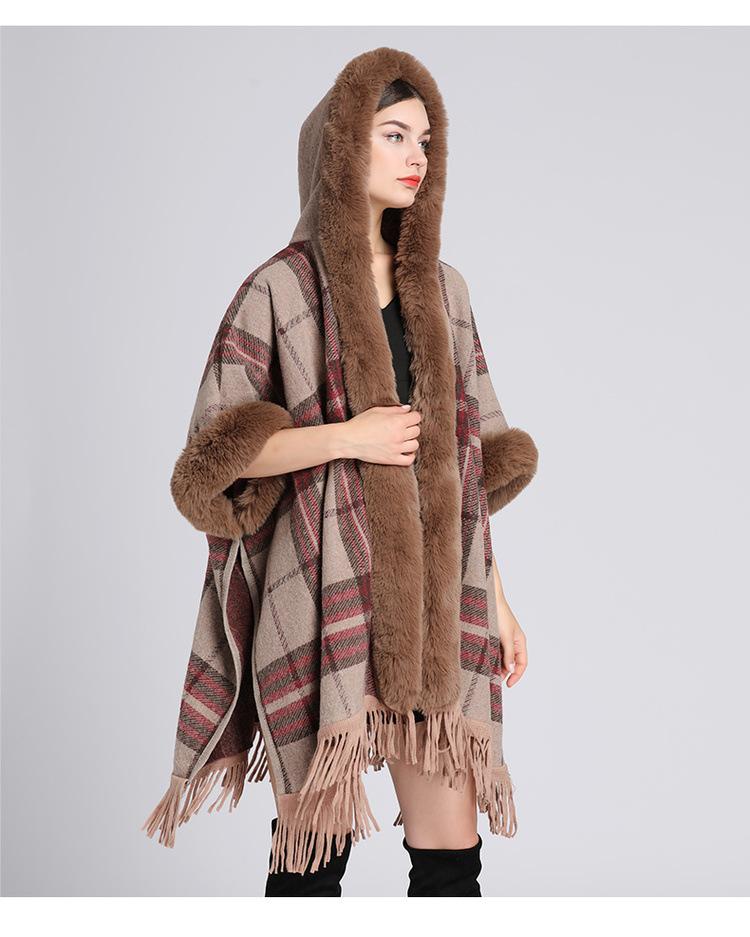 Poncho chal con capucha y cuello de piel de conejo Rex sintética para mujer, abrigo de lana, cárdigan de talla grande, suéter de lana, estilo europeo y americano, otoño e invierno, nuevo